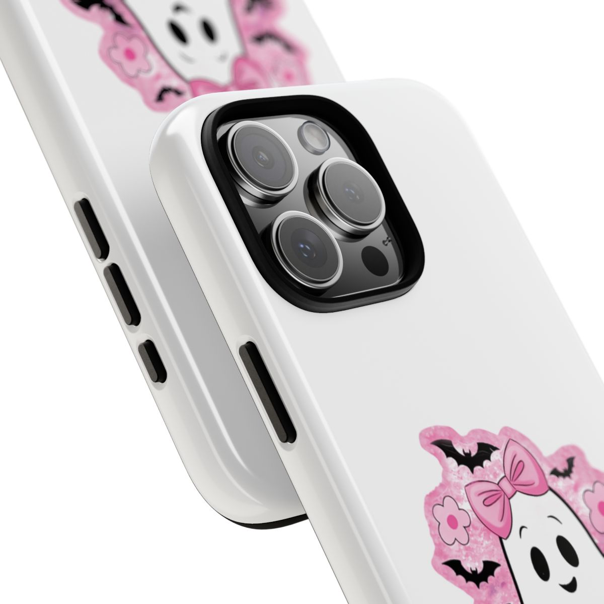 Celebrate the spooky season in style with our Cute Ghost with Bow Halloween Phone Case! This charming design features an adorable ghost adorned with a pink bow, surrounded by playful bats and flowers, making it perfect for adding a touch of whimsy to your Halloween celebrations. Made from durable materials, this phone case not only protects your device from bumps and scratches but also showcases your festive spirit. Ideal for kids and adults alike, it’s the perfect accessory for trick-or-treating or attending Halloween parties. Get ready to turn heads with this unique and enchanting phone case!