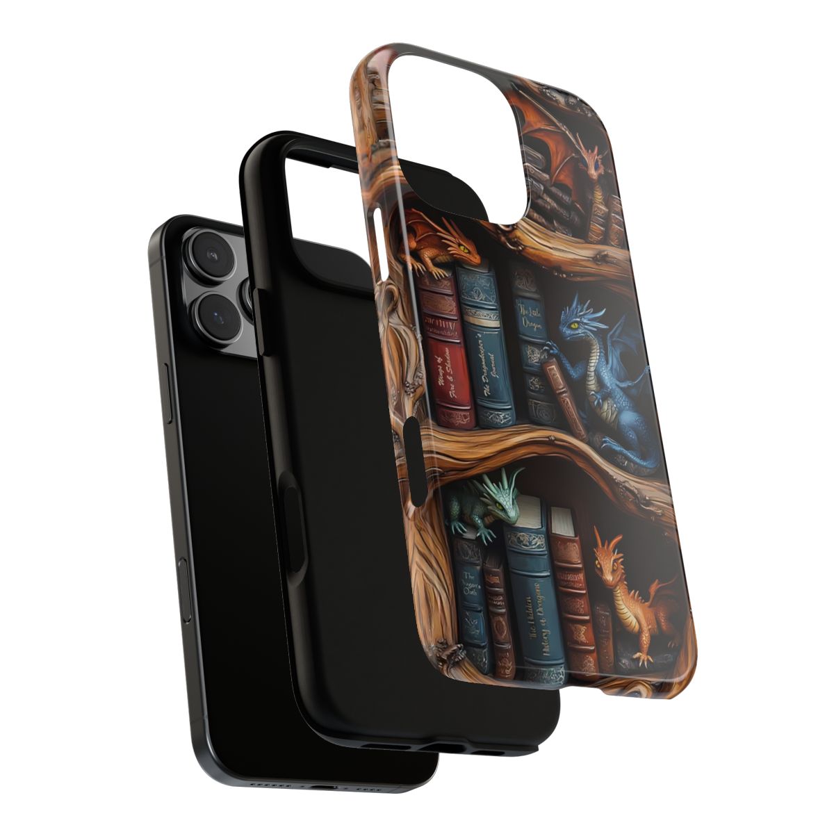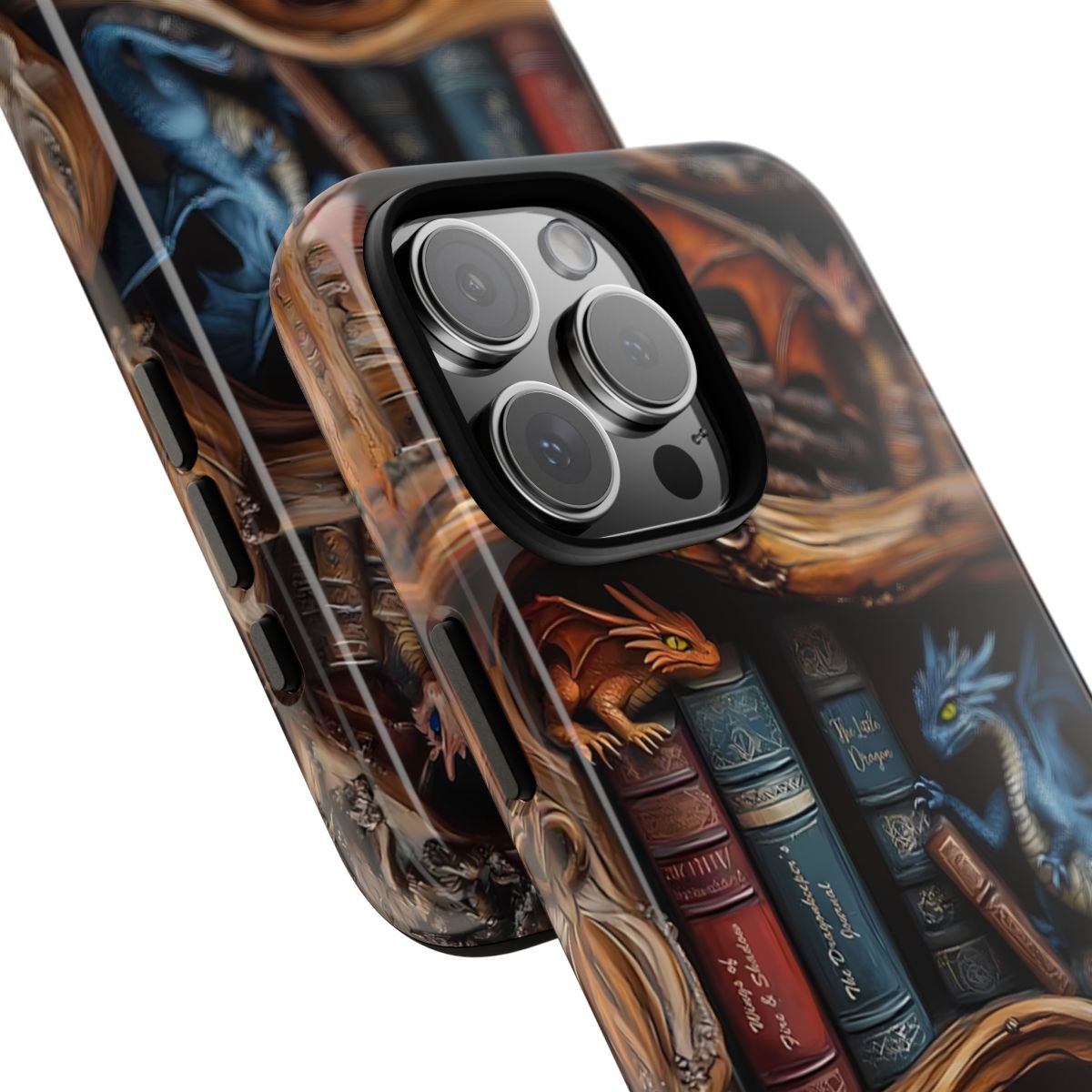 Transform your phone into a magical realm with our Fantasy Dragon Art Book Shelf Phone Case. Featuring intricately designed dragons nestled among mystical books, this phone case combines fantasy art with functional protection. Crafted with durable materials, it safeguards your device while showcasing an enchanting display of vibrant colors and captivating details. Ideal for fantasy lovers, bookworms, and anyone who appreciates the allure of dragons, this phone case is a unique blend of style and personality. Show off your passion for fantasy adventures while keeping your phone safe from everyday hazards.