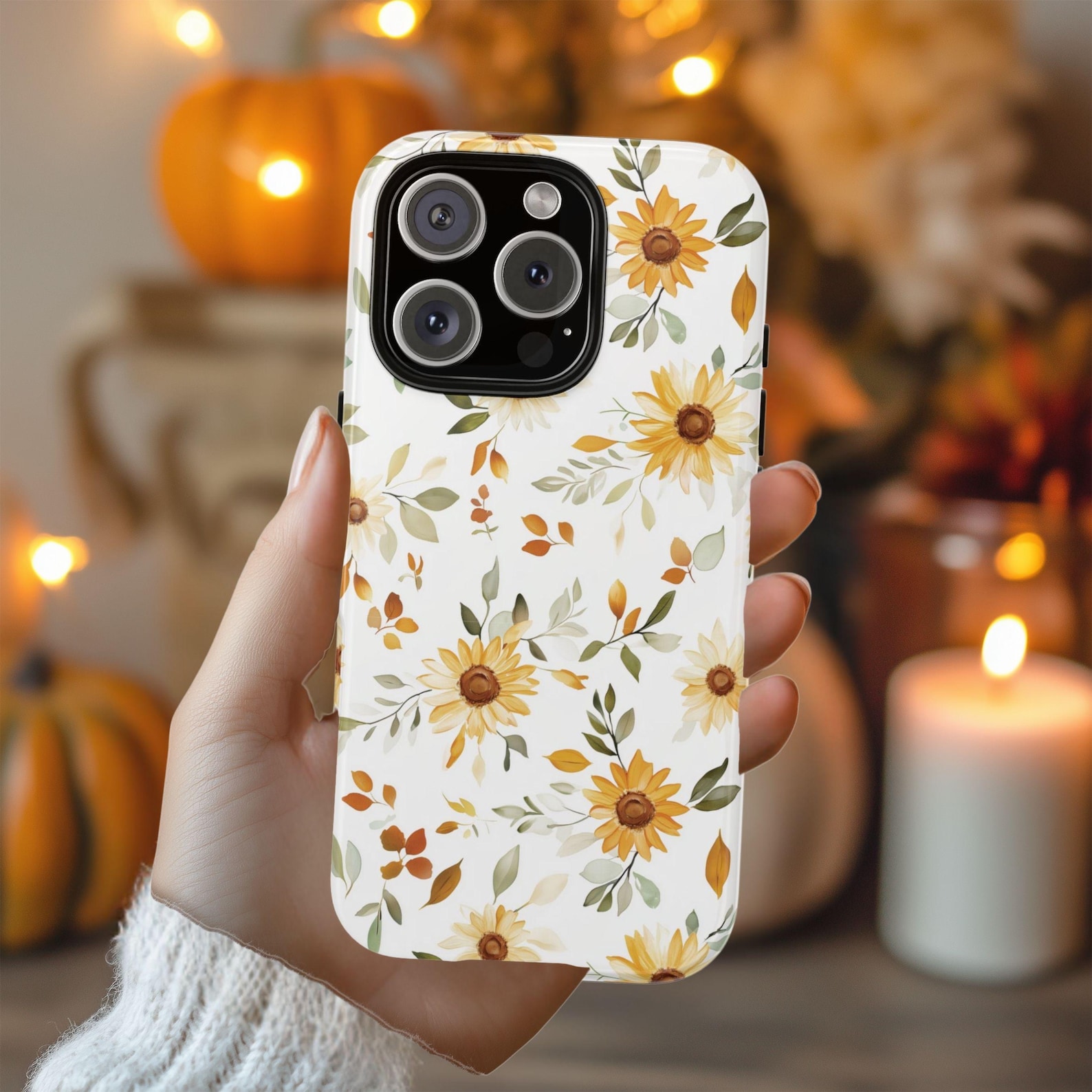Embrace nature with this vibrant floral phone case featuring beautiful sunflowers. The design showcases a bright and cheerful array of yellow blooms and delicate greenery set against a clean white background. Made from durable materials, this case offers a shockproof layer of protection while maintaining a sleek, glossy finish. Perfect for those who love a fresh, stylish vibe with a touch of elegance.