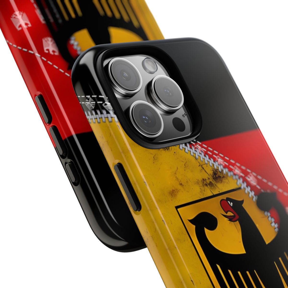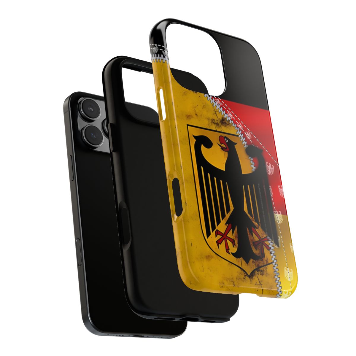 Show your patriotism with this striking Germany Flag Phone Case featuring a bold eagle design. Crafted from durable materials, this case not only offers superior protection for your device but also showcases a vibrant and dynamic representation of the German flag, perfectly blending style and functionality. The textured finish adds a unique touch, providing a comfortable grip while ensuring that your phone stands out. Ideal for sports fans, travelers, or anyone who wants to celebrate their love for Germany, this phone case is both functional and expressive.