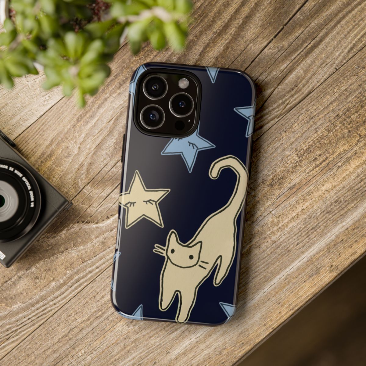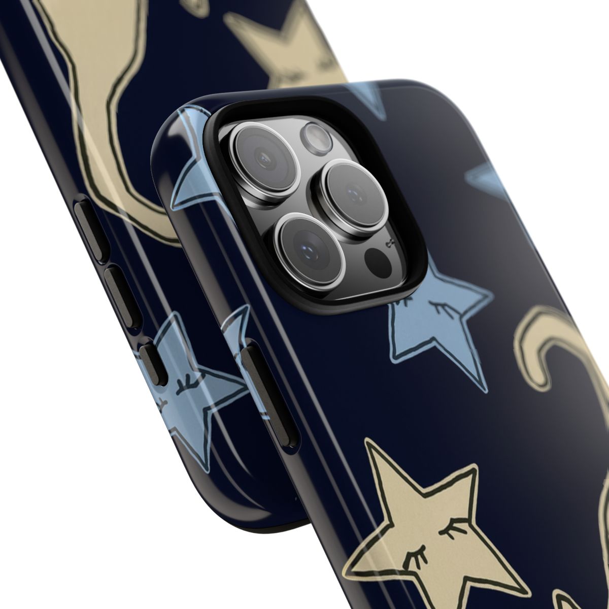Showcase your love for feline friends with this adorable phone case featuring a charming cat design playfully surrounded by colorful stars. The deep navy background highlights the whimsical, hand-drawn style, making it a perfect accessory for cat enthusiasts of all ages. This lightweight yet durable case not only protects your phone from bumps and scratches but also adds a touch of personality to your everyday tech. Ideal for gifting or treating yourself, it combines function and fun, ensuring your phone stands out in any crowd.