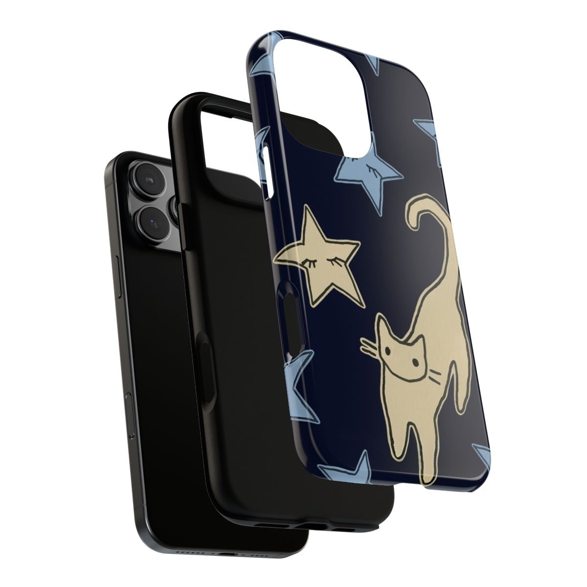 Cat and Stars Phone Case Y2K Cute Celestial Grunge Hand-Drawn Cool Girly Gift – Phone Case