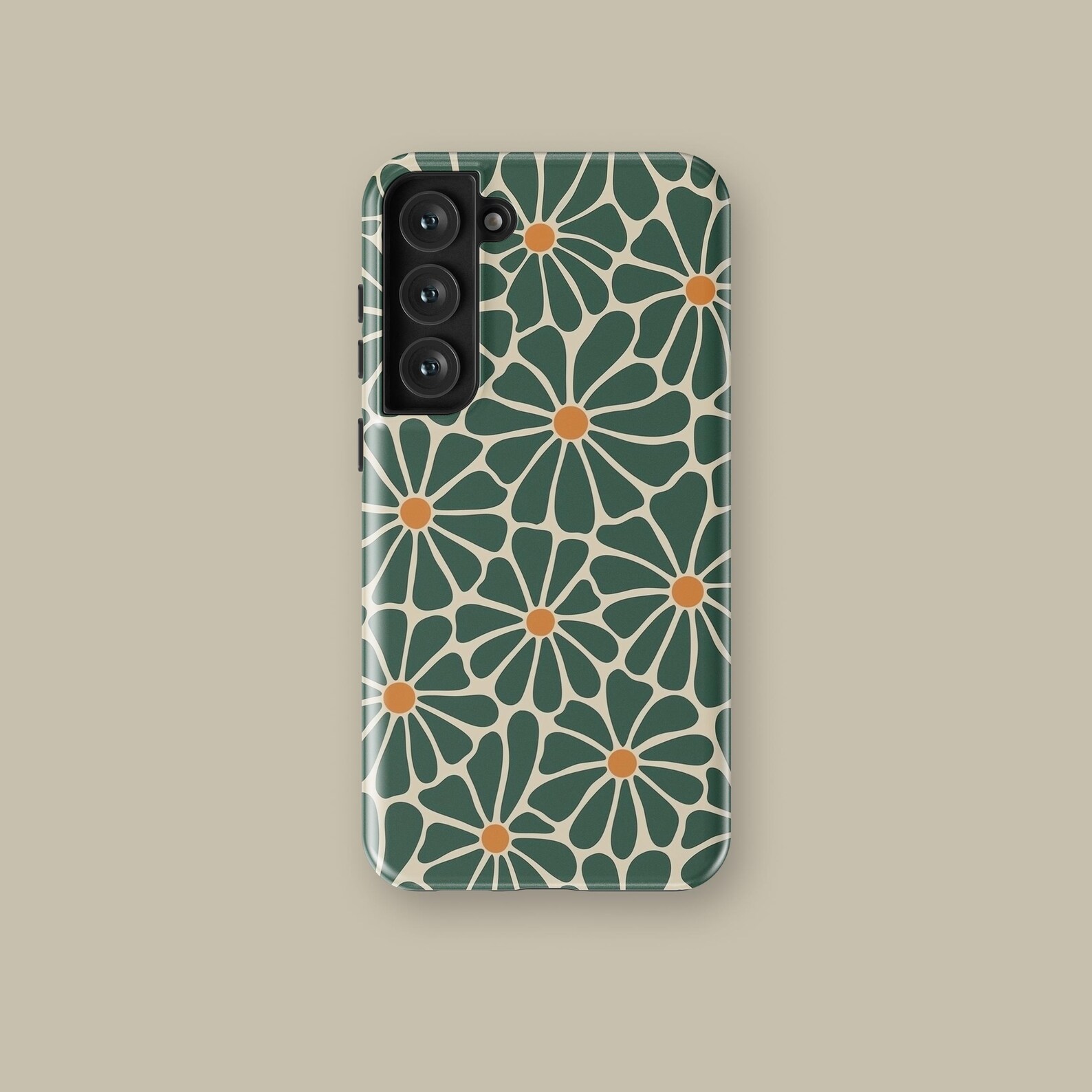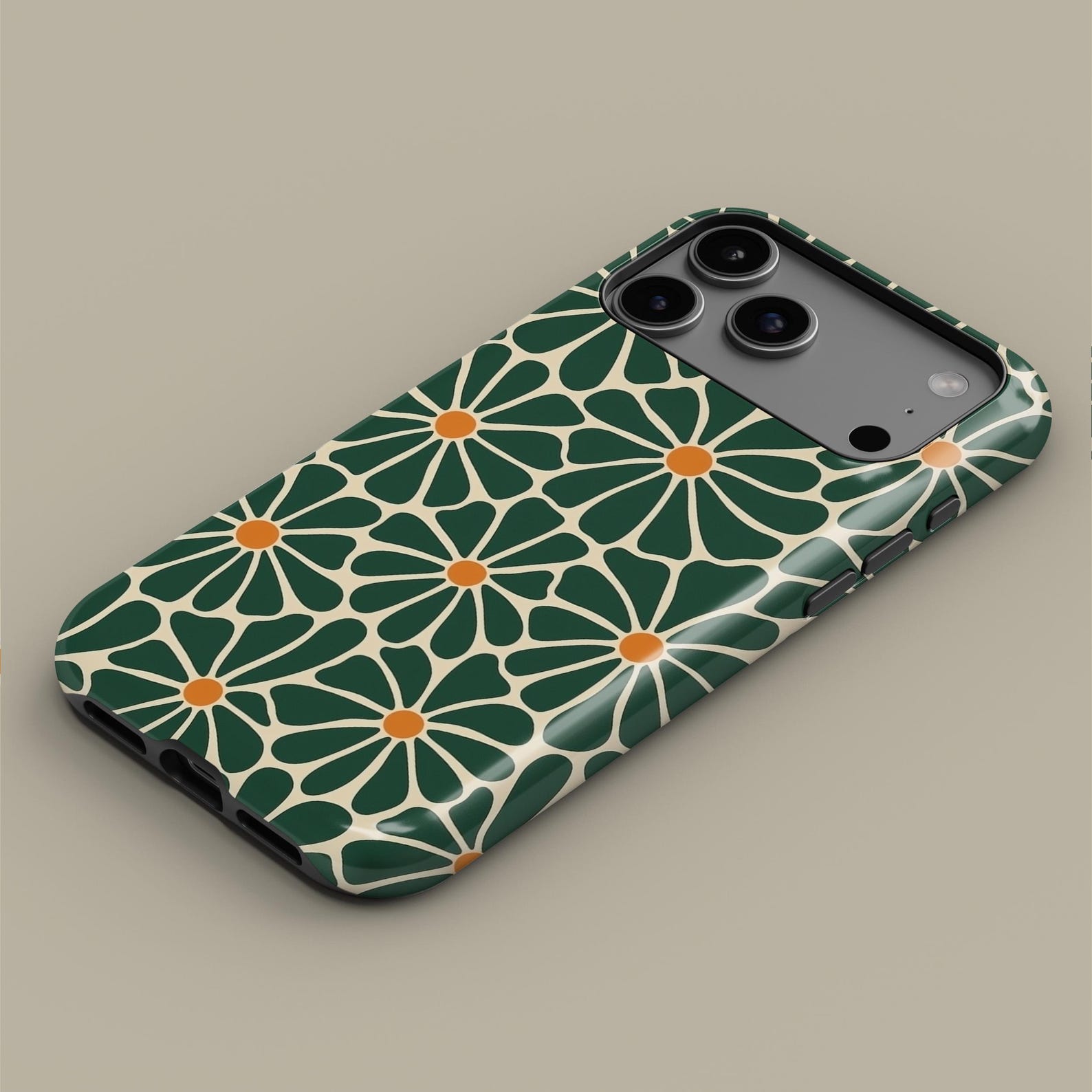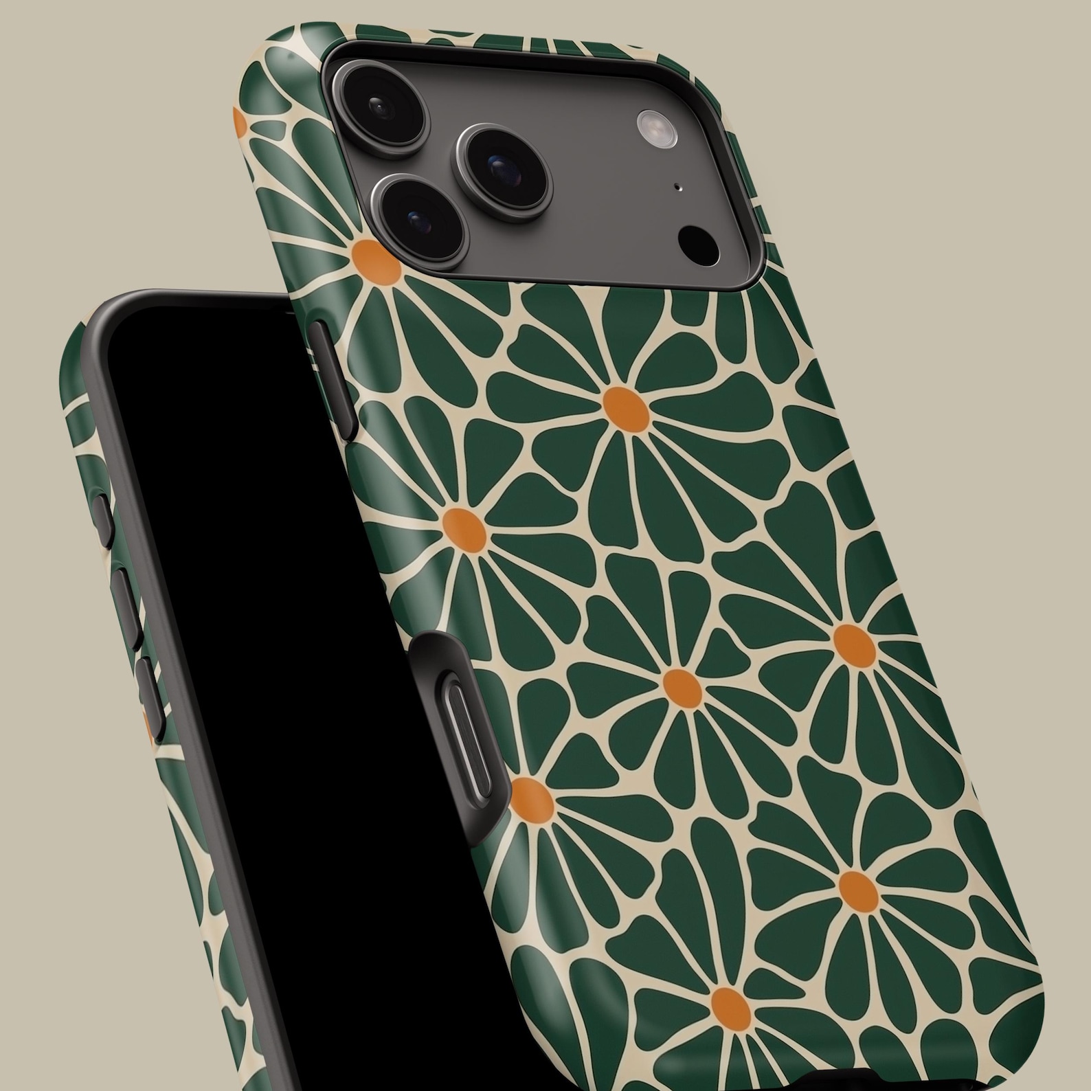 This stunning tough phone case features a charming floral design, combining deep green leaves with vibrant yellow flowers. The matte finish gives it a sophisticated touch while ensuring a firm grip. Made from durable materials, it offers excellent shock absorption and protection for your device. Perfect for those who appreciate nature-inspired aesthetics, this case brings a fresh and stylish vibe to your everyday tech.