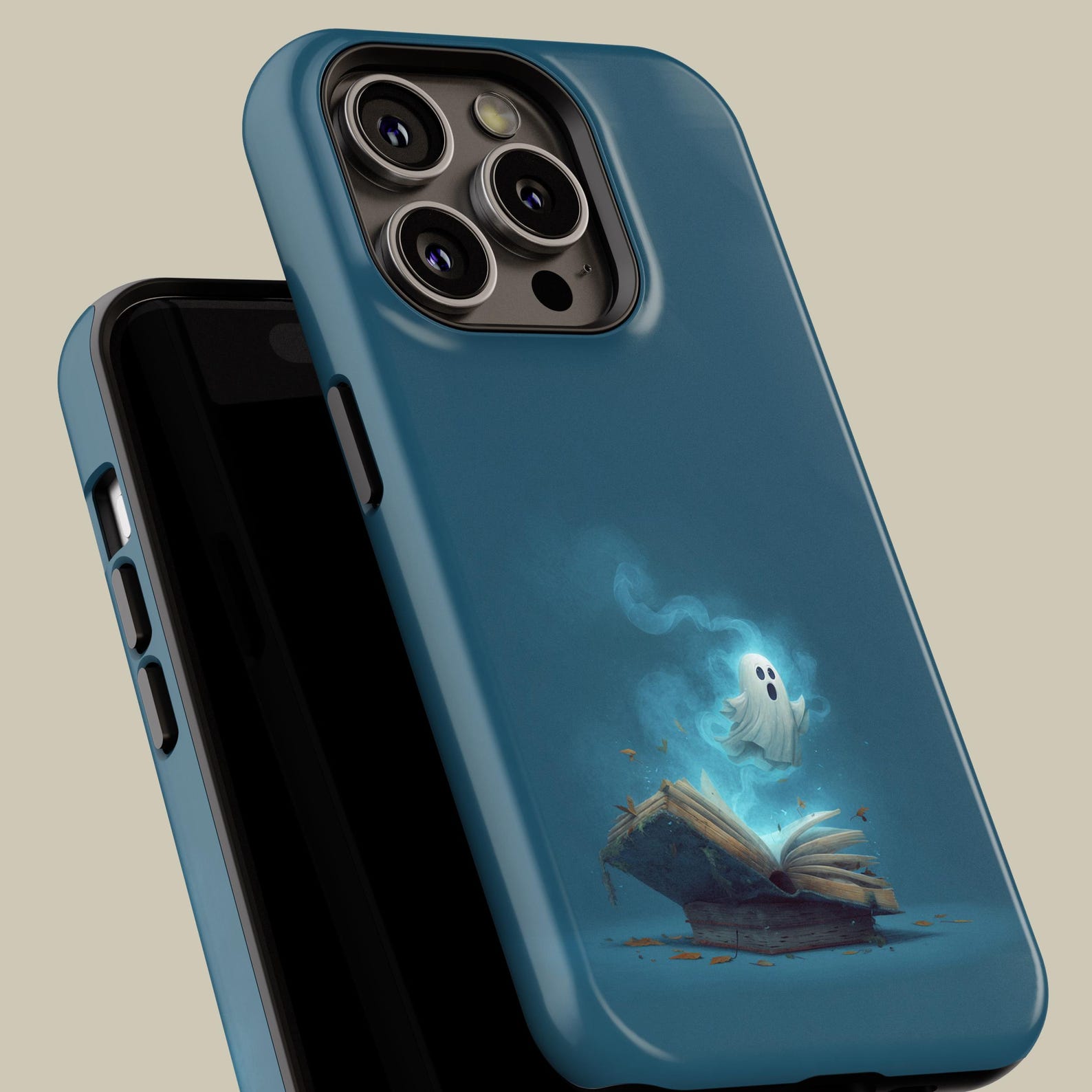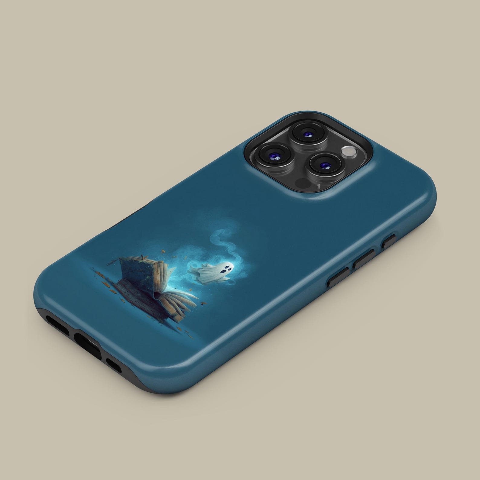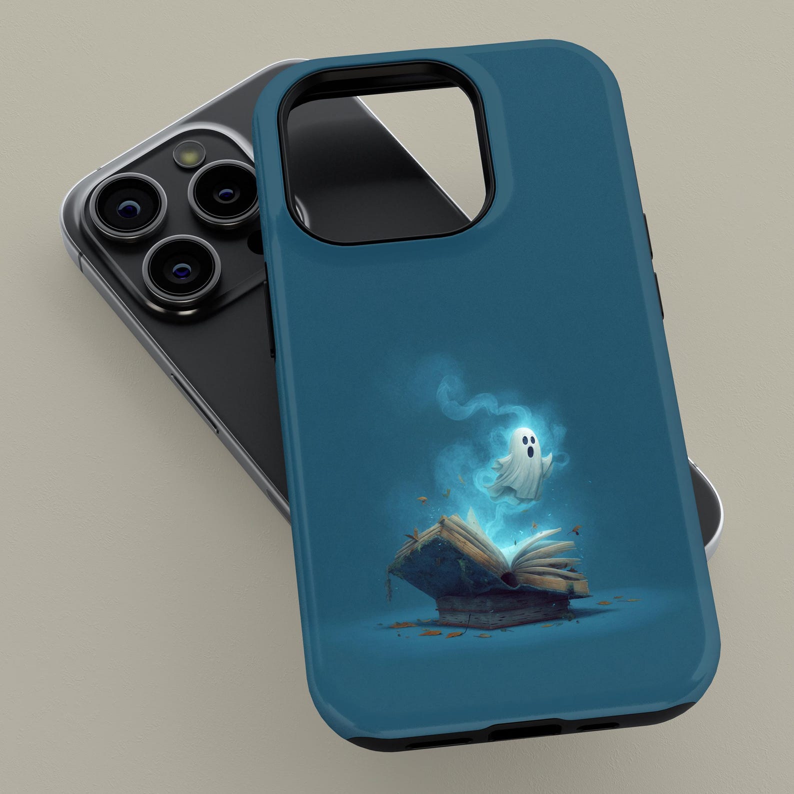 Discover a whimsical blend of storytelling and enchantment with this charming phone case. Featuring a playful ghost emerging from an open book, the design captures a magical theme with soft blue and white colors. Crafted from durable materials, this case offers a glossy finish and robust protection against daily wear and tear. Perfect for those who cherish playful and imaginative aesthetics, it adds a unique touch to your everyday essentials.