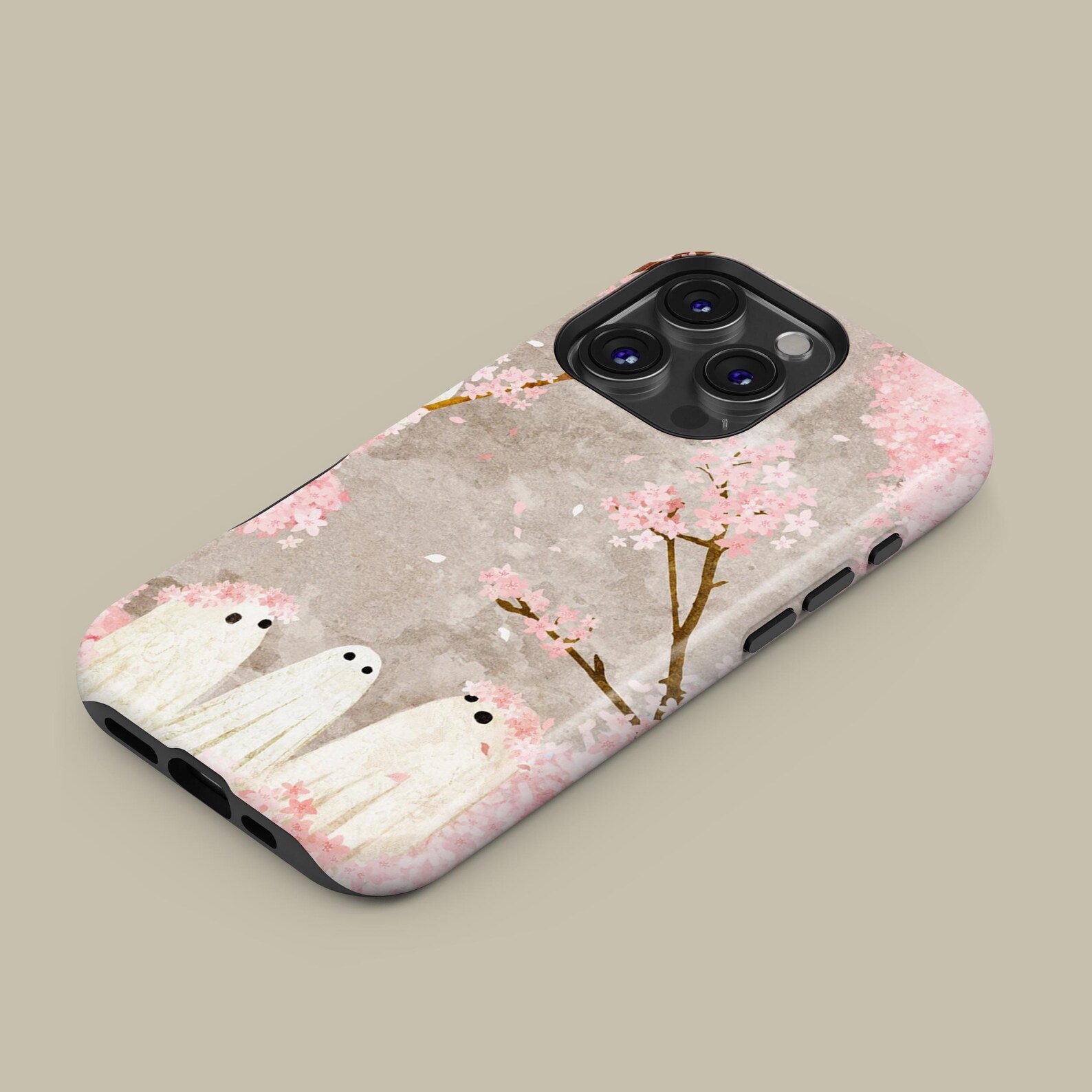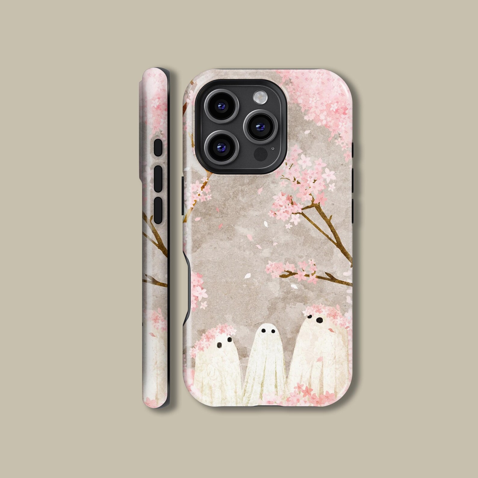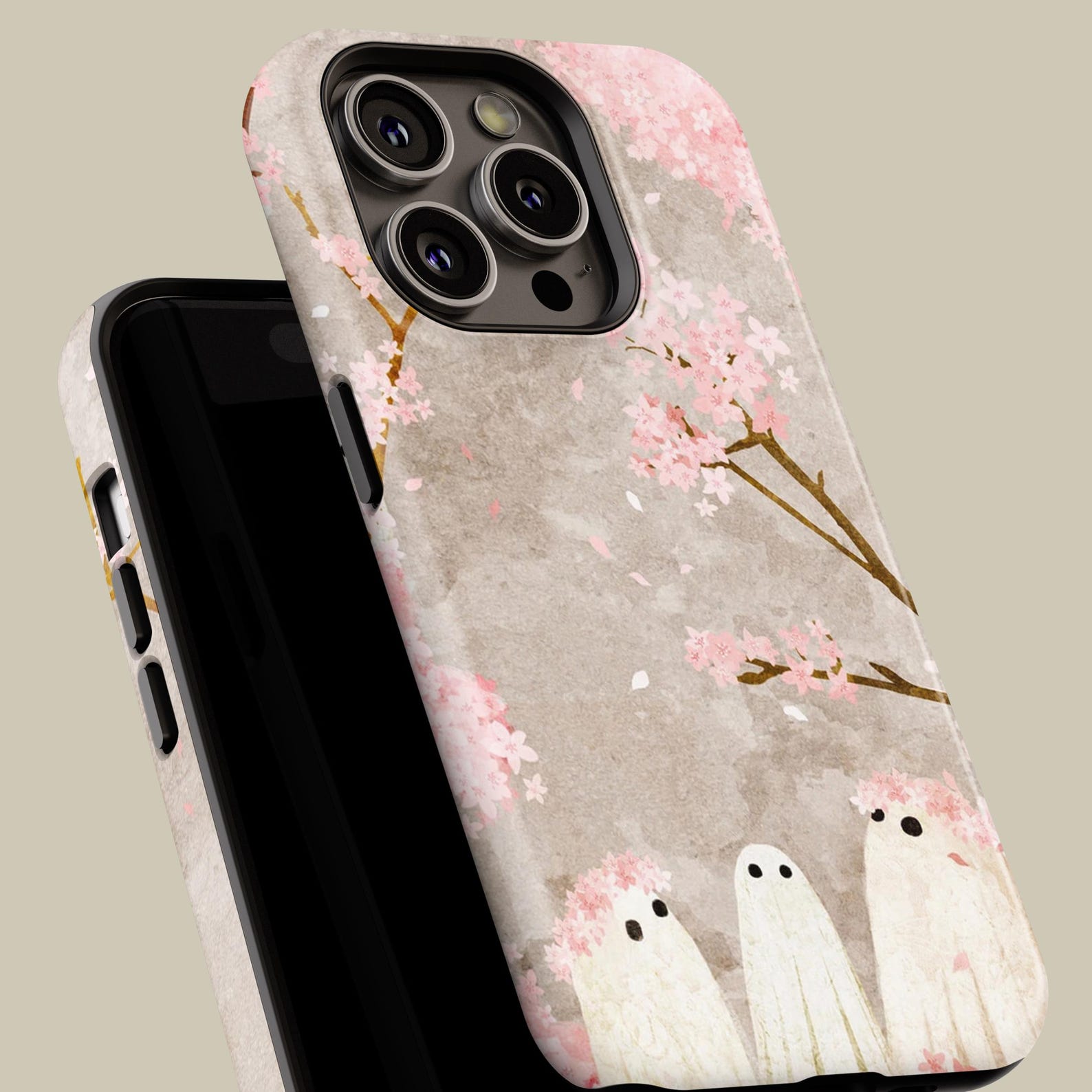 Embrace whimsical charm with this delightful phone case featuring adorable ghost characters nestled among pastel cherry blossoms. The soft, muted colors create a serene aesthetic, perfect for lovers of nature and cute designs. Crafted from durable, shockproof materials, this case ensures protection while adding a unique touch to your phone. Its smooth texture offers a stylish finish, making it a delightful addition to your everyday essentials.