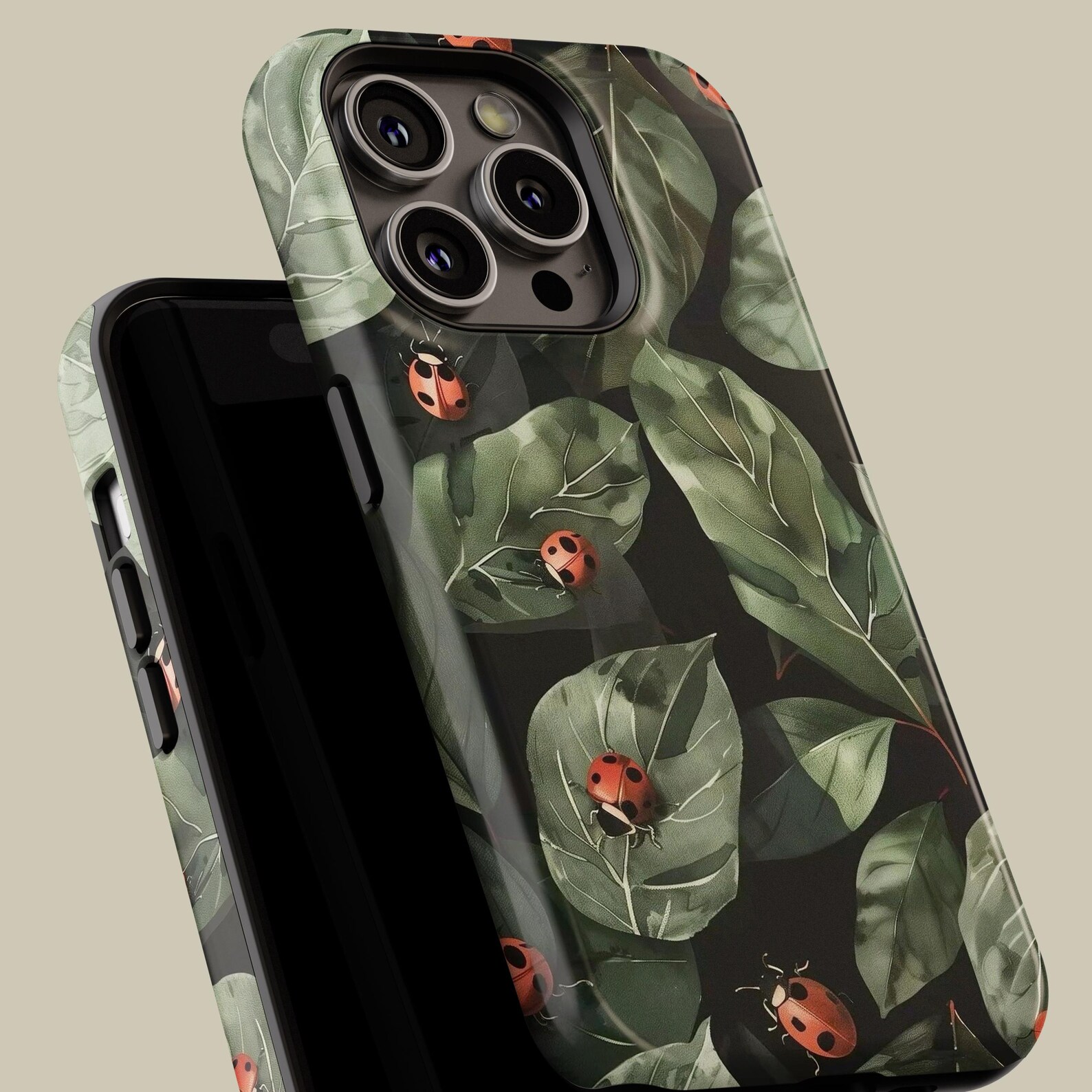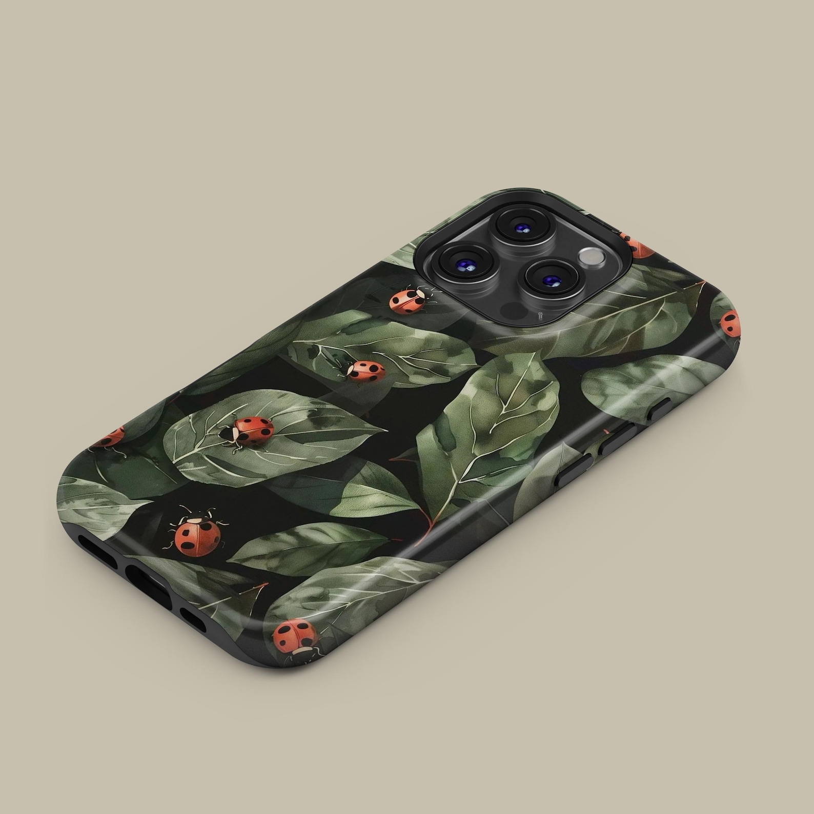 Charming Ladybug and Leaf Pattern Tough Phone Case