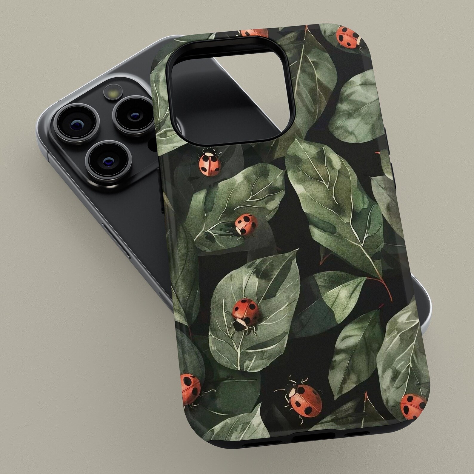 Embrace nature with this charming phone case featuring a delightful ladybug and lush leaf design. The vibrant greens and warm red accents create a playful and lively aesthetic. Made from durable materials, this case offers excellent shockproof protection while maintaining a lightweight feel. Its glossy finish enhances the visual appeal, making it a stylish addition to your accessory collection. Perfect for nature lovers and those seeking a touch of whimsy.