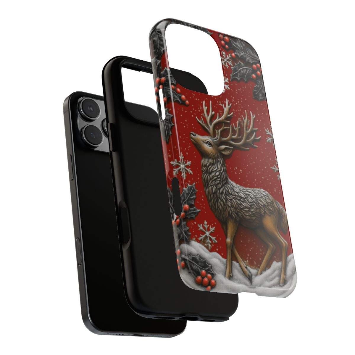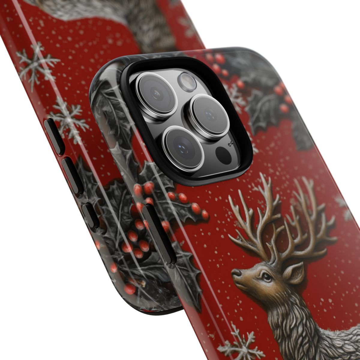 Celebrate the holiday season in style with our stunning Festive Reindeer Christmas Phone Case. This beautifully crafted case showcases a majestic reindeer amidst a winter wonderland, complete with snowflakes and festive berries against a warm red background. Perfect for adding a touch of cheer and charm, this case not only protects your phone but also expresses your holiday spirit. Ideal for anyone who loves Christmas, wildlife, or unique seasonal designs, it’s a delightful gift for friends and family during the festive season.