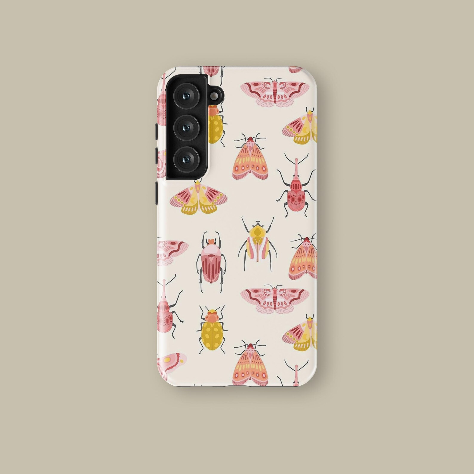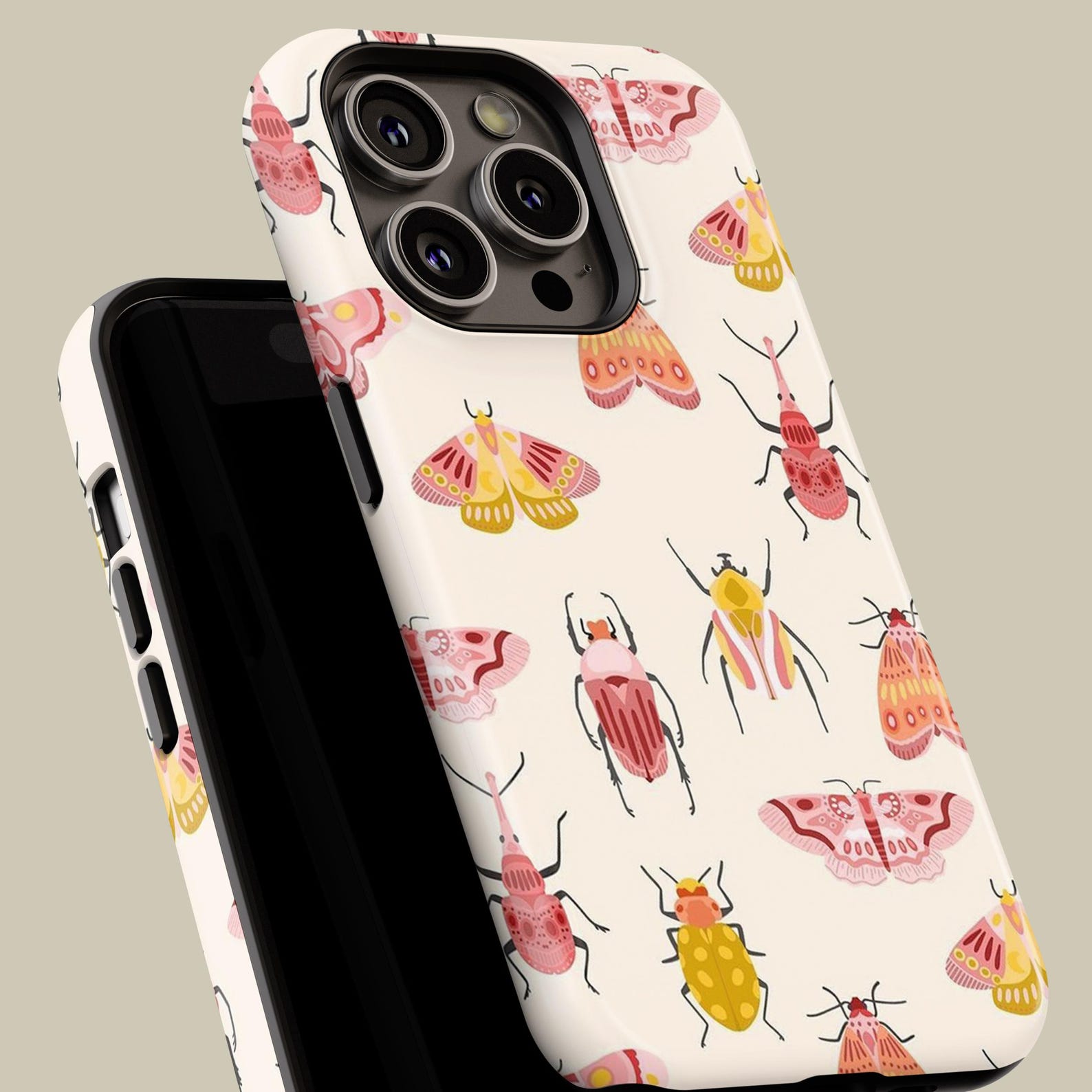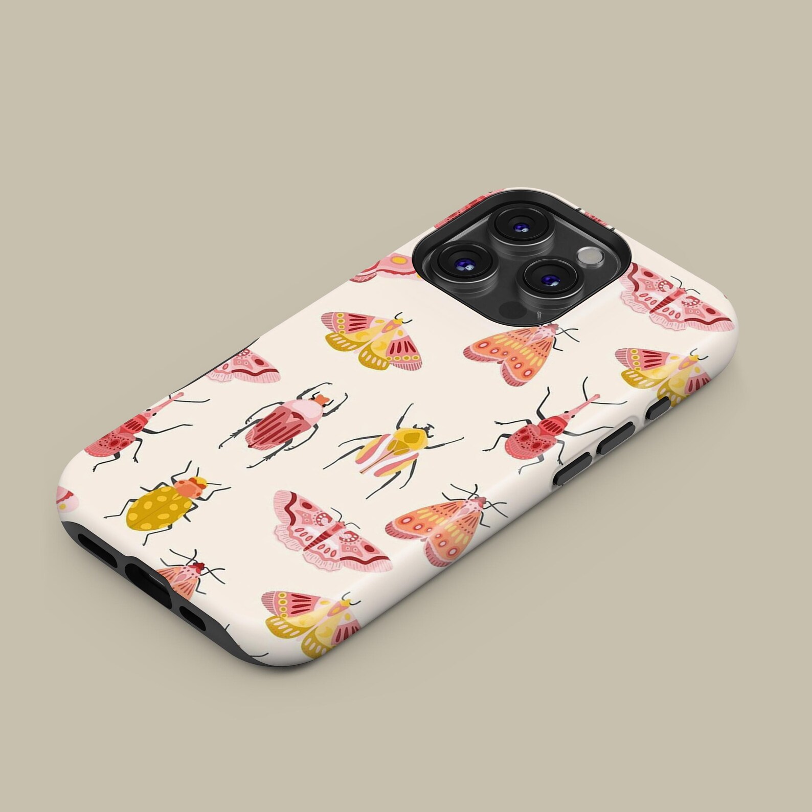 This charming tough phone case features a delightful array of colorful insects against a soft, creamy background. Each unique design combines playful shades of pink, yellow, and red, creating a whimsical and eye-catching look. Crafted from durable, shockproof material, this case offers reliable protection while showcasing a fun and artistic vibe. Perfect for those who embrace nature and wish to express their individuality in a stylish way.