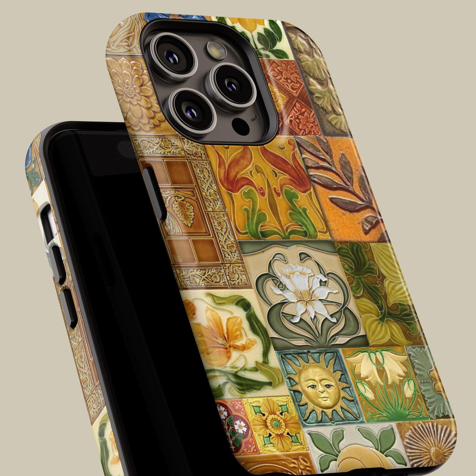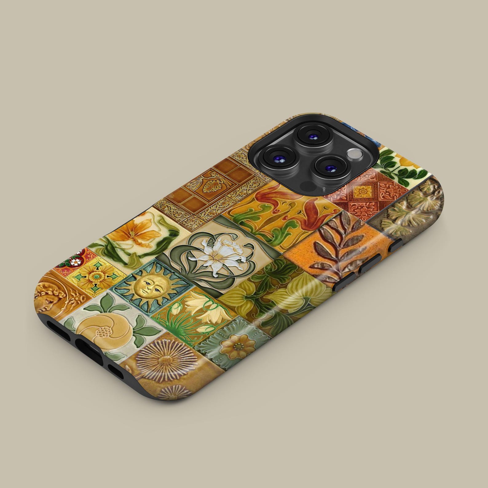 This tough phone case showcases an intricate mosaic tile design, reflecting a vibrant and artistic vibe. The rich colors and detailed patterns create a playful yet sophisticated appeal, perfect for those who appreciate unique aesthetics. Crafted from durable materials, it features a shockproof texture and reliable protection against daily wear and tear. Embrace your creative side with this stylish accessory that adds character to your device.