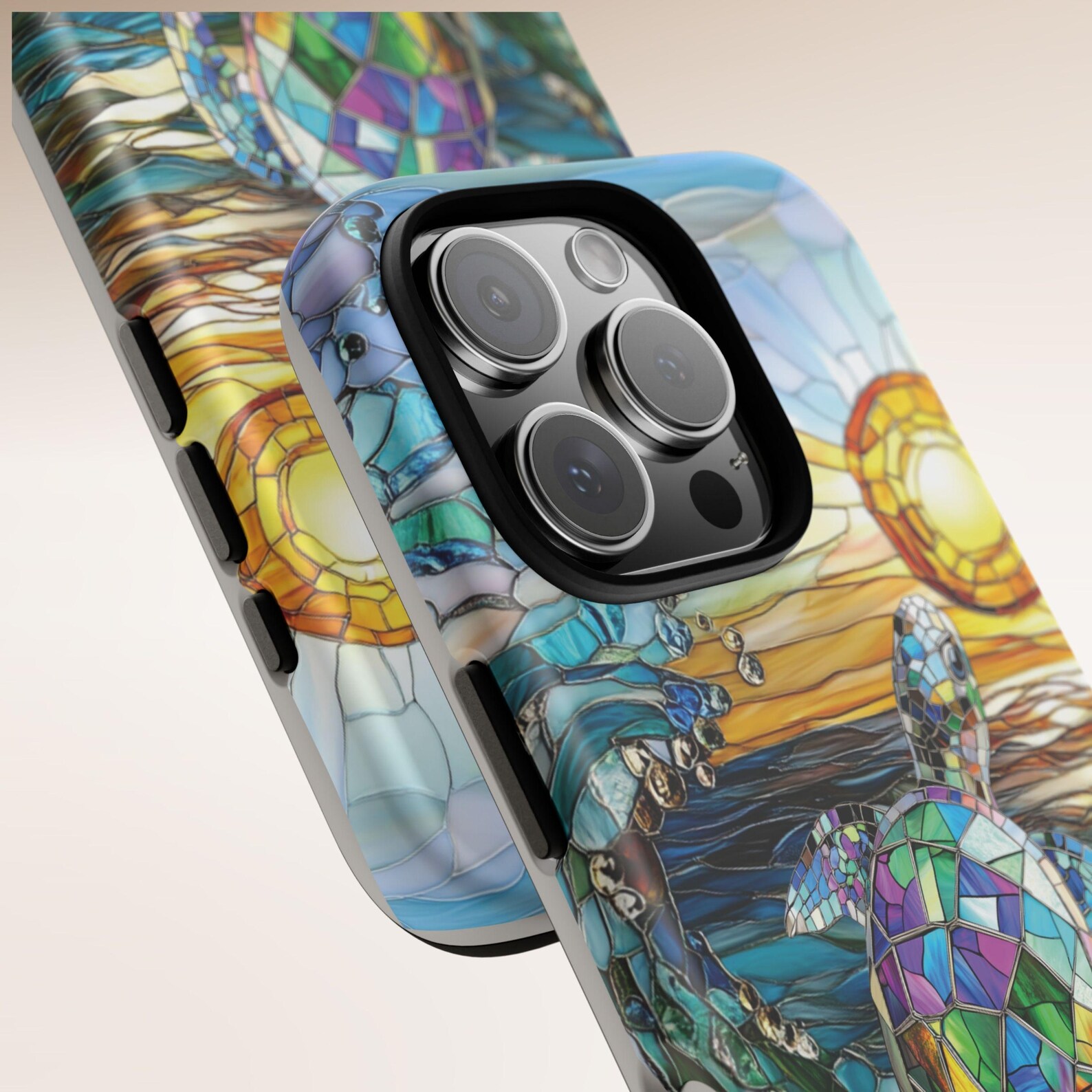 Immerse yourself in the beauty of the ocean with this vibrant turtle design. The stunning mosaic artwork features a mix of colorful tiles, showcasing a playful sea turtle under a radiant sun. Crafted from durable materials, this case offers excellent protection with a glossy finish that enhances its eye-catching details. This case embodies a playful yet stylish vibe, perfect for those who appreciate artistic flair.