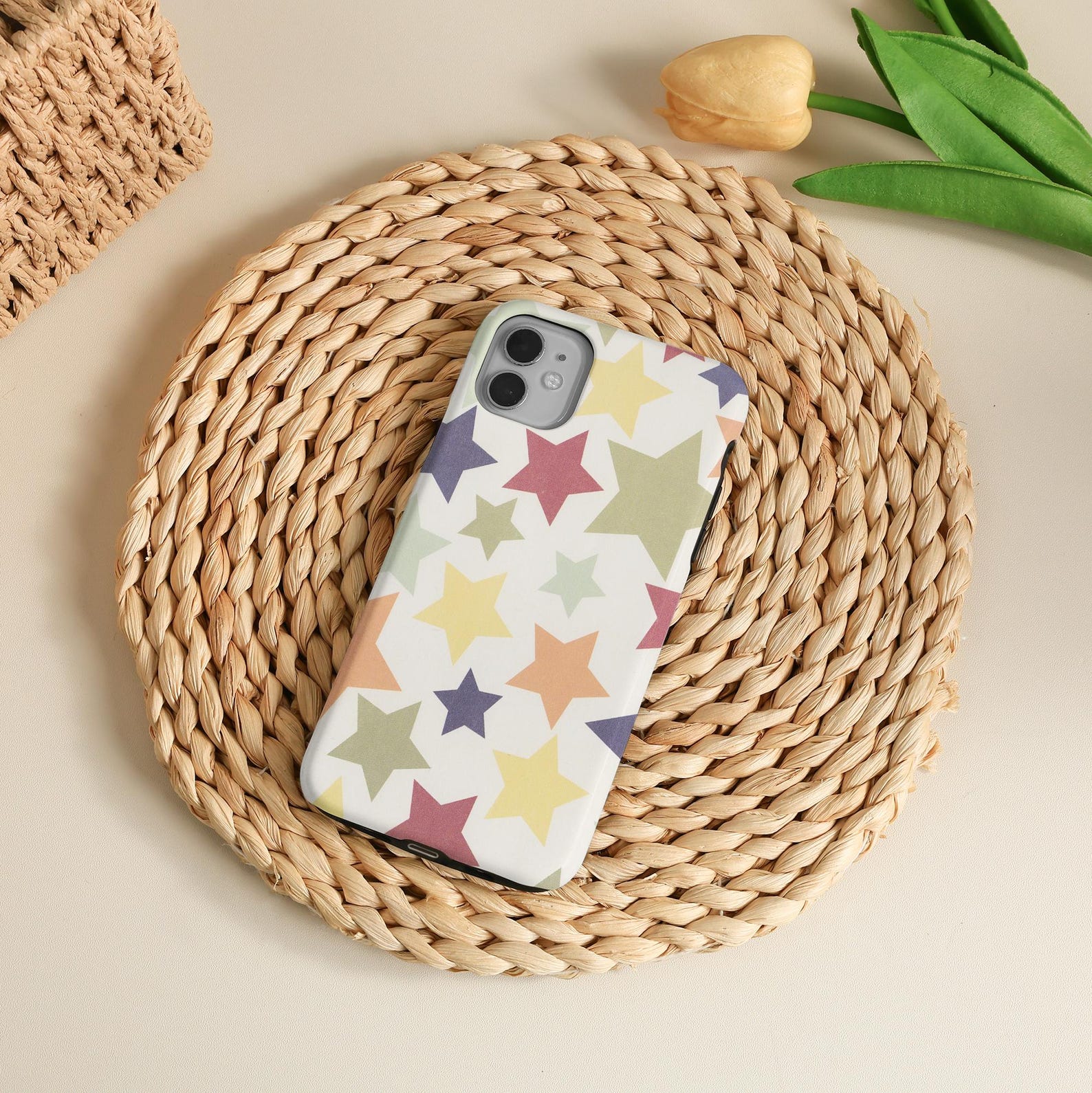 Brighten your day with this playful phone case featuring an array of stars in vibrant hues. The whimsical design showcases alternating colors like soft yellows, muted greens, and warm oranges, creating a joyful and modern aesthetic. Crafted from durable, shockproof material, it ensures your phone stays protected without sacrificing style. This case is perfect for anyone who loves a fun and stylish vibe in their accessories.