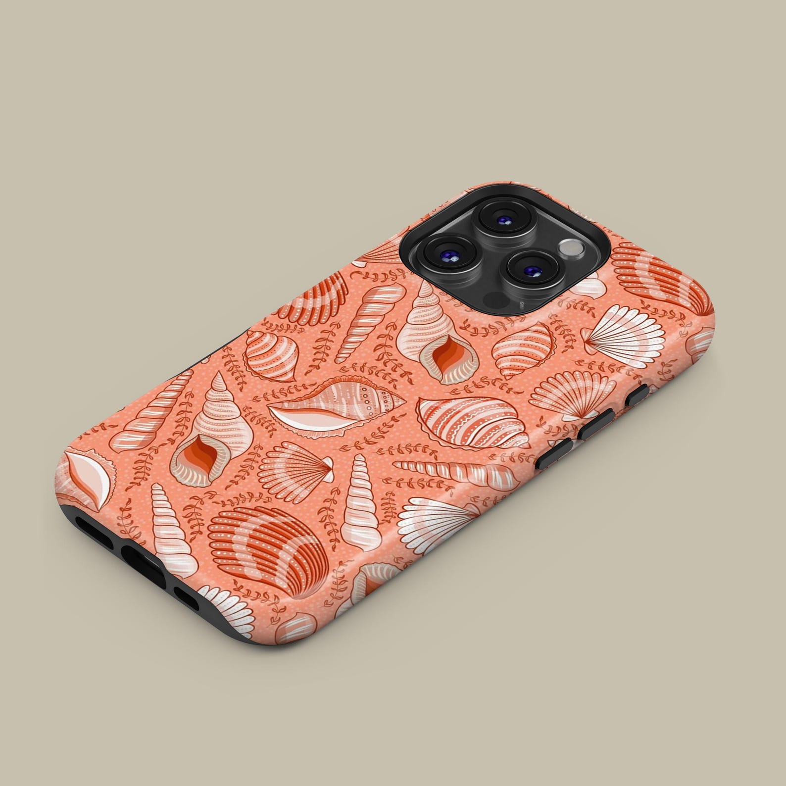 Embrace the beach vibe with this charming coral seashell design. Adorned with a variety of shells in warm tones of orange and cream, this case captures the essence of coastal elegance. Crafted from durable materials, it provides shockproof protection while maintaining a glossy finish. The playful yet stylish theme makes it a perfect accessory for ocean lovers seeking to showcase their unique taste.