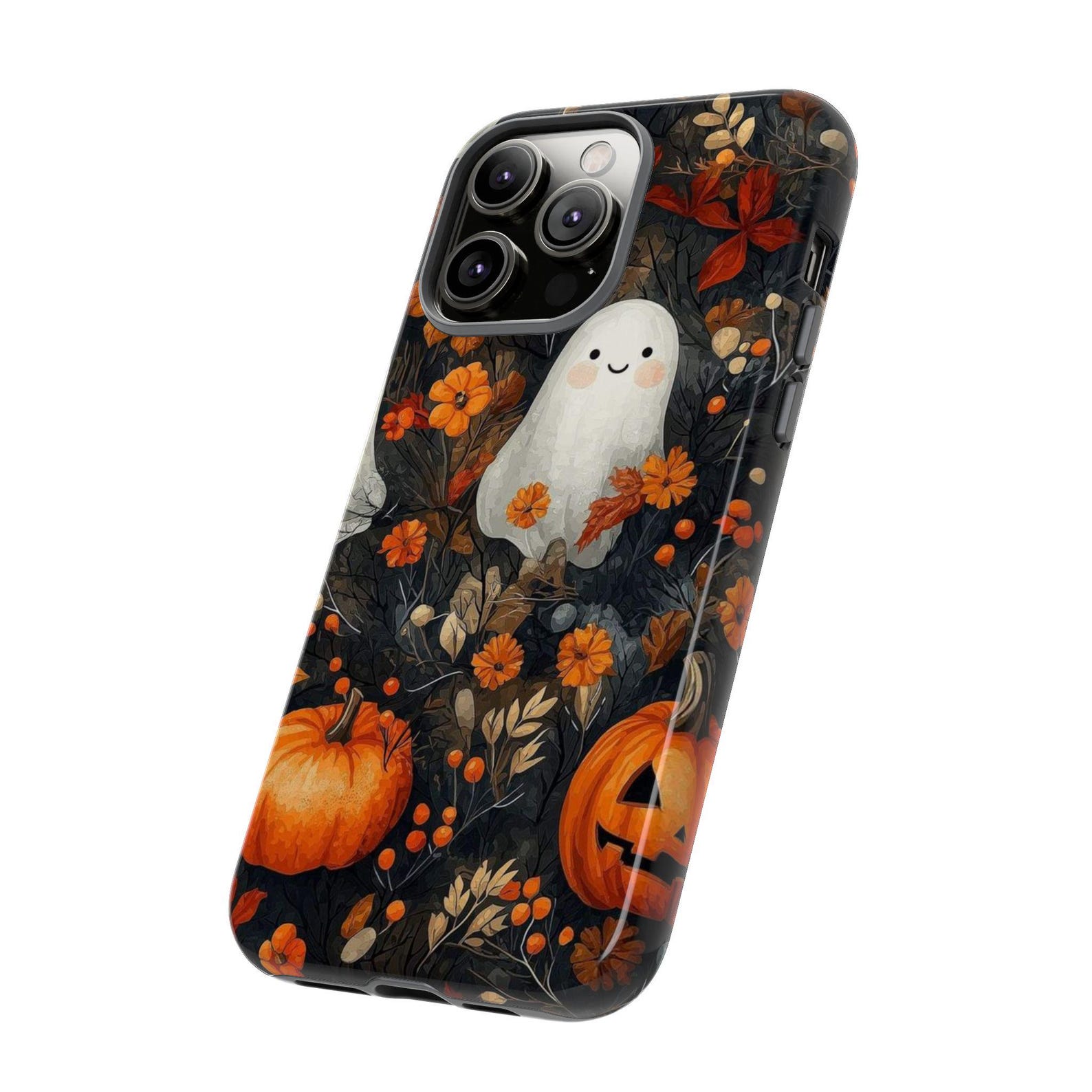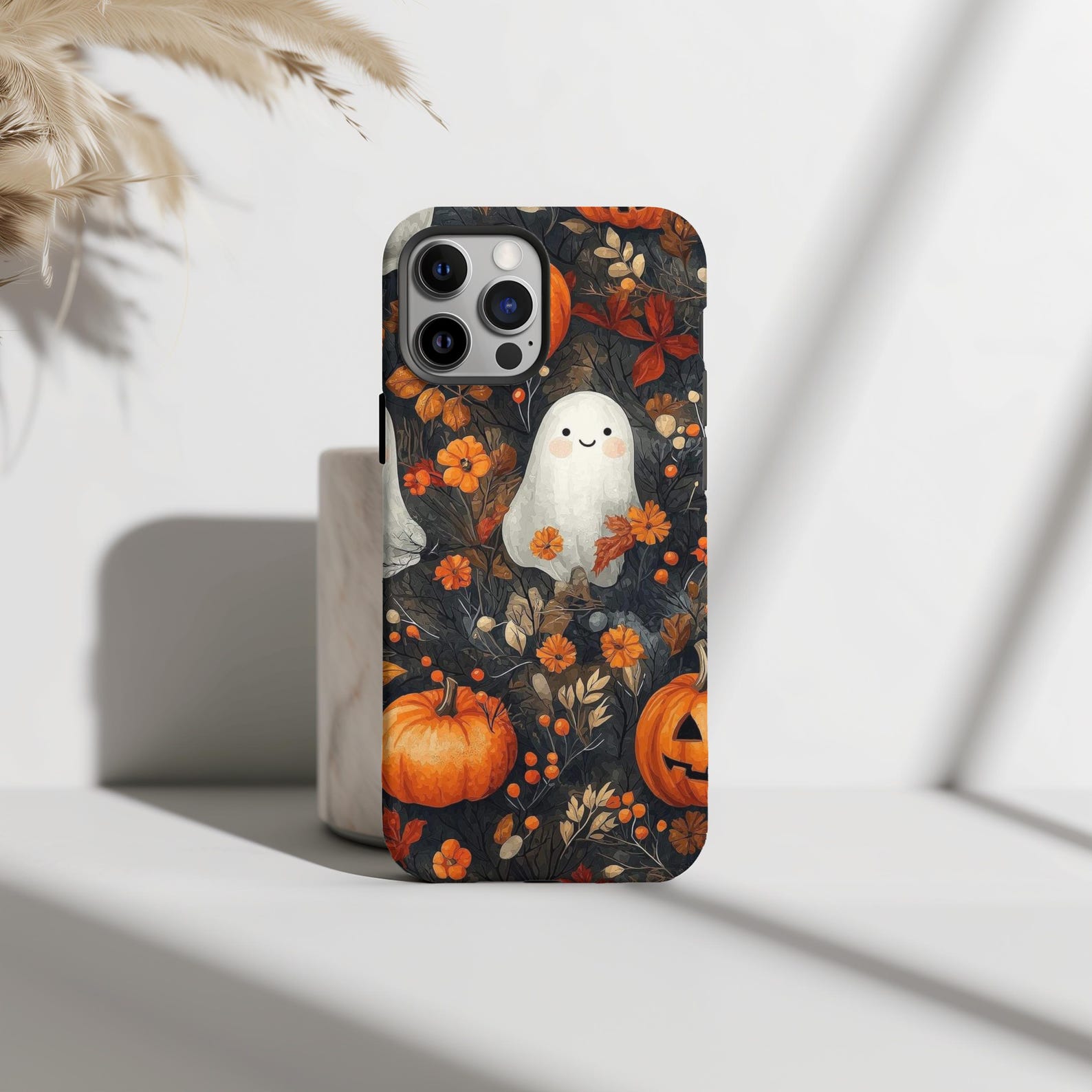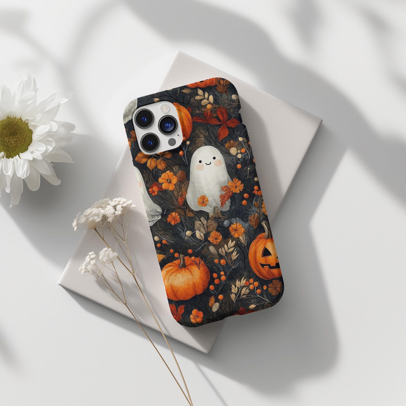 Embrace the playful spirit of Halloween with this adorable phone case. Featuring charming ghosts and vibrant pumpkins amidst a backdrop of warm, autumnal colors, this design is both whimsical and festive. Crafted from durable materials, it offers excellent protection while maintaining a matte finish that feels comfortable in hand. Perfect for those who love to celebrate the season in a stylish and fun way.