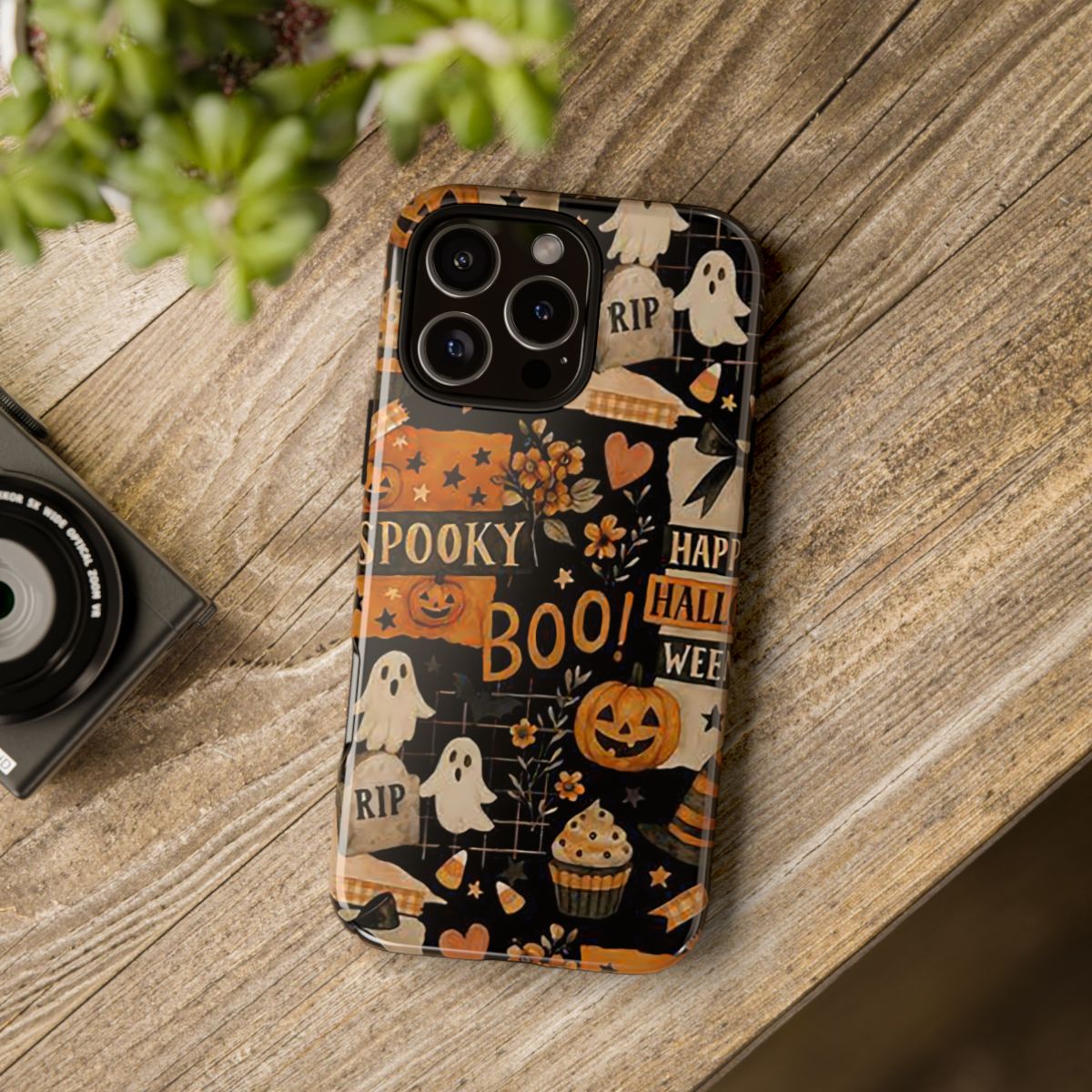 Cute Halloween Phone Case Artful Trendy Ghosts Pumpkins Spooky Retro Art Autumn Aesthetic Trick or Treat Gift Idea for Halloween Lovers