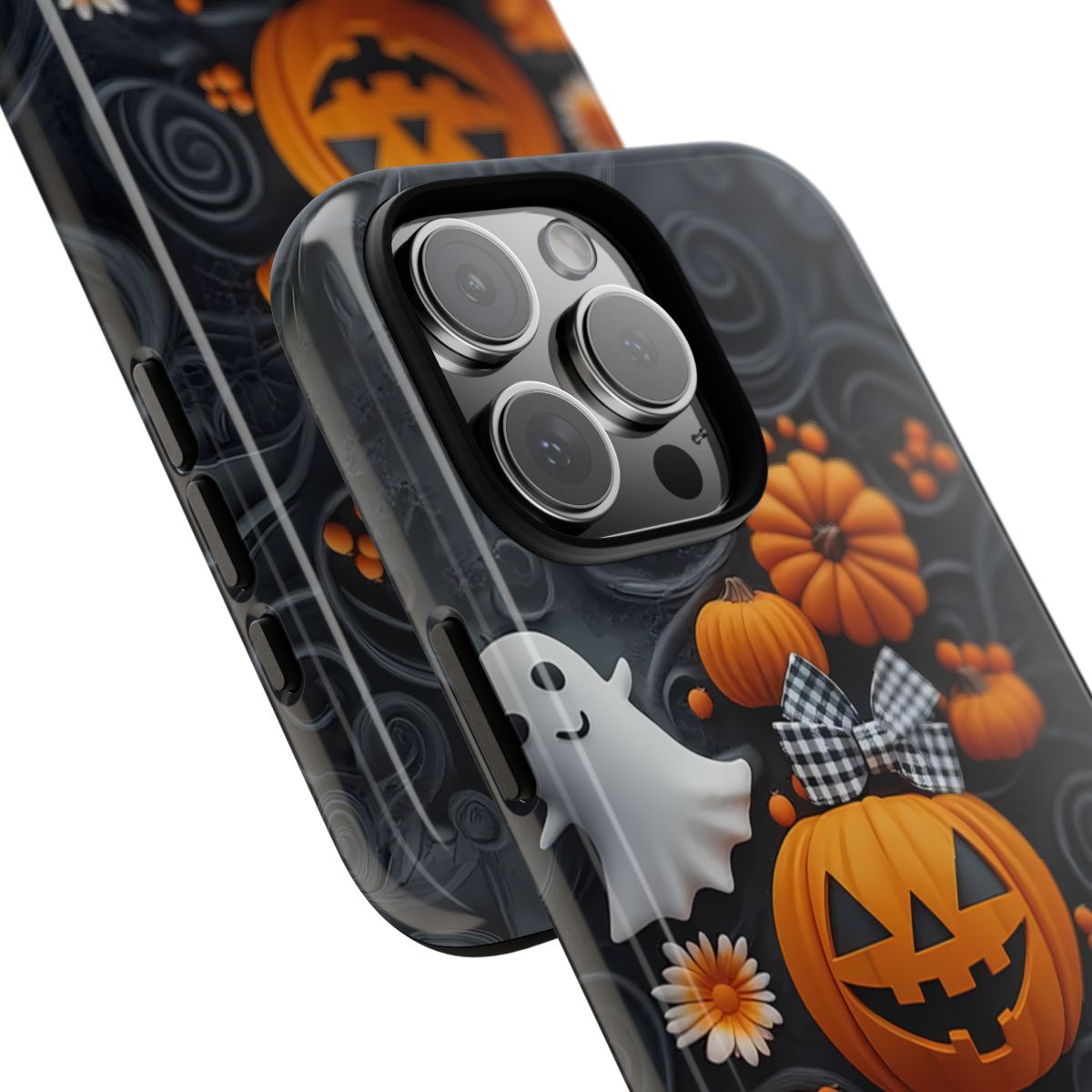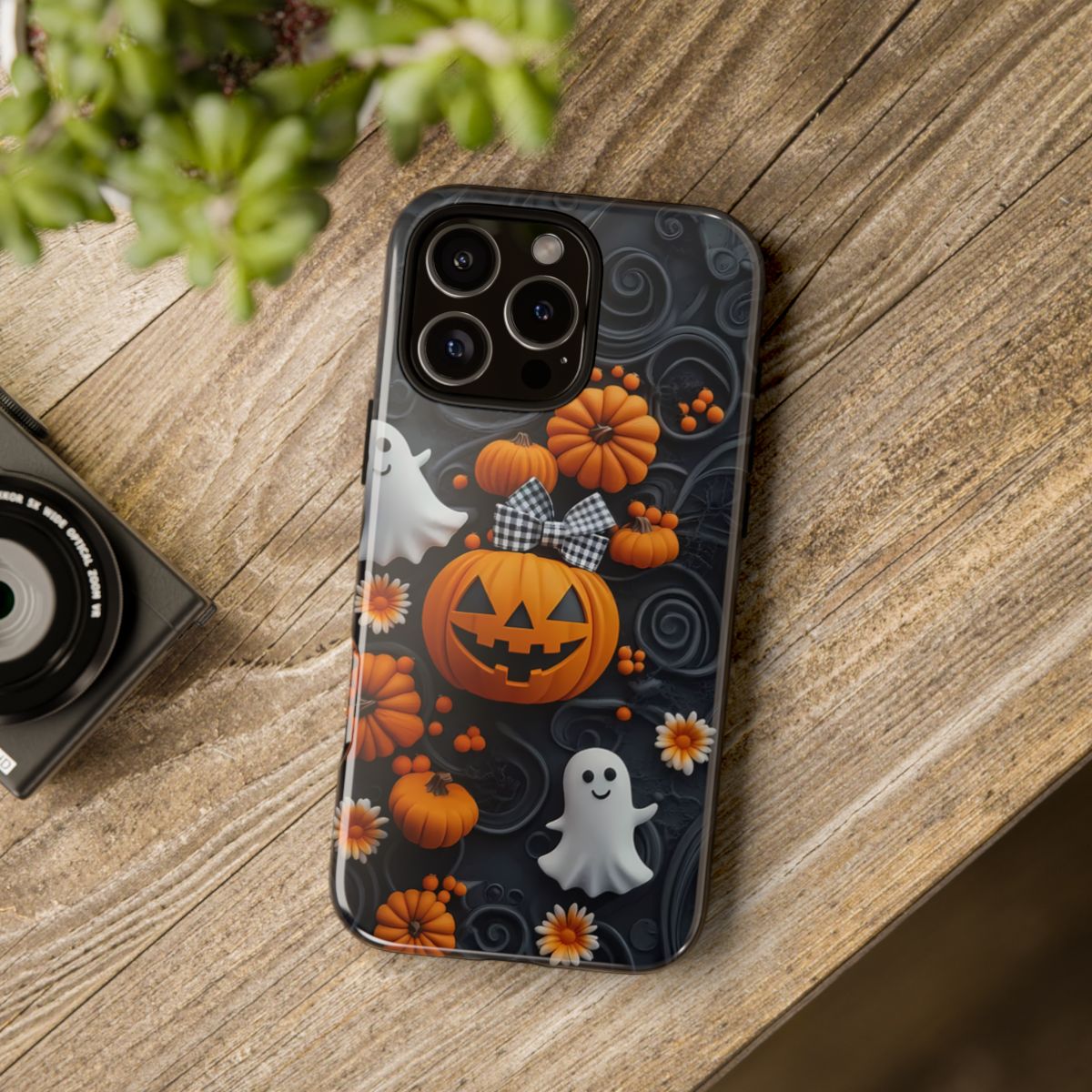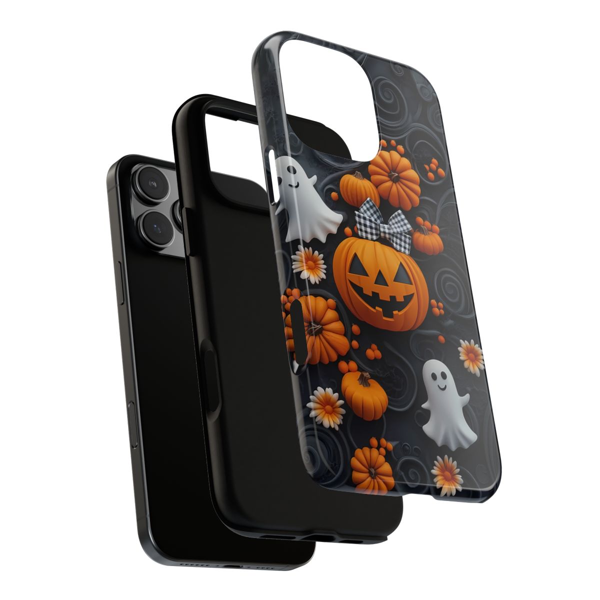Get into the spooky spirit with our Halloween Pumpkin Ghosts Floral Phone Case! Featuring an adorable design of cheerful pumpkins, playful ghosts, and vibrant floral accents, this case is perfect for lovers of all things Halloween. The striking black background enhances the colorful artwork, making your phone not just a gadget, but a festive accessory as well. Durable and protective, this phone case is ideal for keeping your device safe while celebrating the fun and festivities of Halloween. Dress your phone for the season and spread some Halloween cheer everywhere you go!