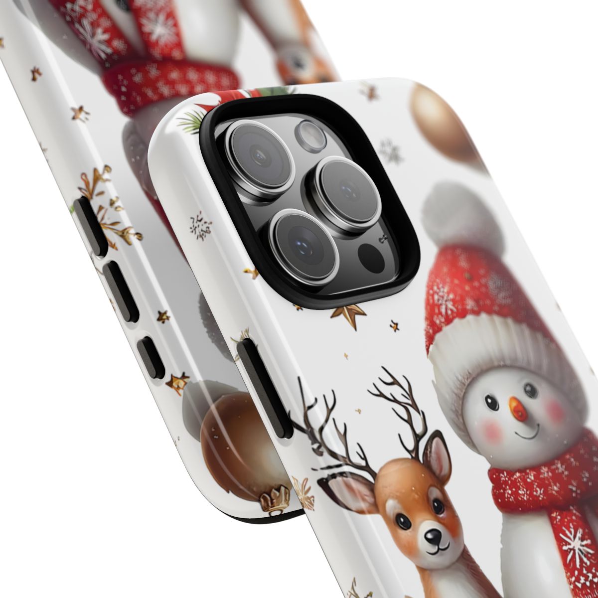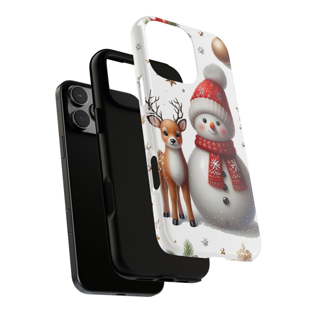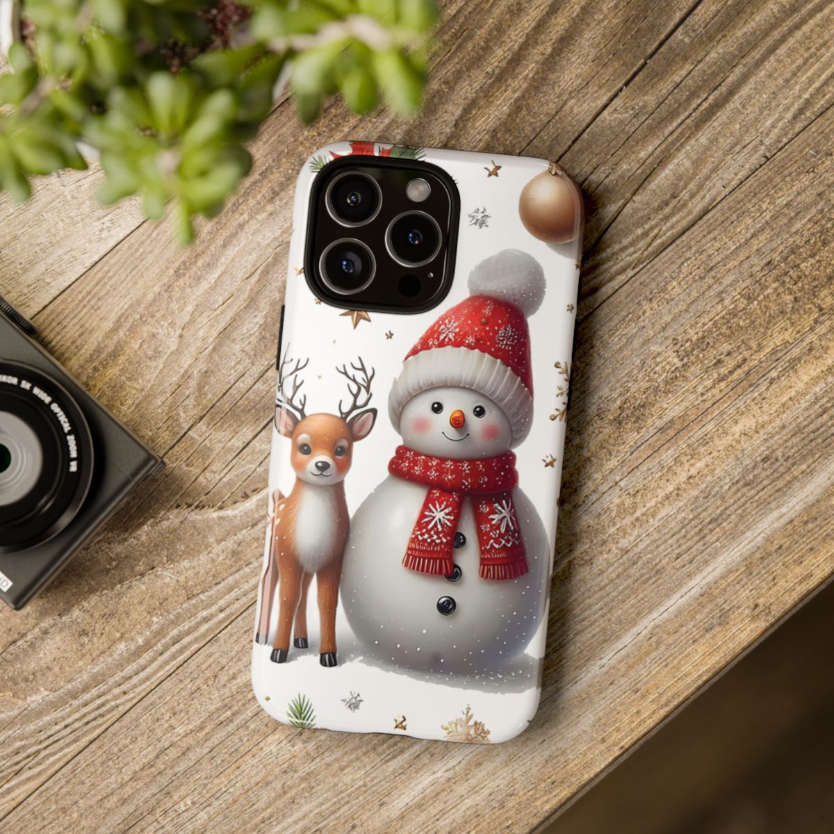 Celebrate the joyous spirit of the holiday season with our adorable Festive Snowman & Reindeer Phone Case. This charming design features a delightful snowman dressed in a cozy red scarf and a cute reindeer by its side, set against a snowy backdrop adorned with sparkling stars and Christmas decorations. Made from durable materials, this case not only provides robust protection for your device but also adds a festive touch to your daily life. Whether you’re a Christmas enthusiast or looking for the perfect holiday gift, this phone case is sure to bring smiles and warmth throughout the season.