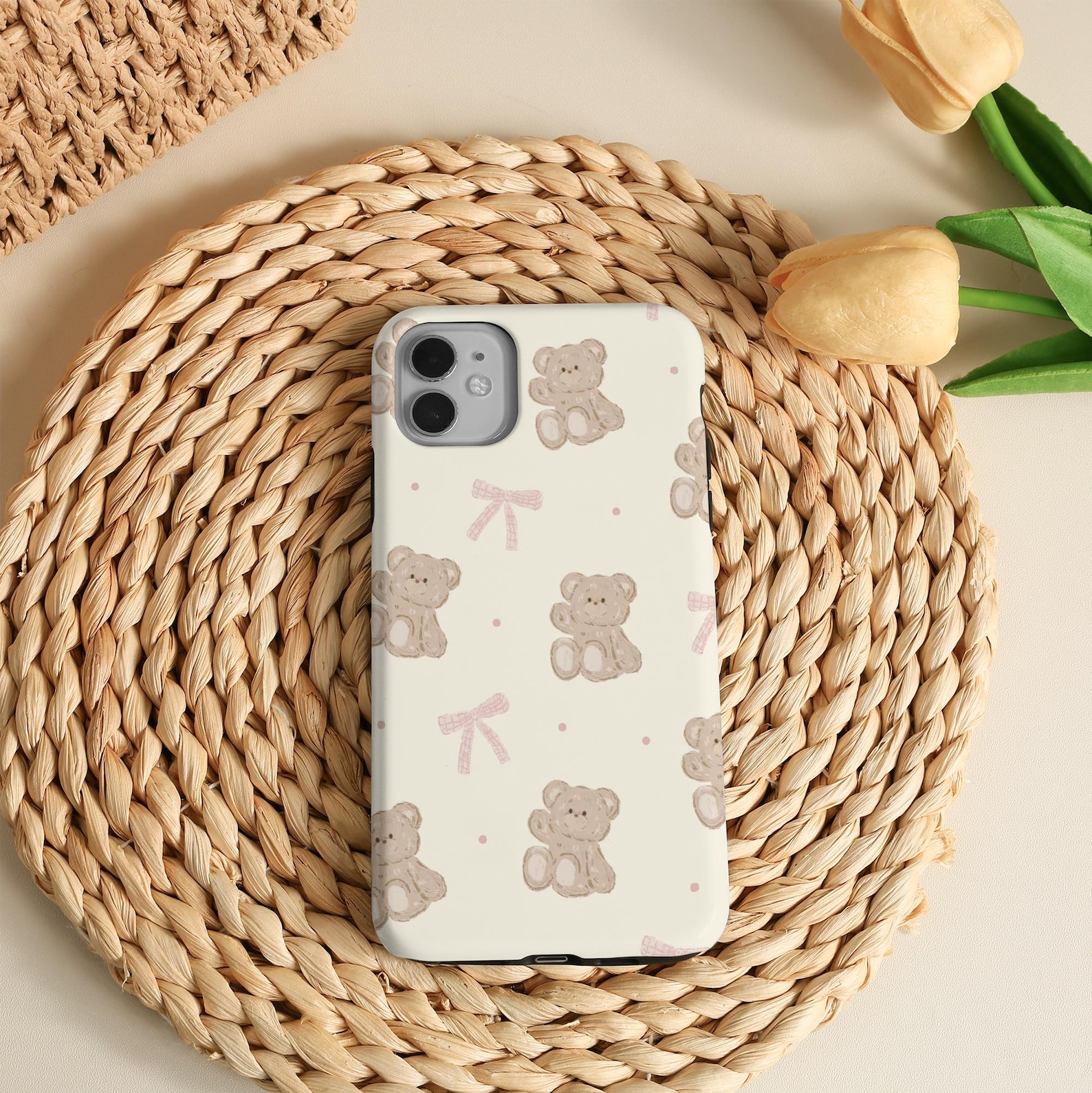 Embrace a playful charm with this cute teddy bear design, featuring adorable bears and delicate bows against a soft, creamy background. The pastel color palette enhances the whimsical vibe, making it perfect for those who love a touch of nostalgia. Crafted from durable material, this case offers shockproof protection while maintaining a glossy finish that feels great in hand. Ideal for anyone looking for a stylish and fun addition to their accessories collection.