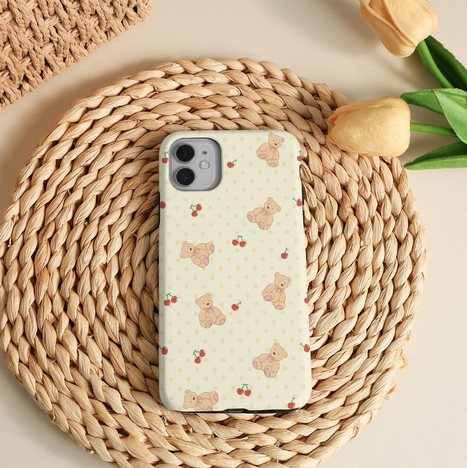 Cute Teddy Bear and Cherry Pattern Tough Phone Case