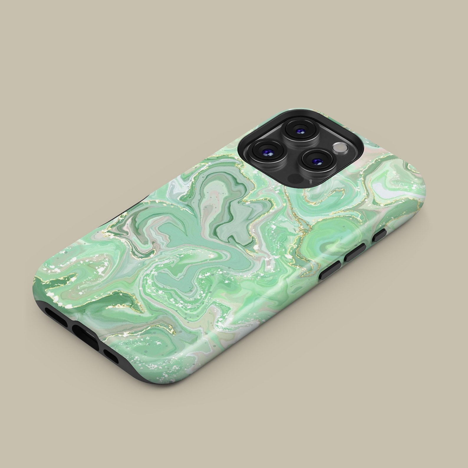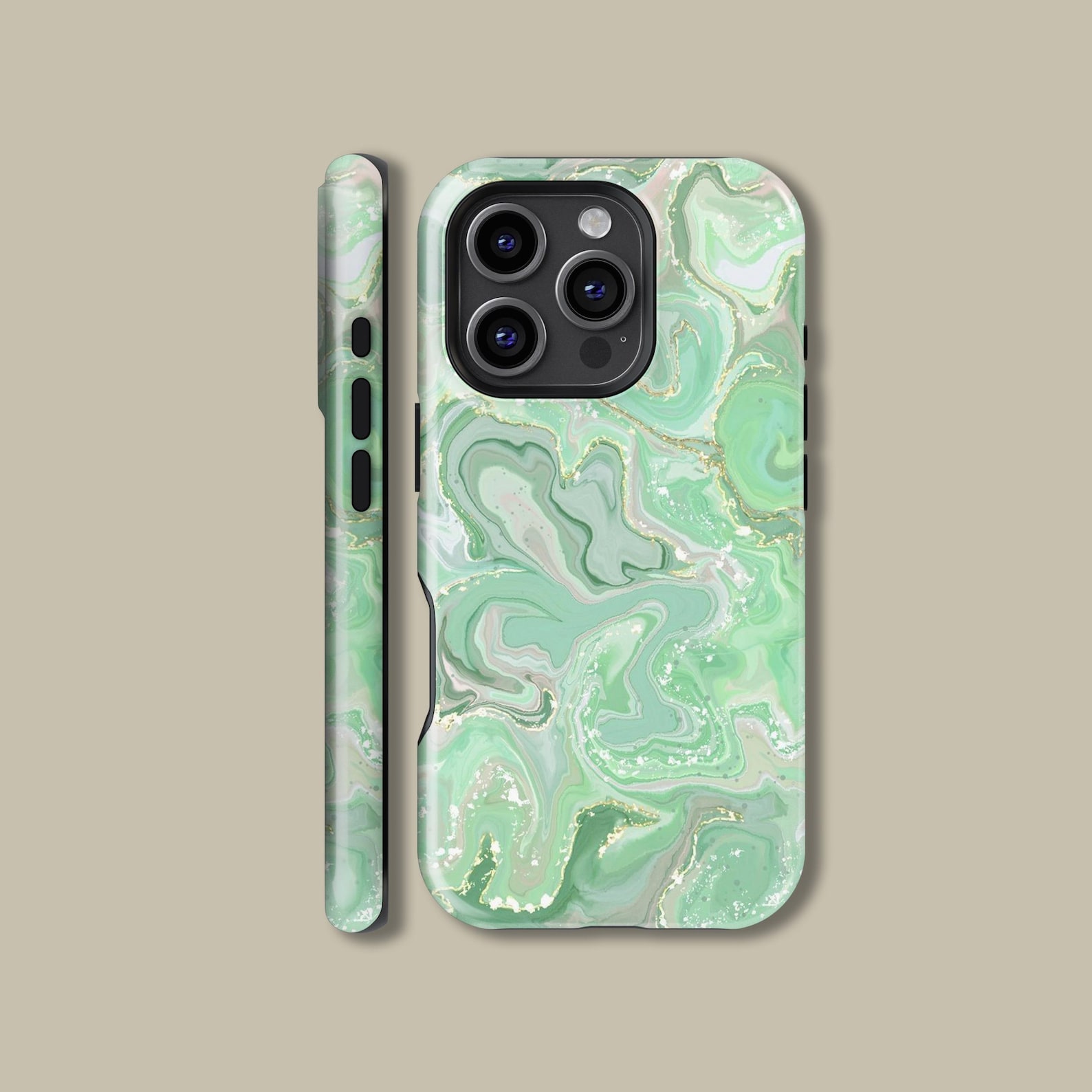 This elegant phone case features a stunning green marble swirl design, blending earthy tones with delicate hints of gold. The glossy finish enhances its luxurious feel, while the shockproof material ensures your device stays protected without compromising style. Perfect for anyone looking to add a touch of sophistication to their everyday carry. Embrace a modern vibe with this beautifully crafted case that combines art and function seamlessly.
