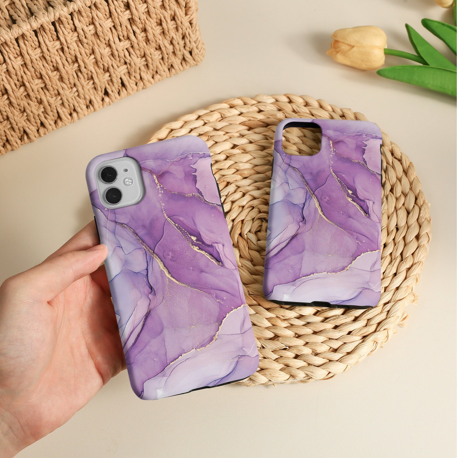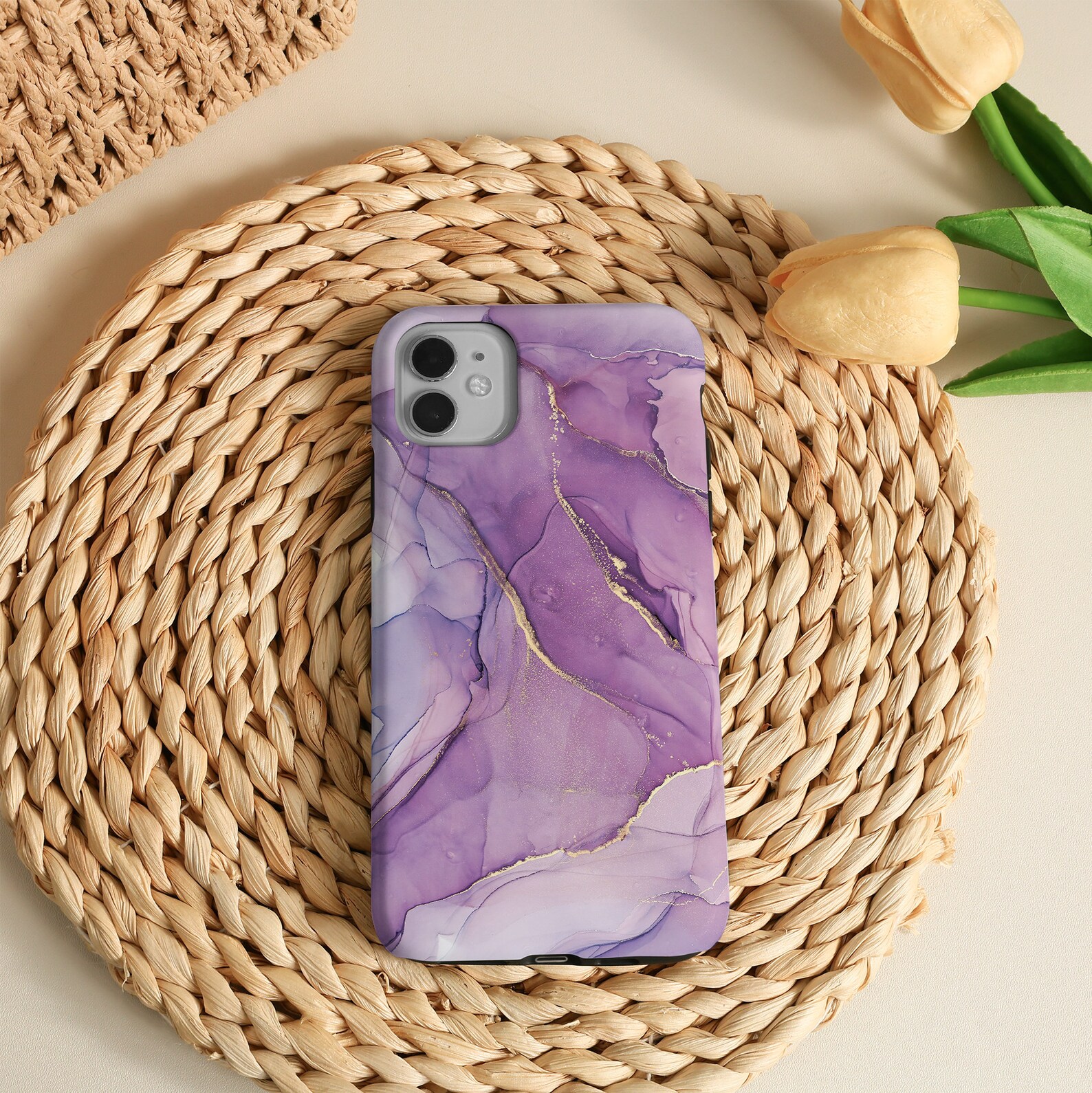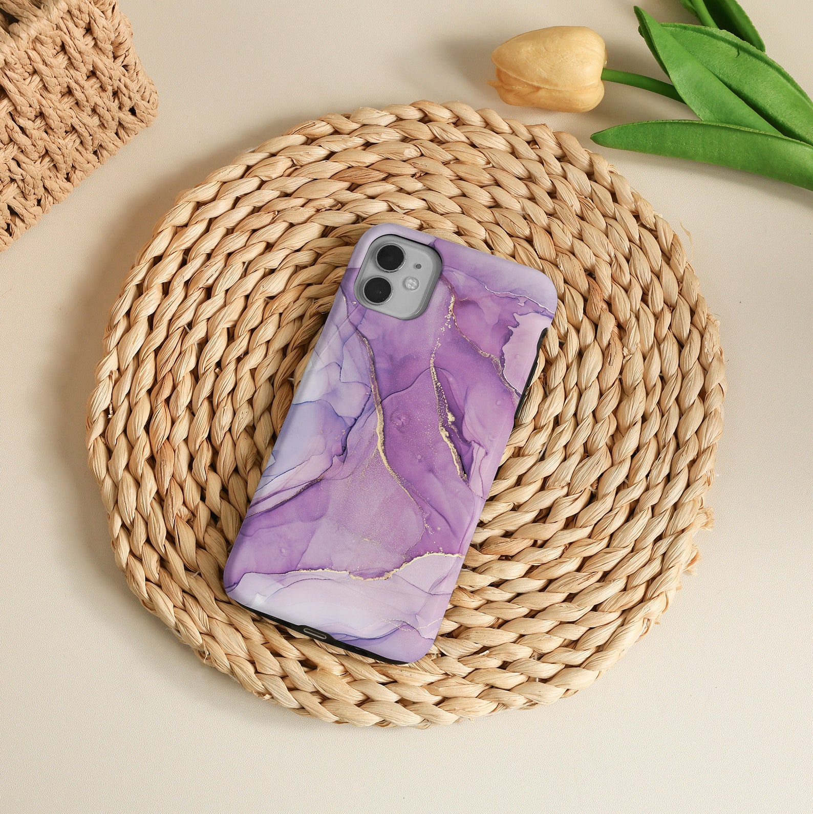 Transform your phone with this elegant purple marble design, exuding a sense of sophistication. The swirling hues of lavender and gold accents create a stunning aesthetic that captures attention. Crafted from durable materials, this case offers excellent protection against shocks while maintaining a sleek appearance. Its smooth texture ensures a comfortable grip, making it both stylish and functional. Perfect for those who appreciate a modern, luxurious vibe in their accessories.