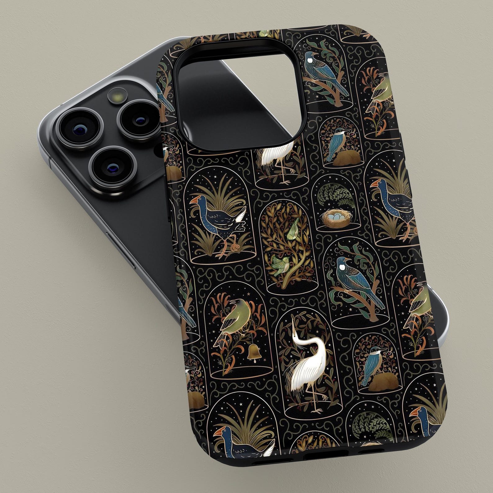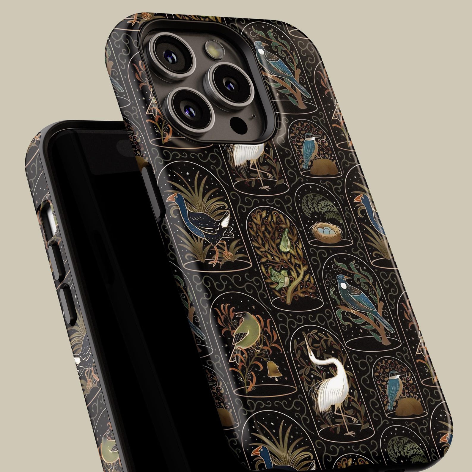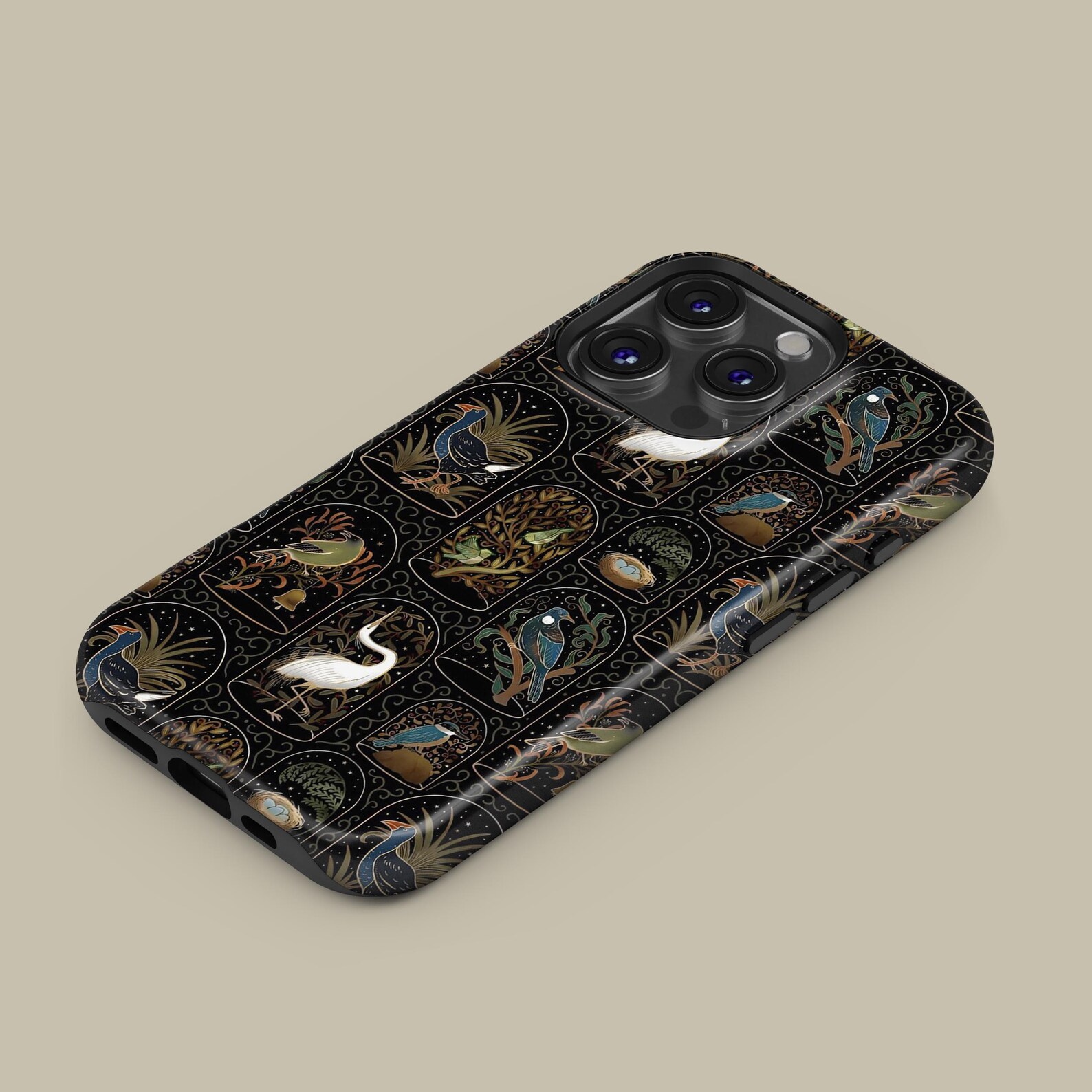 This elegant phone case features a stunning nature-inspired design, showcasing vibrant birds and lush foliage. The intricate details are set against a sleek black background, creating a bold yet sophisticated look. Made from durable, shockproof material, this case offers reliable protection while maintaining a slim profile. Perfect for those with a love for art and the outdoors, it exudes a stylish and modern vibe that enhances your device’s aesthetic.