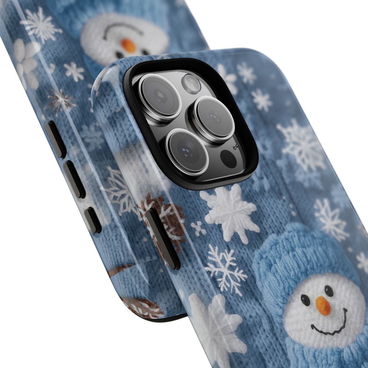 Embrace the winter season with our Cozy Snowman Winter Knit Phone Case, perfect for protecting your device while showcasing your festive spirit. This enchanting design features an adorable snowman in a warm blue scarf, surrounded by charming snowflakes on a cozy knit background. Made from durable materials, this case not only provides excellent protection against drops and scratches but also adds a touch of holiday cheer to your everyday ensemble. Ideal for winter lovers and anyone looking to add a bit of joy to their tech accessories.