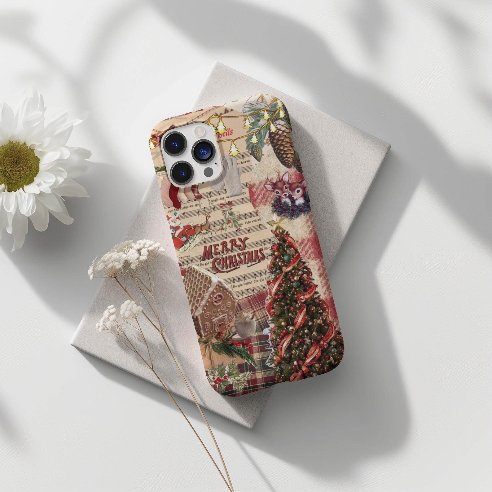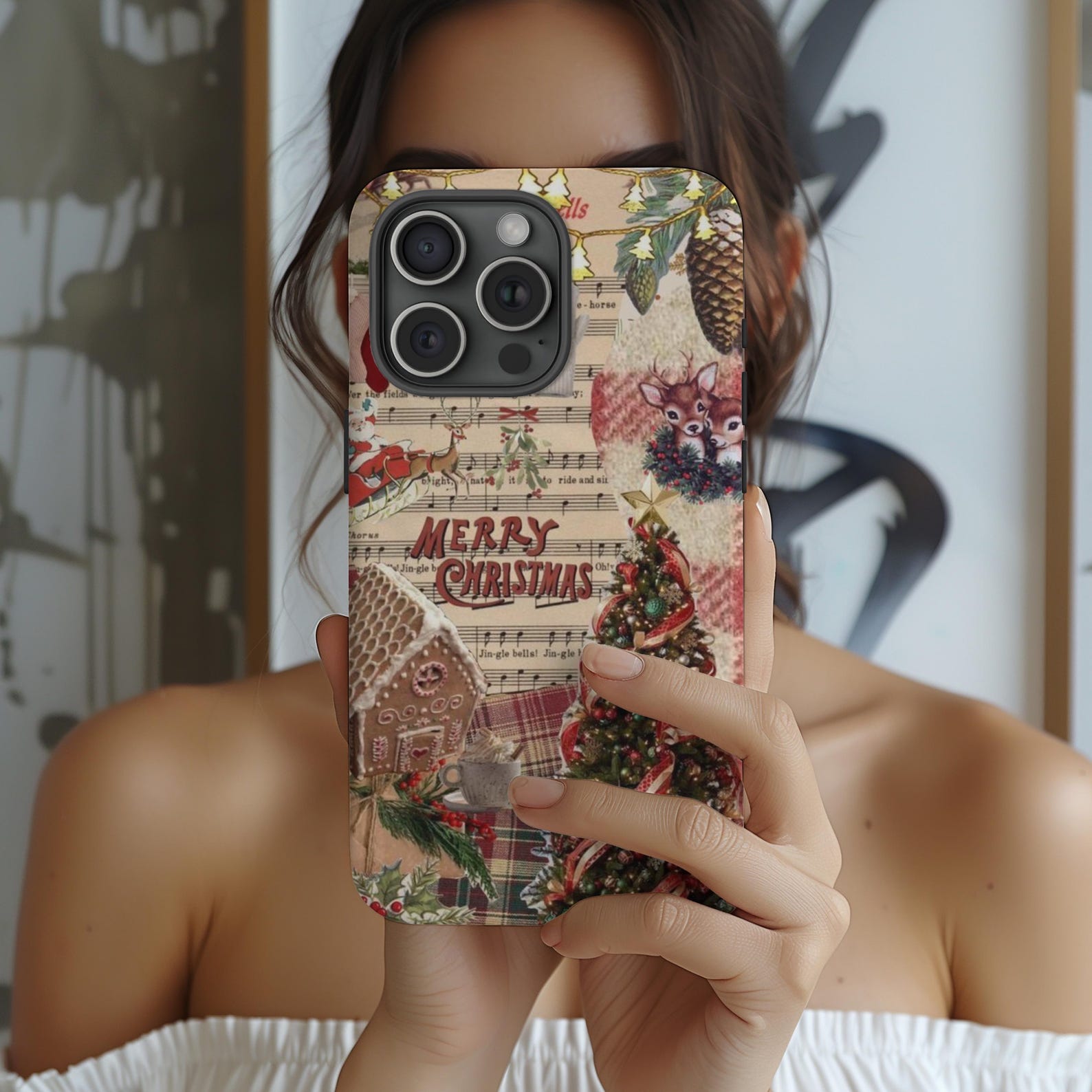 Embrace the holiday spirit with this charming and nostalgic phone case. The design features a delightful mix of Christmas motifs, including gingerbread houses, festive trees, and cheerful carols. Crafted from durable material, it offers a glossy finish that protects your phone while showcasing its merry vibes. Perfect for those who love a whimsical and joyful touch in their everyday accessories.