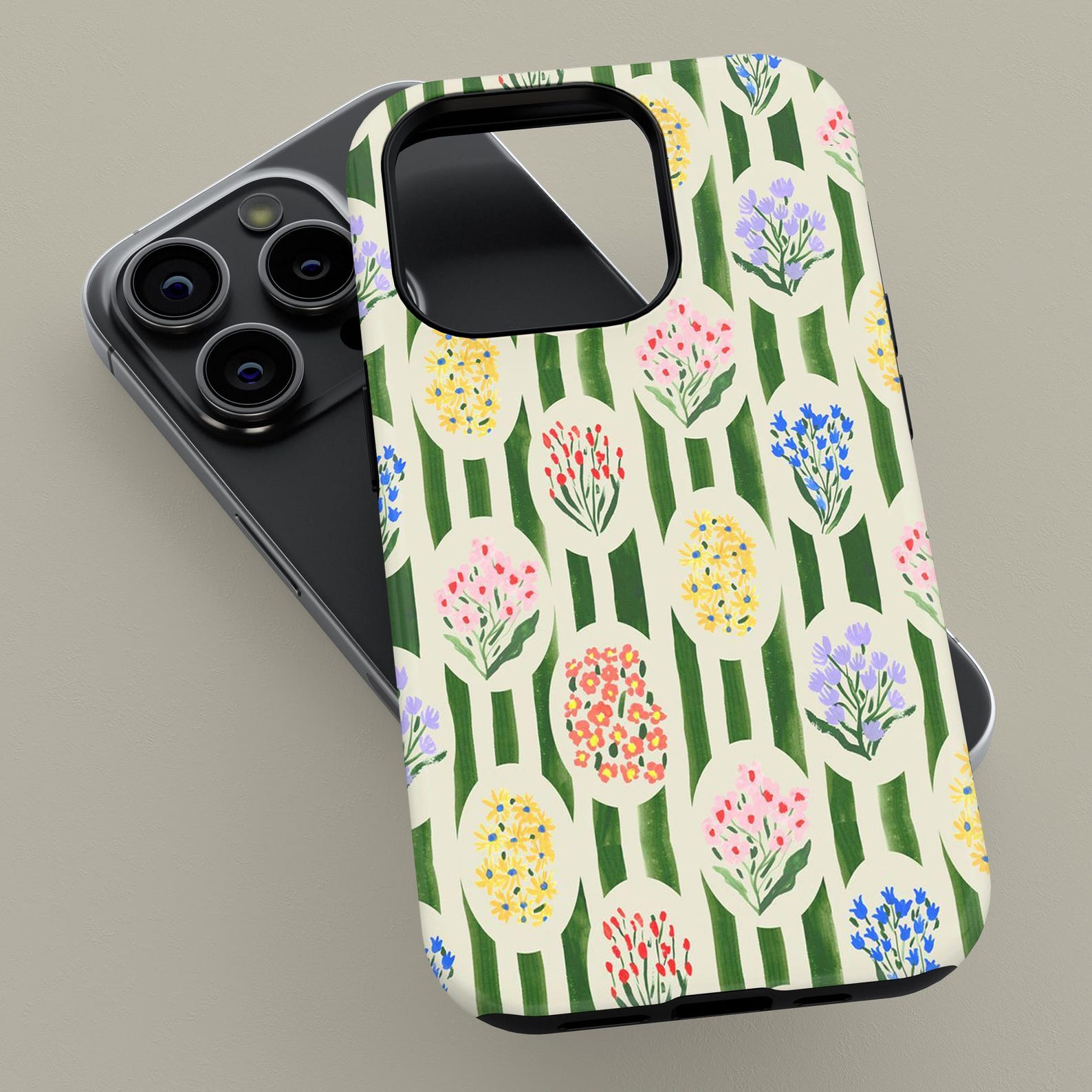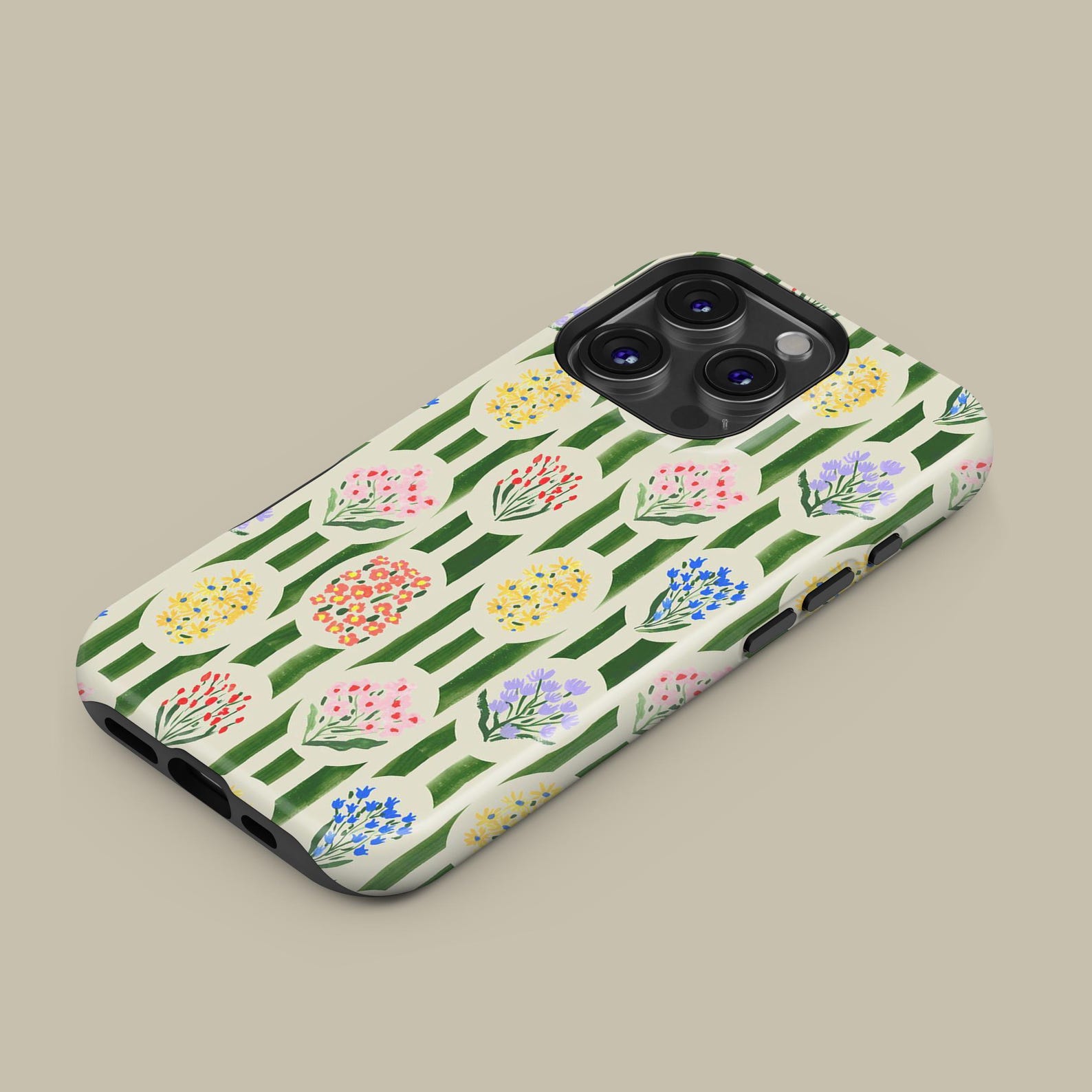 Brighten up your phone with this delightful floral patterned tough phone case. Featuring a lively design of colorful flowers against an eye-catching green striped background, this case combines playfulness and elegance. Made from durable materials, it offers reliable shockproof protection while maintaining a glossy finish. Whether you’re heading to the park or enjoying a cozy day at home, this case brings a stylish vibe to your everyday life.