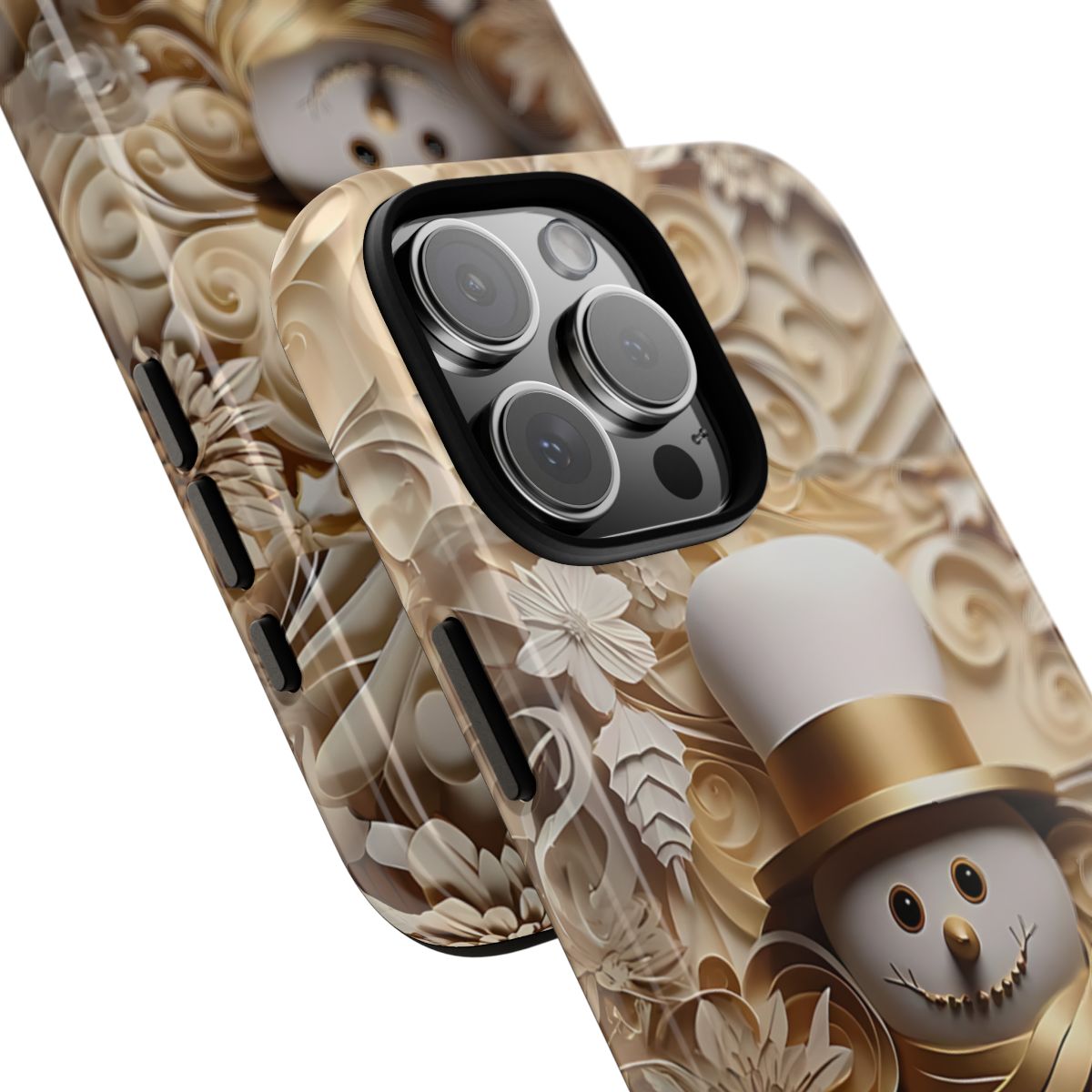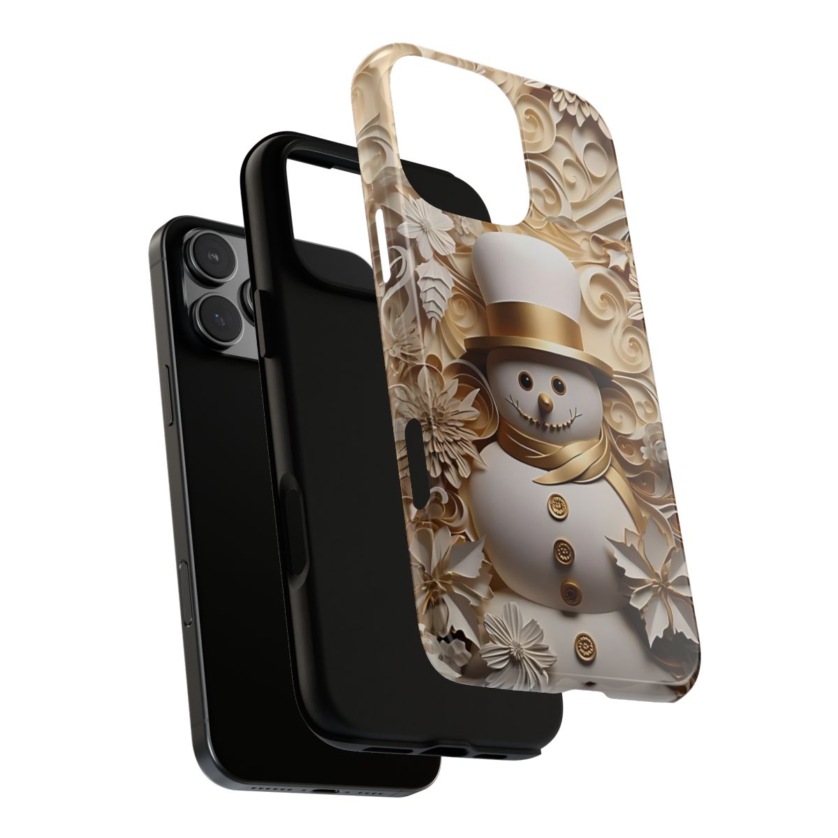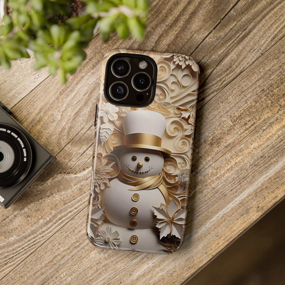 Golden Snowman Christmas Phone Case – 3D like Adorable Snowman with Design Protective Holiday Case for Winter Lovers & Bookish Users