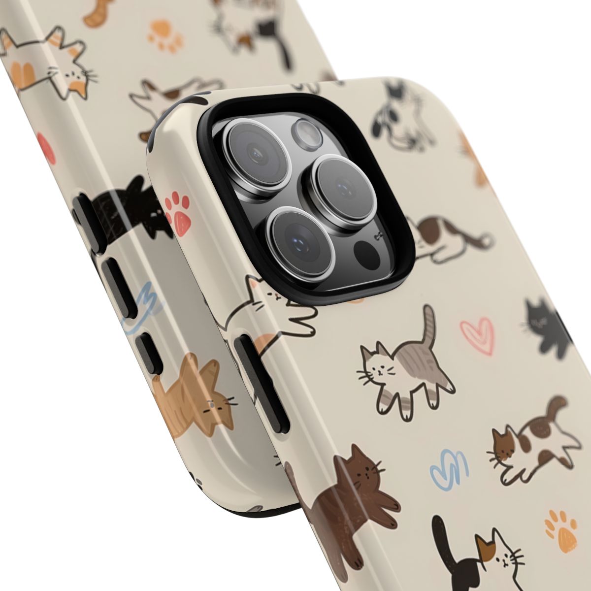 Celebrate your love for feline friends with this adorable phone case featuring a charming array of playful cats in various colors and patterns. Designed for durability and style, this case not only protects your phone from scratches and drops but also showcases a delightful and whimsical design that cat enthusiasts will adore. The light background highlights the fun cat illustrations, making it a perfect accessory for anyone who wants to add personality to their device. Ideal for gifts or personal use, this phone case combines protection with playful artistry.