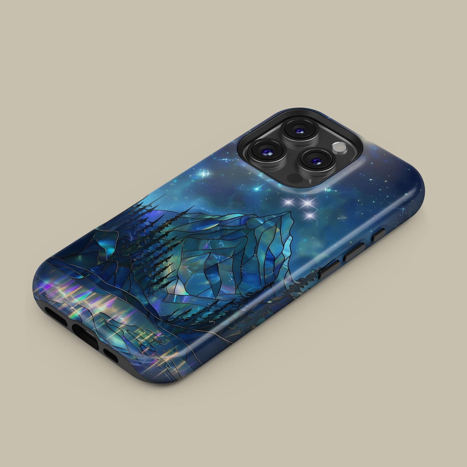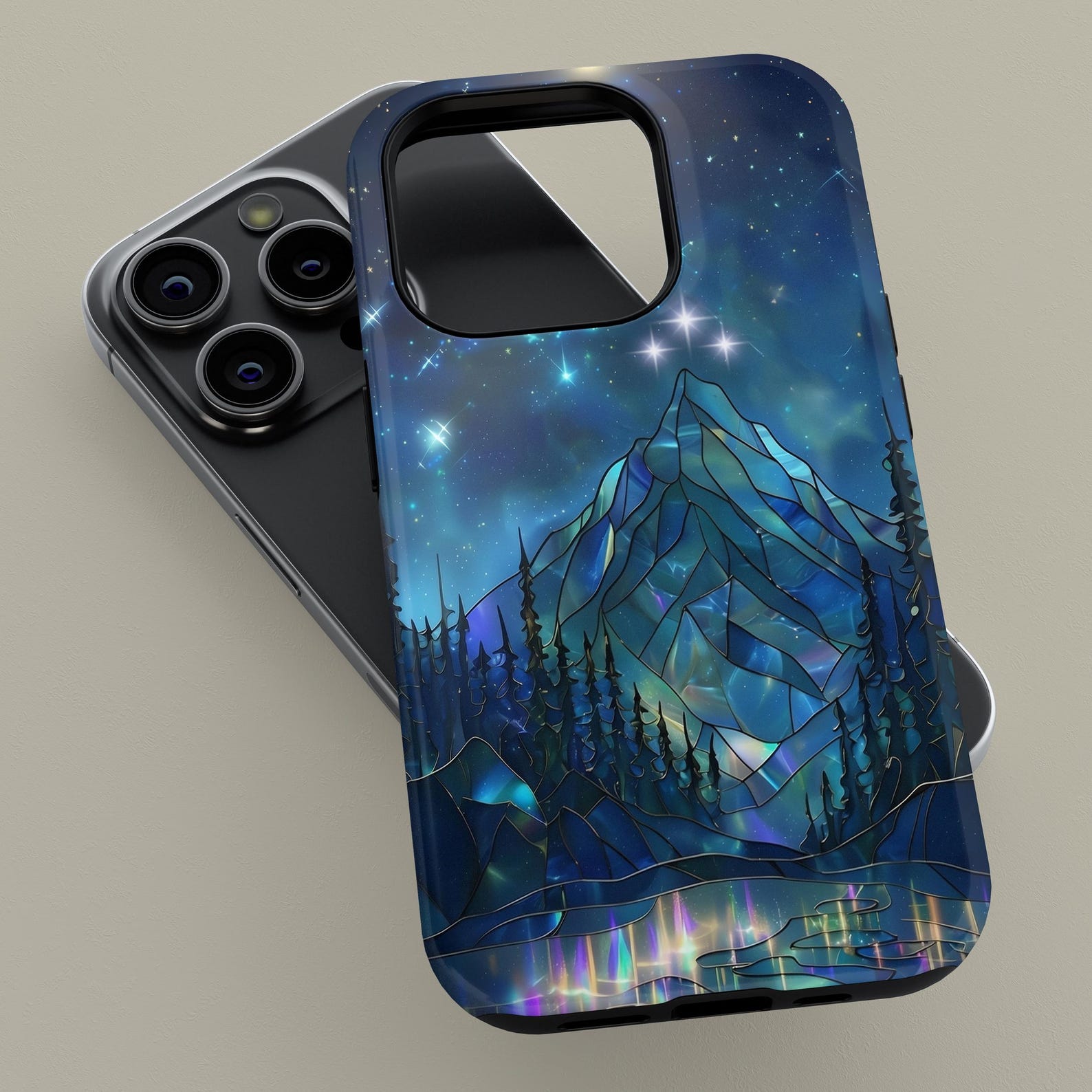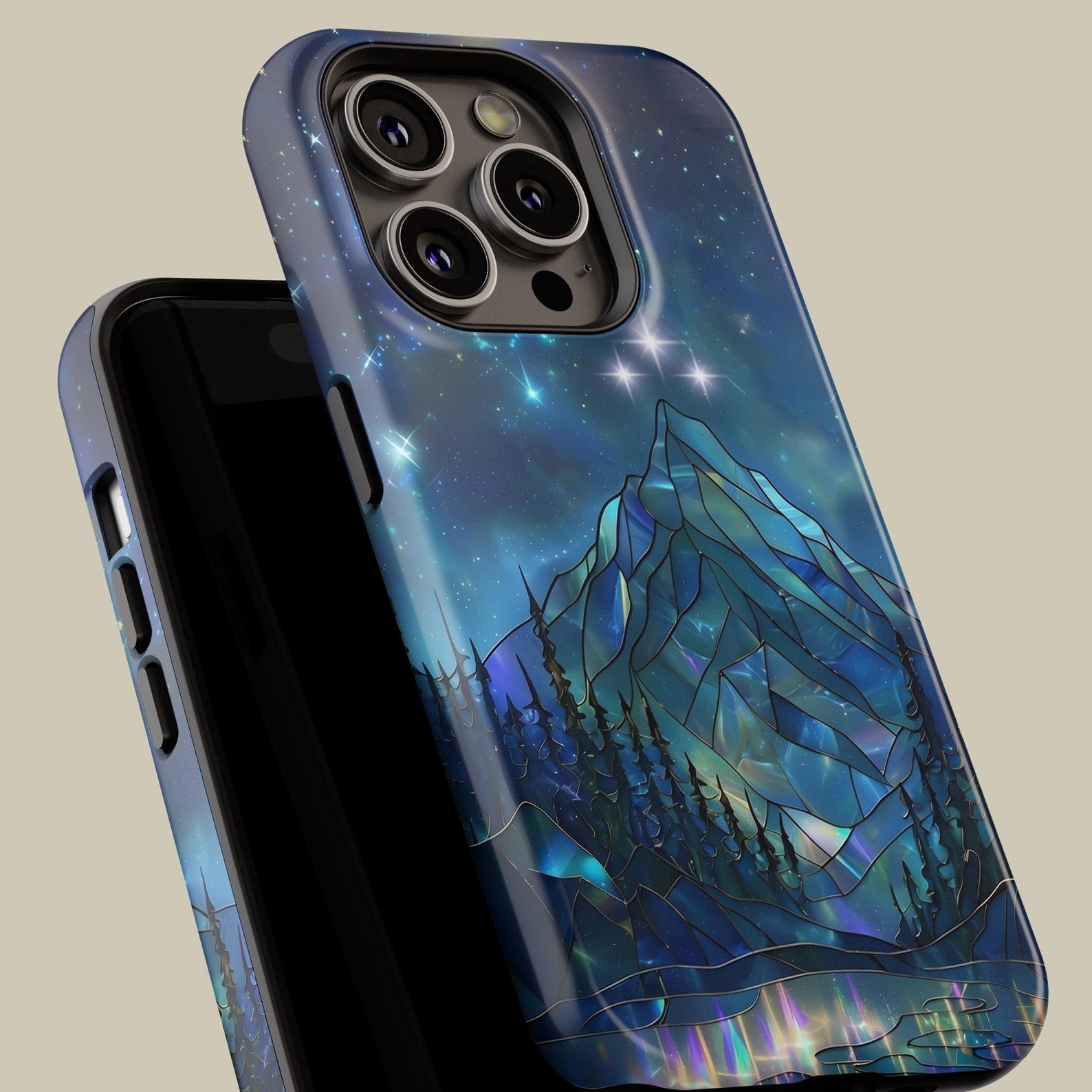 Embrace the beauty of nature with this stunning mountain scene phone case. The design features a captivating blend of deep blues and shimmering accents, creating a serene and tranquil vibe. Made from durable materials, this tough case provides shockproof protection while maintaining a sleek and glossy finish. Perfect for those who appreciate artful aesthetics and the allure of the wilderness.