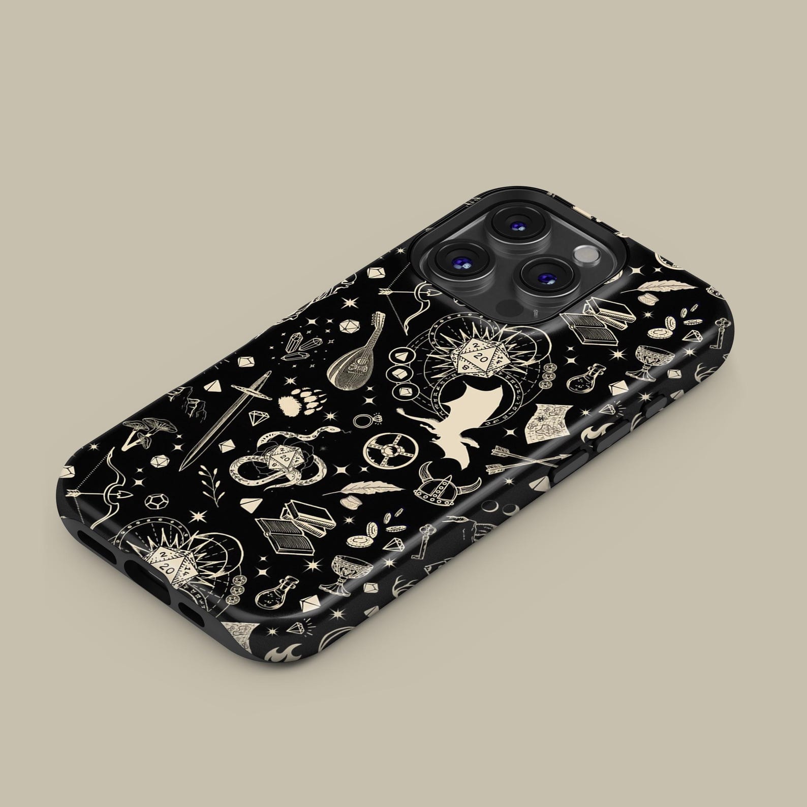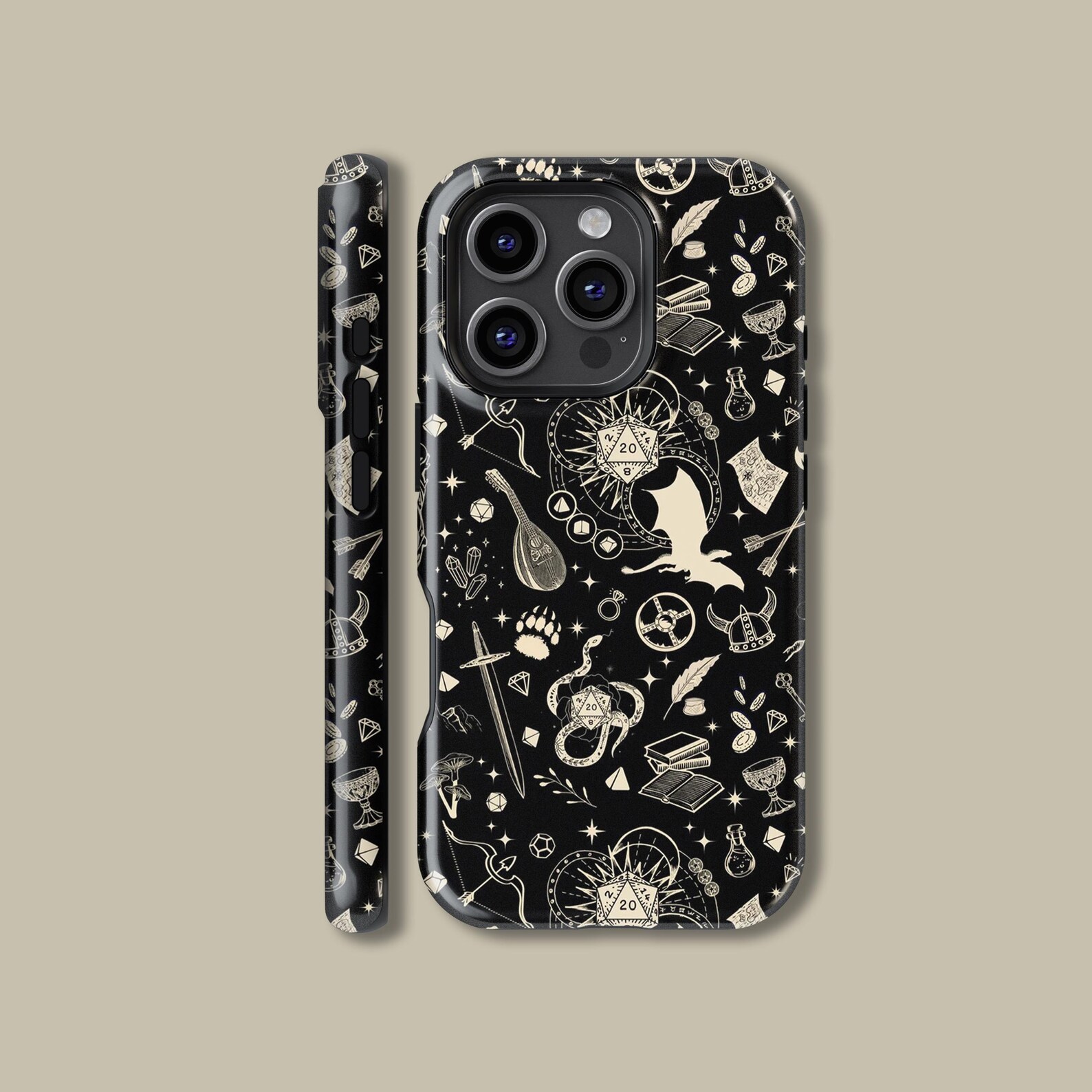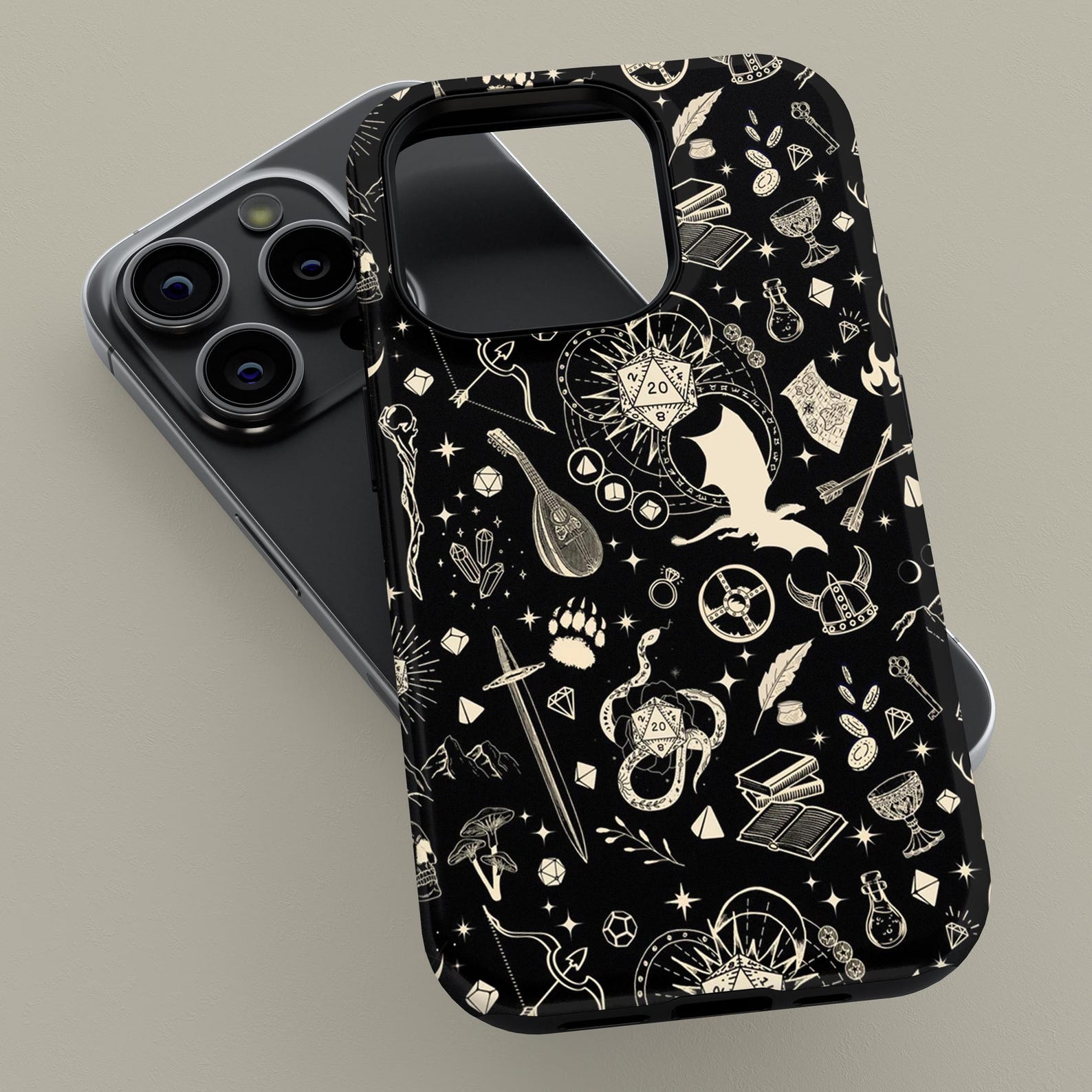 Embrace a mysterious vibe with this enchanting phone case adorned with various mystical symbols. The black background contrasts beautifully with intricate white illustrations, creating an intriguing aesthetic. Crafted from durable materials, this case offers shockproof protection while maintaining a sleek, glossy texture. Perfect for those who appreciate an artistic touch, this stylish accessory makes a bold statement wherever you go.