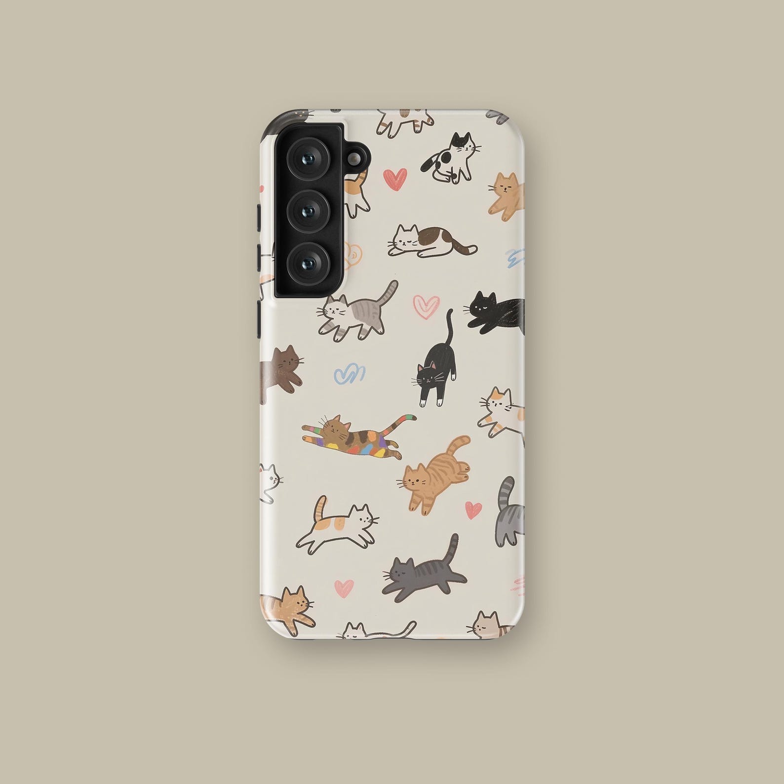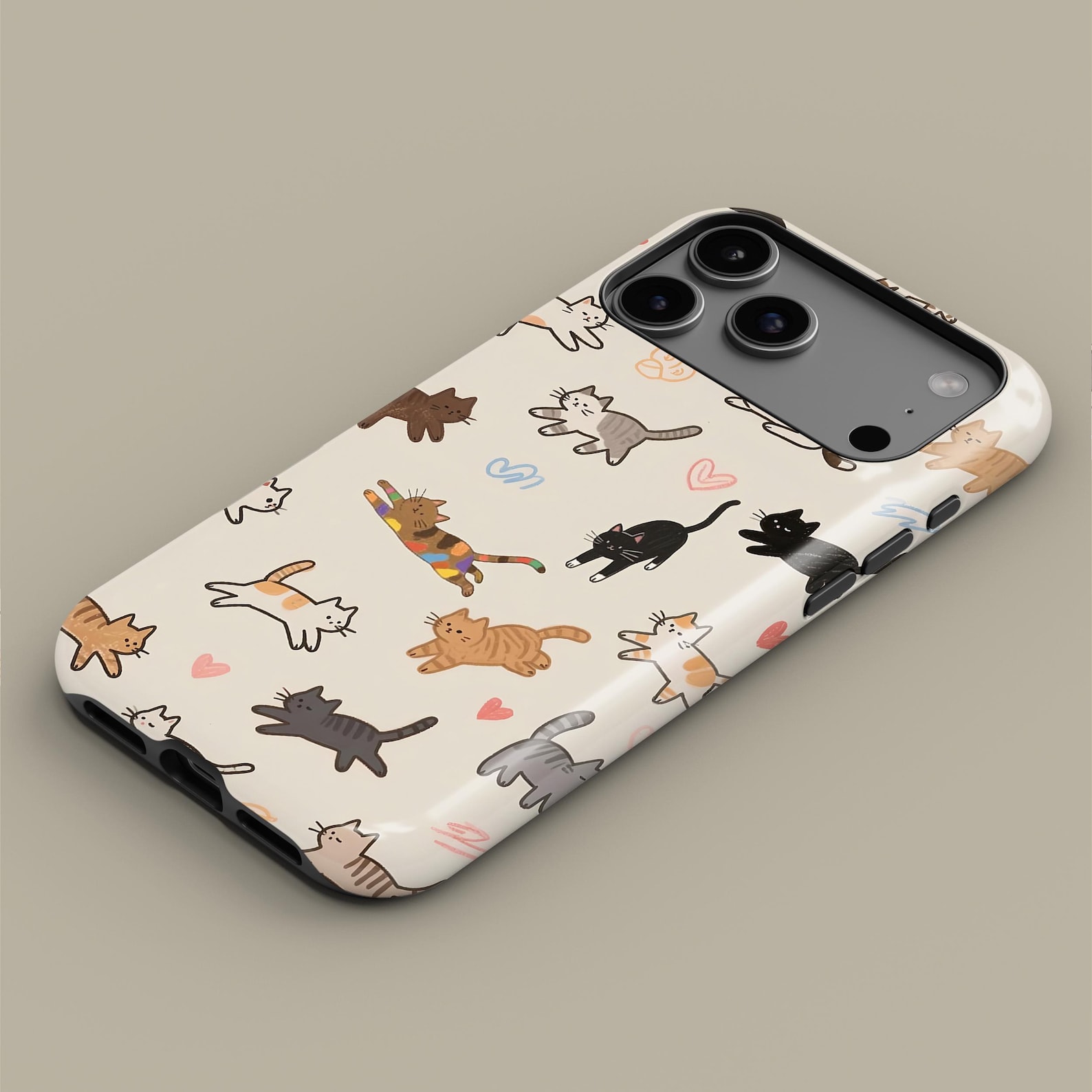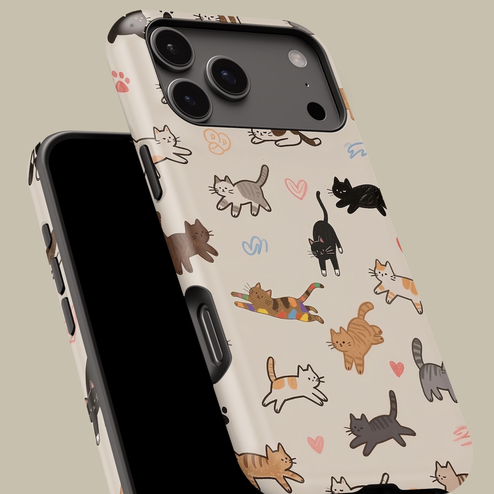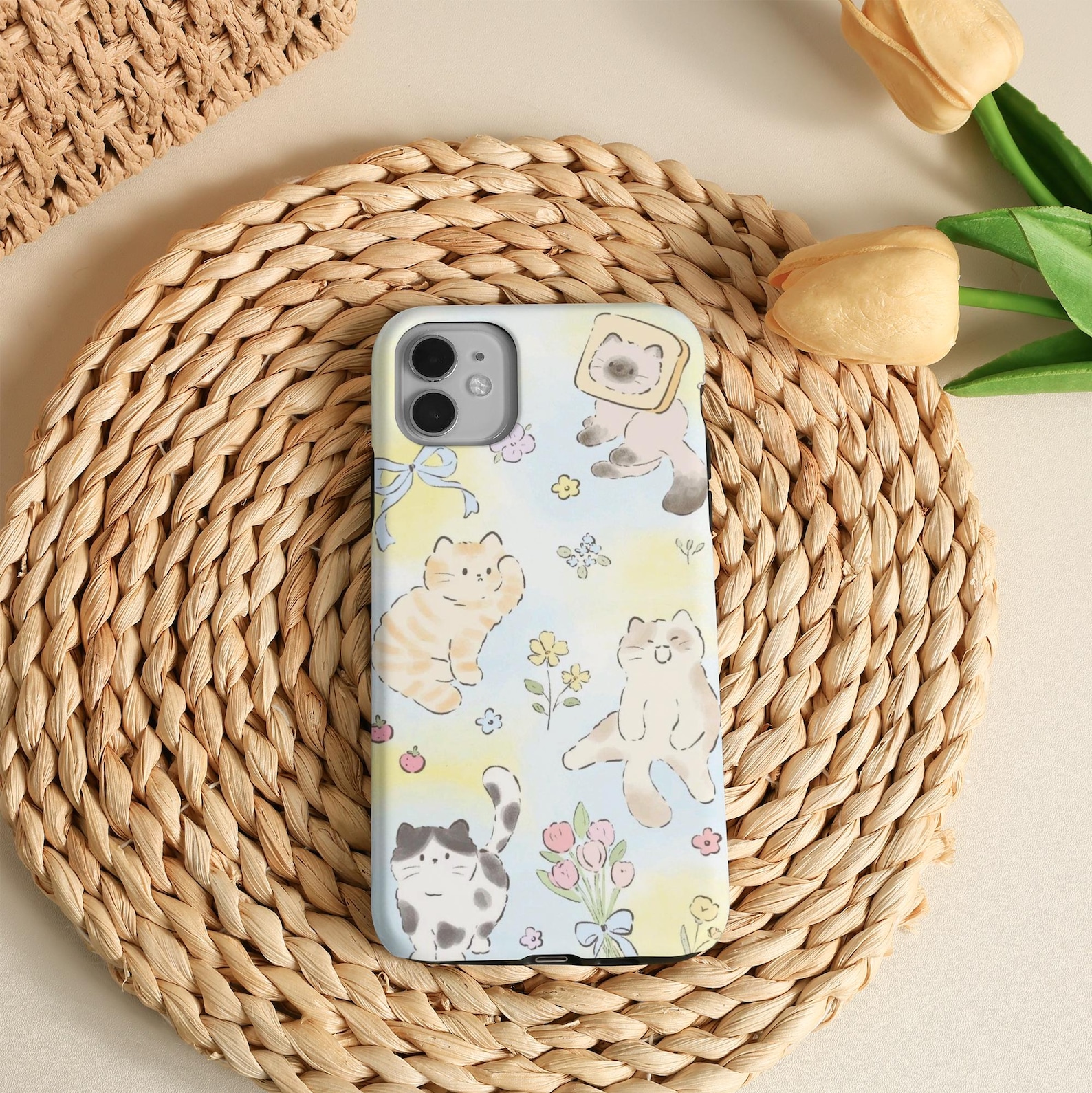 Embrace your love for felines with this adorable phone case featuring a playful cat design. The soft pastel colors and cheerful illustrations create a lighthearted and fun vibe, perfect for cat enthusiasts. Made from durable materials, this case provides shockproof protection while maintaining a smooth, matte finish. It’s not just stylish; it’s also a cozy companion for your phone, blending whimsy and practicality beautifully.