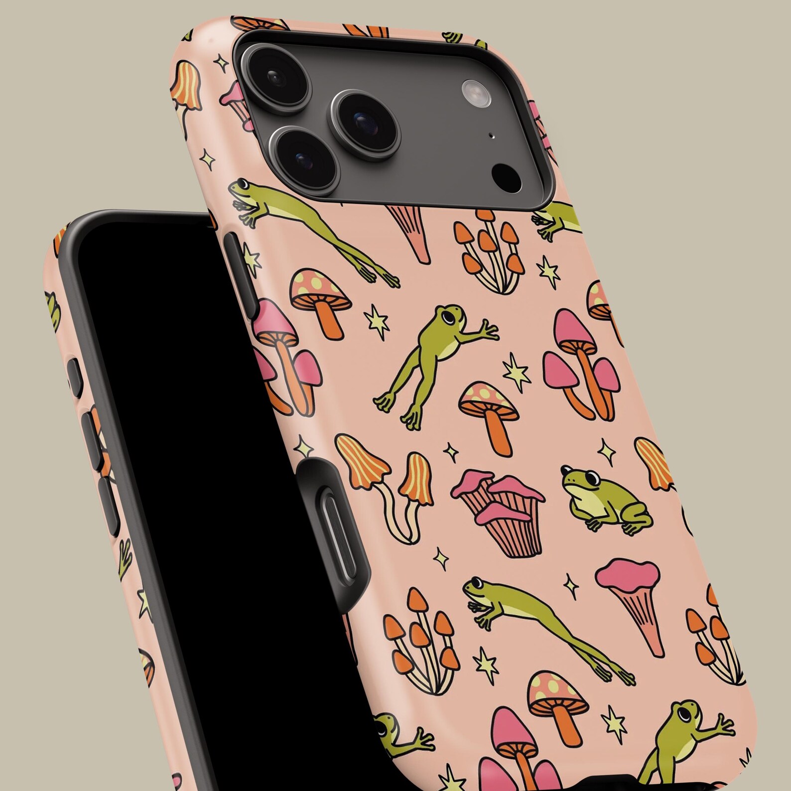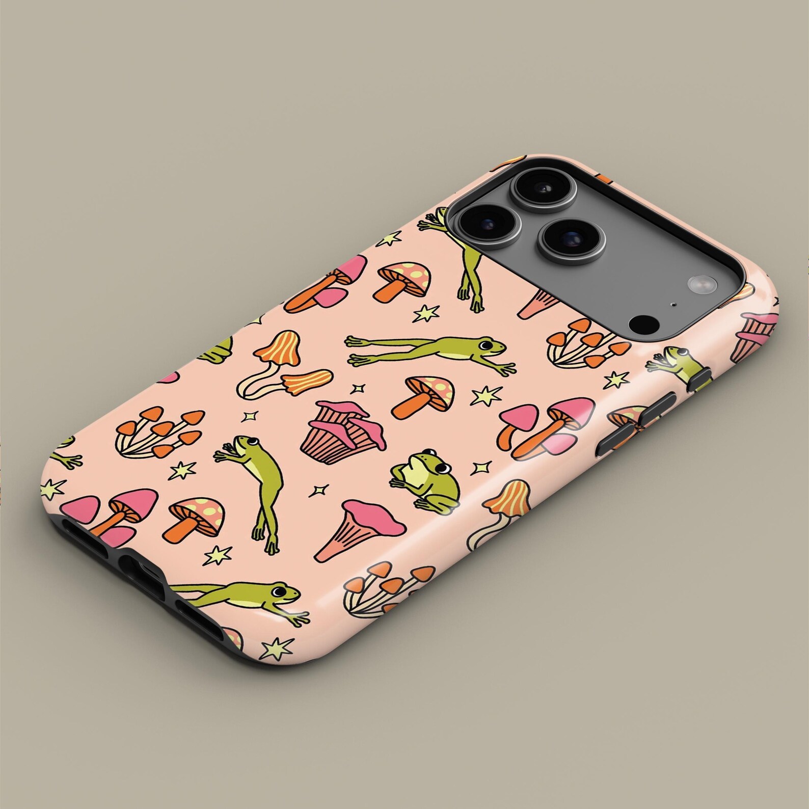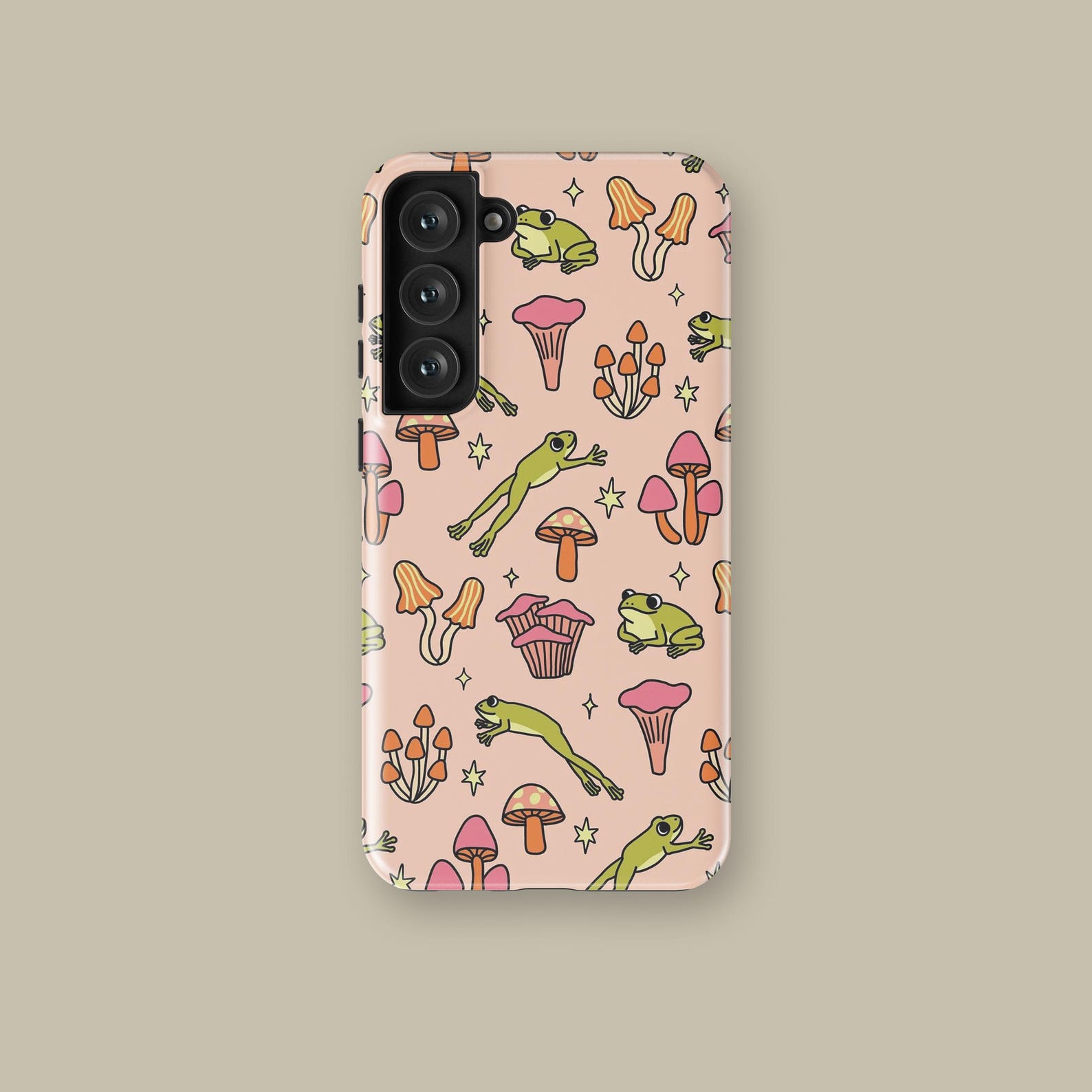 Embrace a whimsical vibe with this playful design featuring vibrant frogs and colorful mushrooms. The soft pastel background adds a cheerful touch, while the detailed illustrations bring a sense of fun and adventure. Made from durable materials, this shockproof case offers both style and protection for your phone. Whether you’re an animal lover or an ardent fan of nature, this case is perfect for showcasing your unique personality.