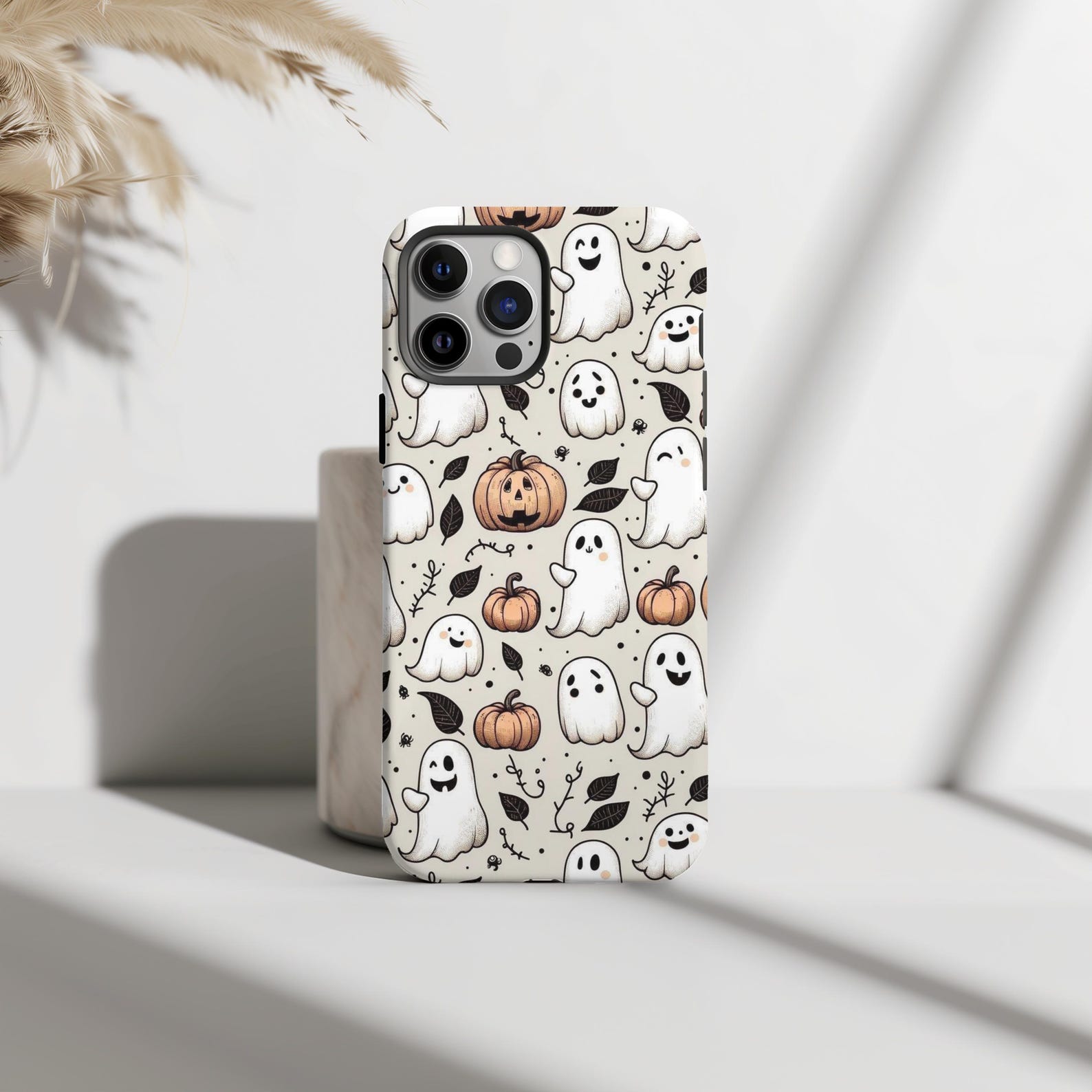Embrace the whimsical spirit of Halloween with this delightful phone case featuring charming ghosts and smiling pumpkins. The soft pastel colors and cute illustrations create a fun and festive vibe, perfect for those who love to celebrate the season. Made from durable materials, this tough phone case offers reliable protection while maintaining a stylish look. Its matte finish ensures a comfortable grip, making it both practical and stylish for everyday use.