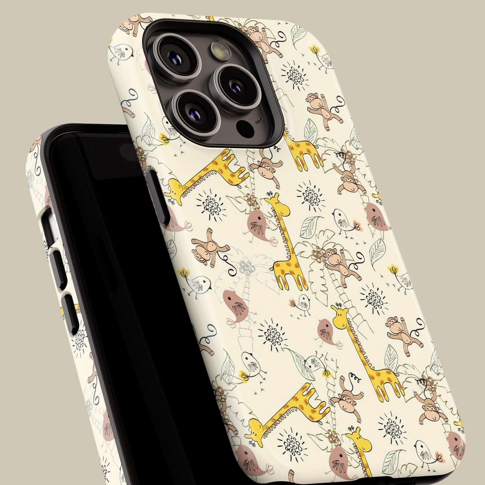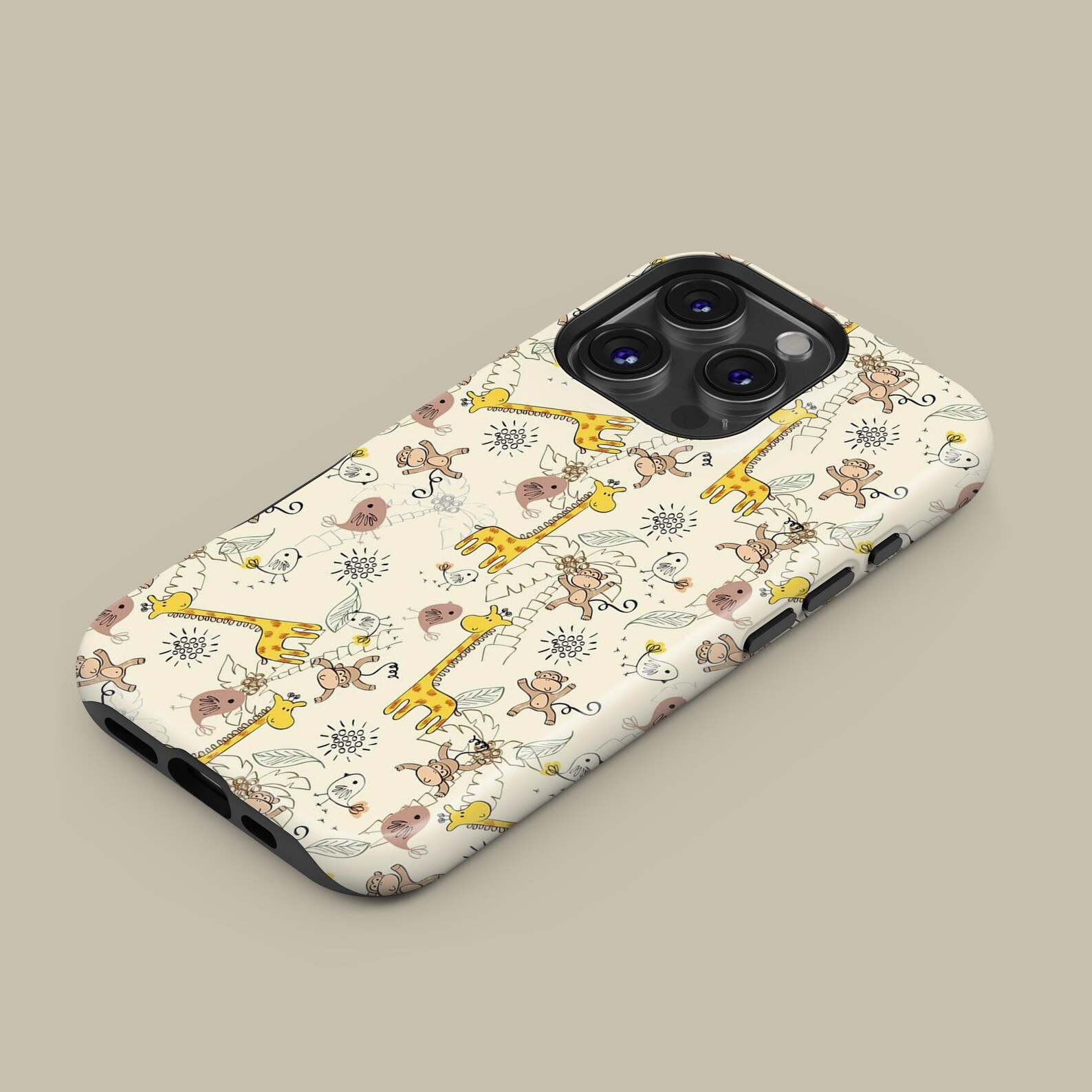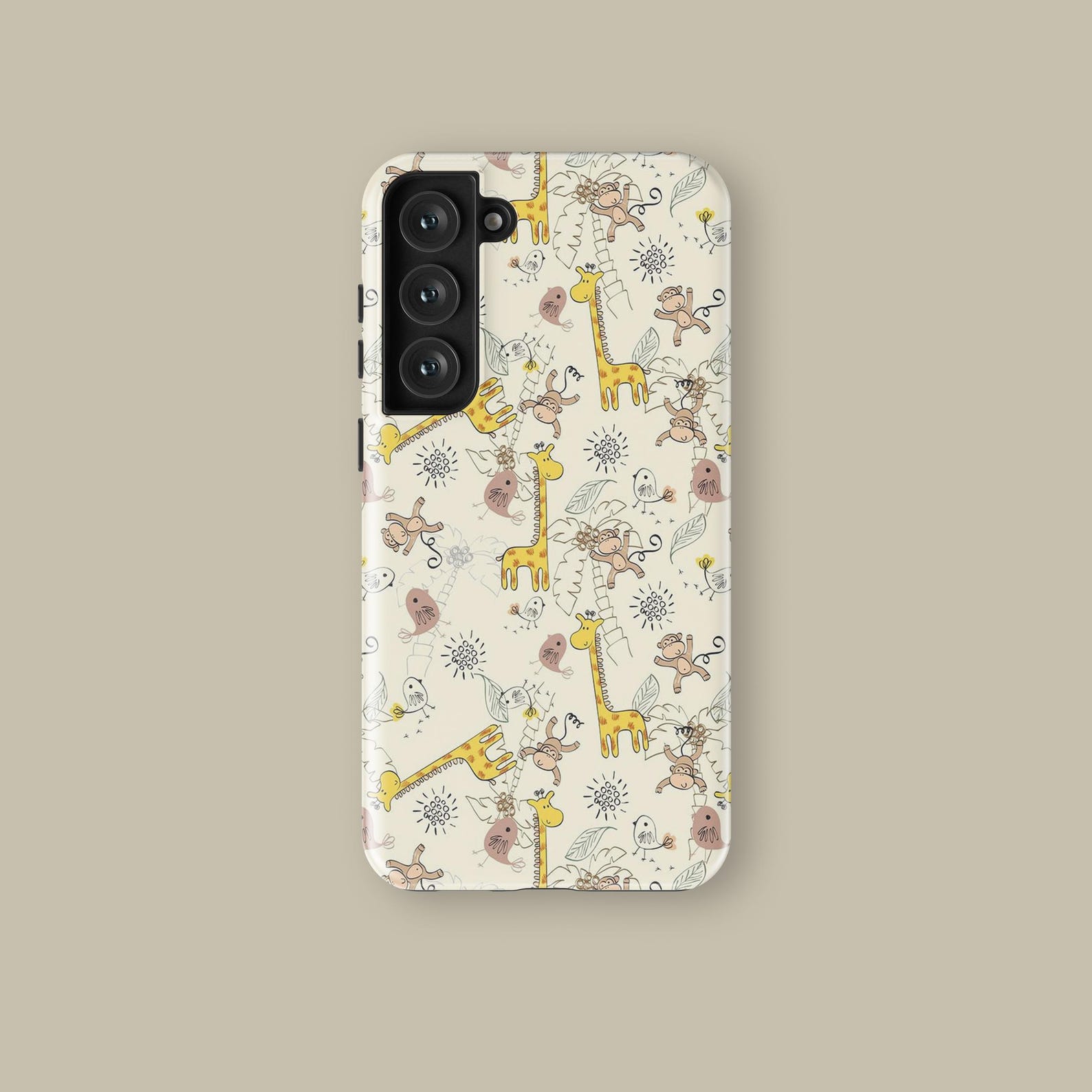Bring a touch of whimsy to your everyday essentials with this delightful phone case featuring a playful assortment of jungle animals. The design highlights vibrant yellows and soft browns against a light background, creating a cheerful vibe. Made from durable, shockproof material, this case not only protects your phone but also adds a stylish flair. The matte finish ensures a comfortable grip while remaining sleek and modern. Transform your phone into a fun accessory with this charming wildlife-inspired design.