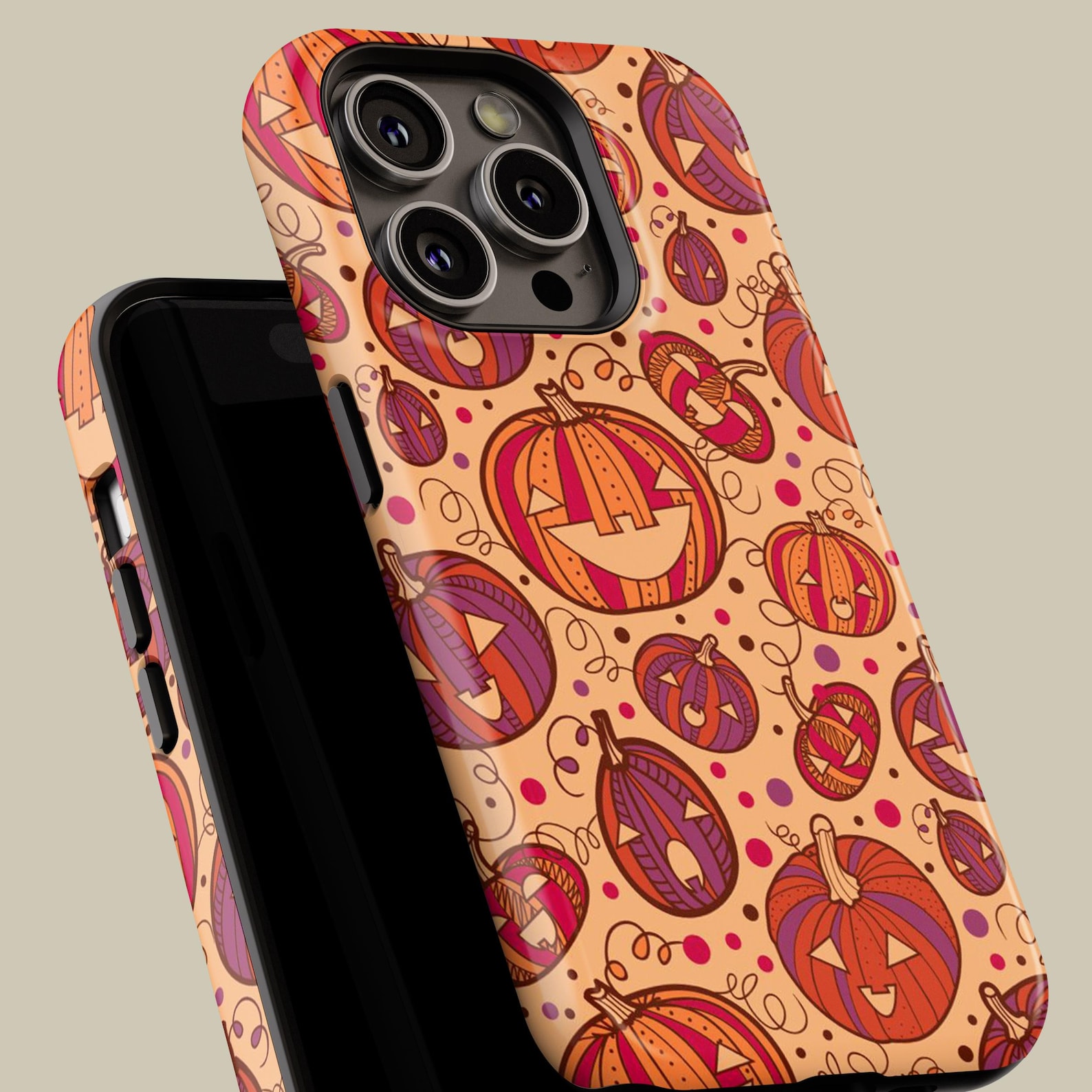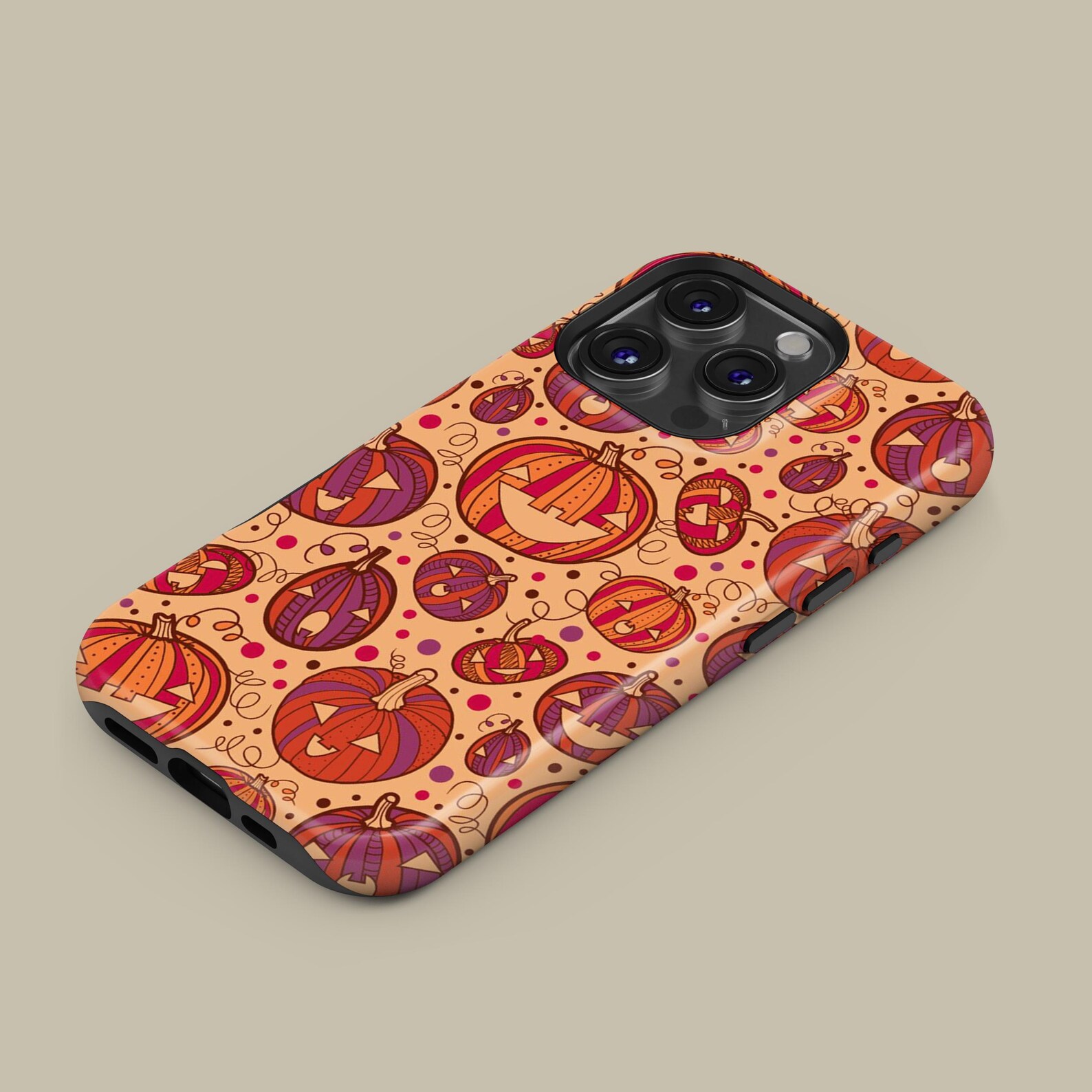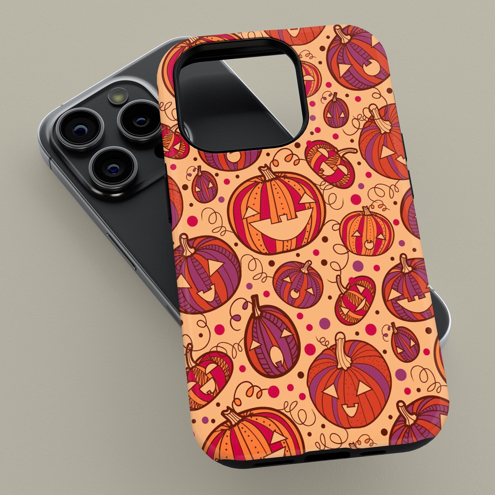 Celebrate the spirit of fall with this playful pumpkin design. Featuring vibrant orange and purple hues, the whimsical illustrations create a fun and festive atmosphere. Made from durable materials, this tough phone case offers excellent protection while maintaining a stylish look. Its glossy finish enhances the lively artwork, making it a great accessory for anyone who loves autumn vibes.