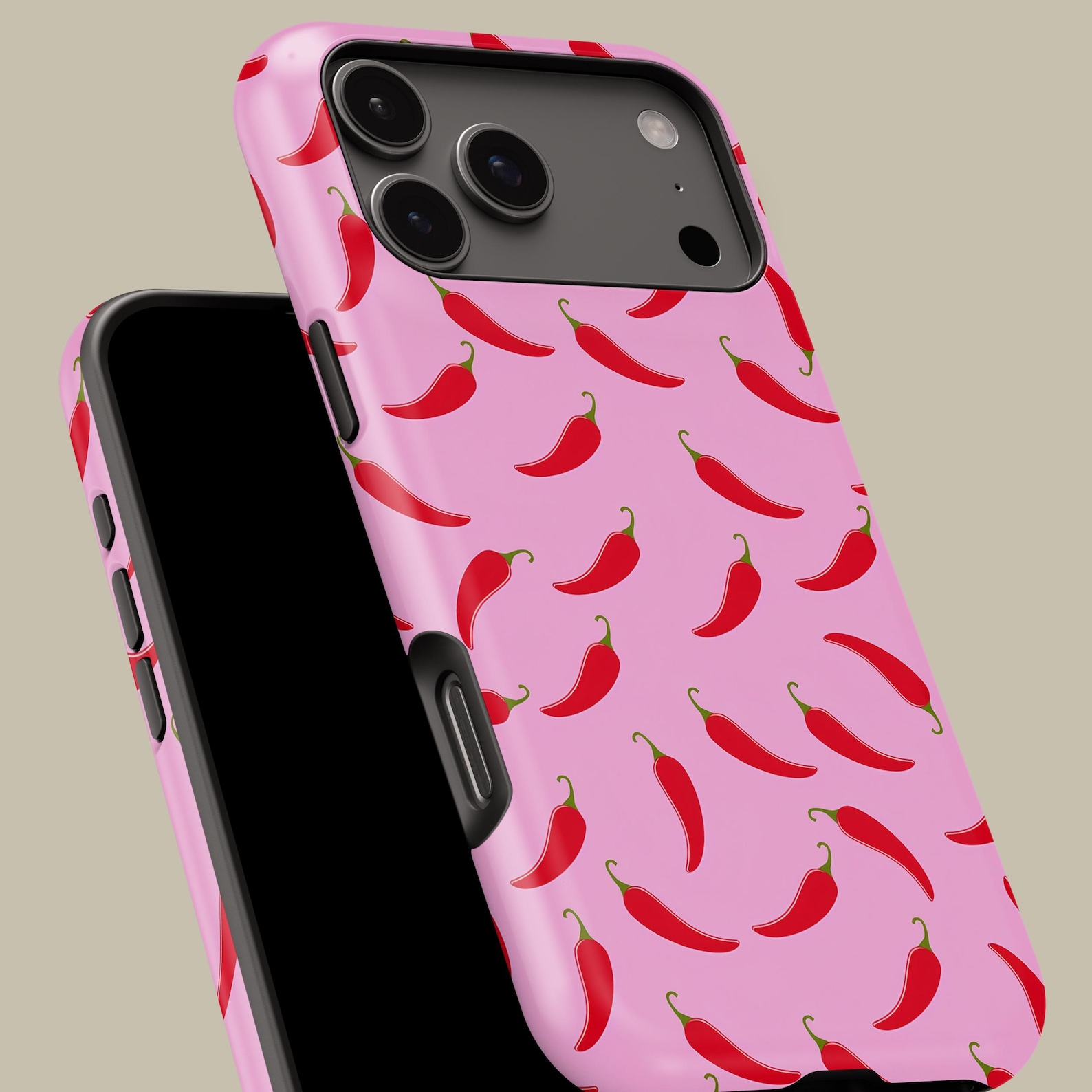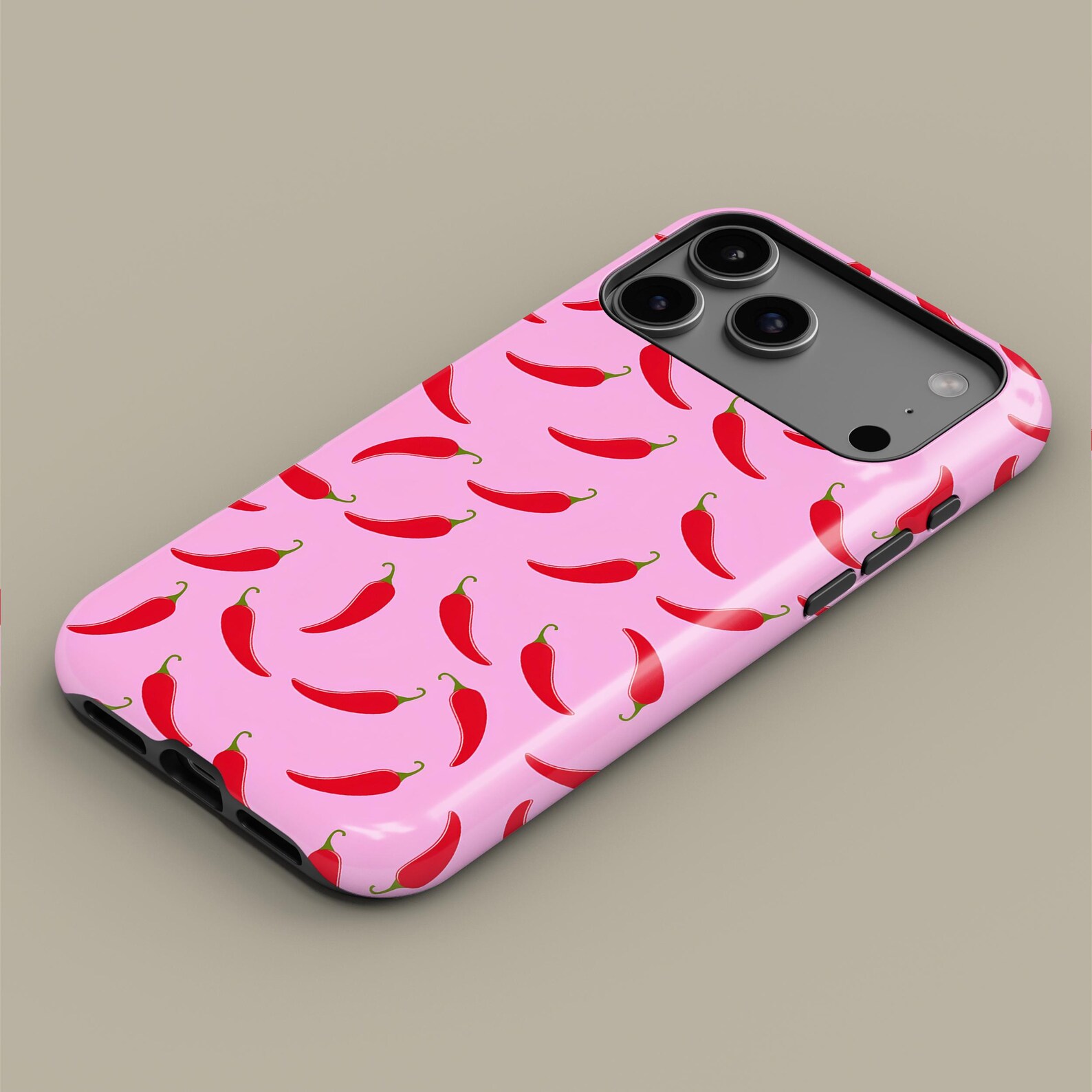 Add a spicy twist to your phone with this playful chili pepper design. The vibrant red peppers on a soft pink background create a fun and energetic vibe, perfect for those who love to stand out. Made from durable materials, this case offers excellent shockproof protection while maintaining a glossy finish. Its unique style is both modern and quirky, making it a great accessory for anyone looking to express their personality.