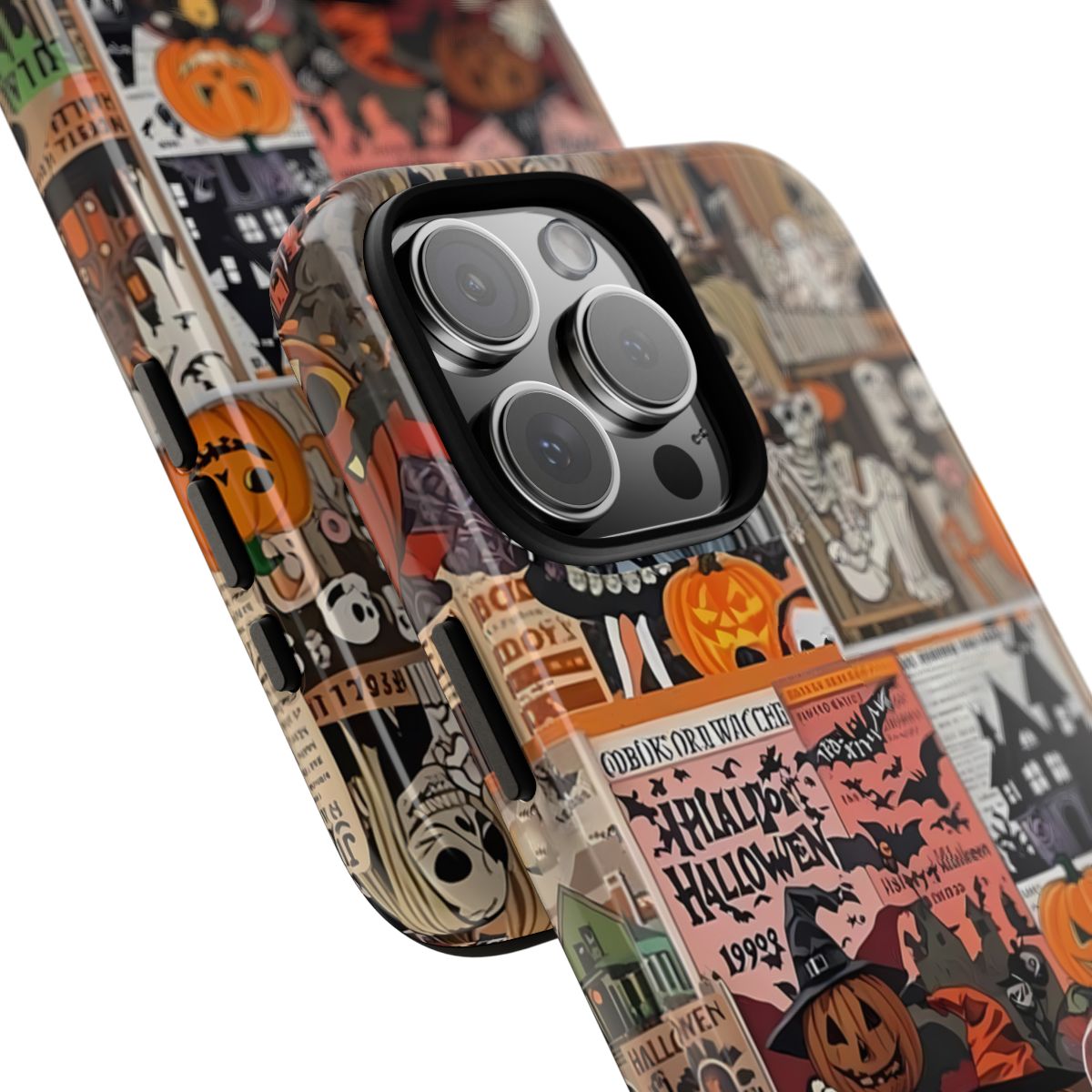 Embrace the spooky spirit of Halloween with our Vintage Collage Phone Case, showcasing a vibrant blend of classic Halloween imagery. Featuring playful pumpkins, charming skeletons, and creepy bats, this case is perfect for those who love to celebrate the season in style. Crafted from durable materials, it not only protects your phone from everyday wear and tear but also captures the nostalgic charm of Halloween festivities. Whether you’re attending a haunted party or simply want to add some seasonal flair to your look, this phone case is a must-have accessory for Halloween enthusiasts!
