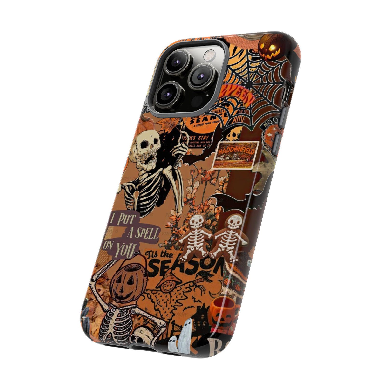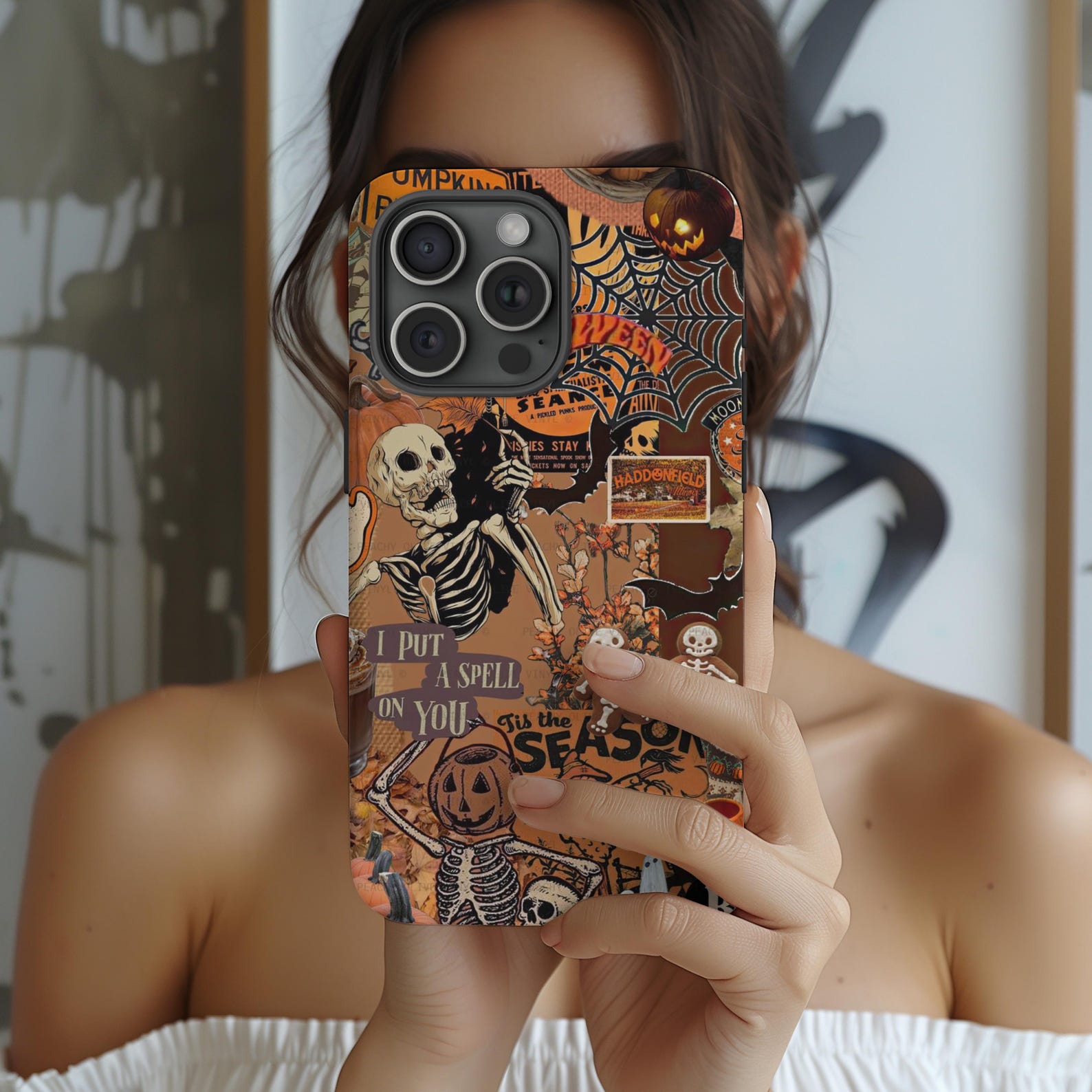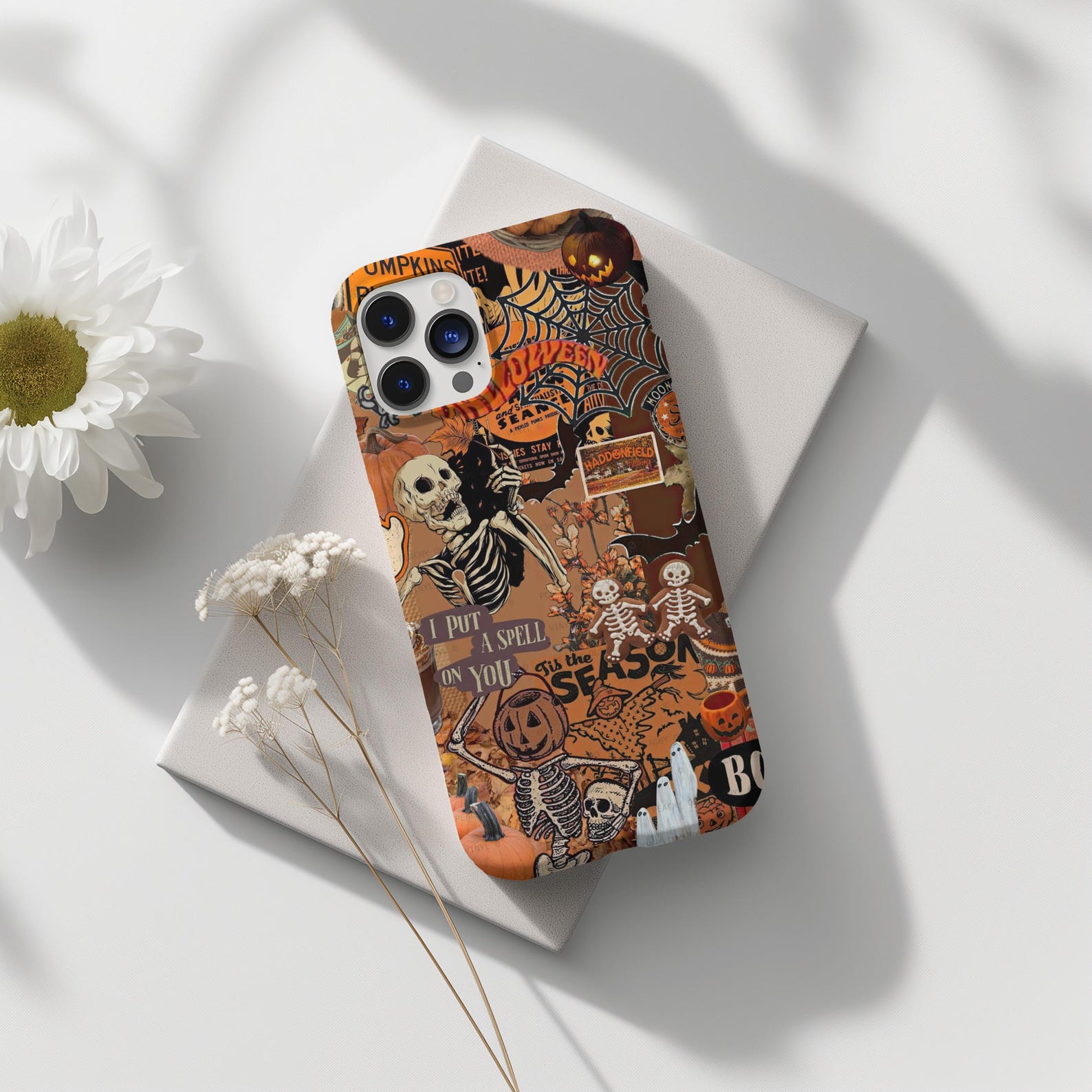 Embrace the playful spirit of Halloween with this vibrant phone case featuring a delightful collage of skeletons, pumpkins, and festive graphics. The warm earthy tones create a cozy and nostalgic vibe, perfect for the season. Crafted from durable material, this case is designed to protect your phone while offering a stylish matte finish. Whether you’re a Halloween enthusiast or just love unique designs, this case adds a touch of whimsy to your everyday carry.
