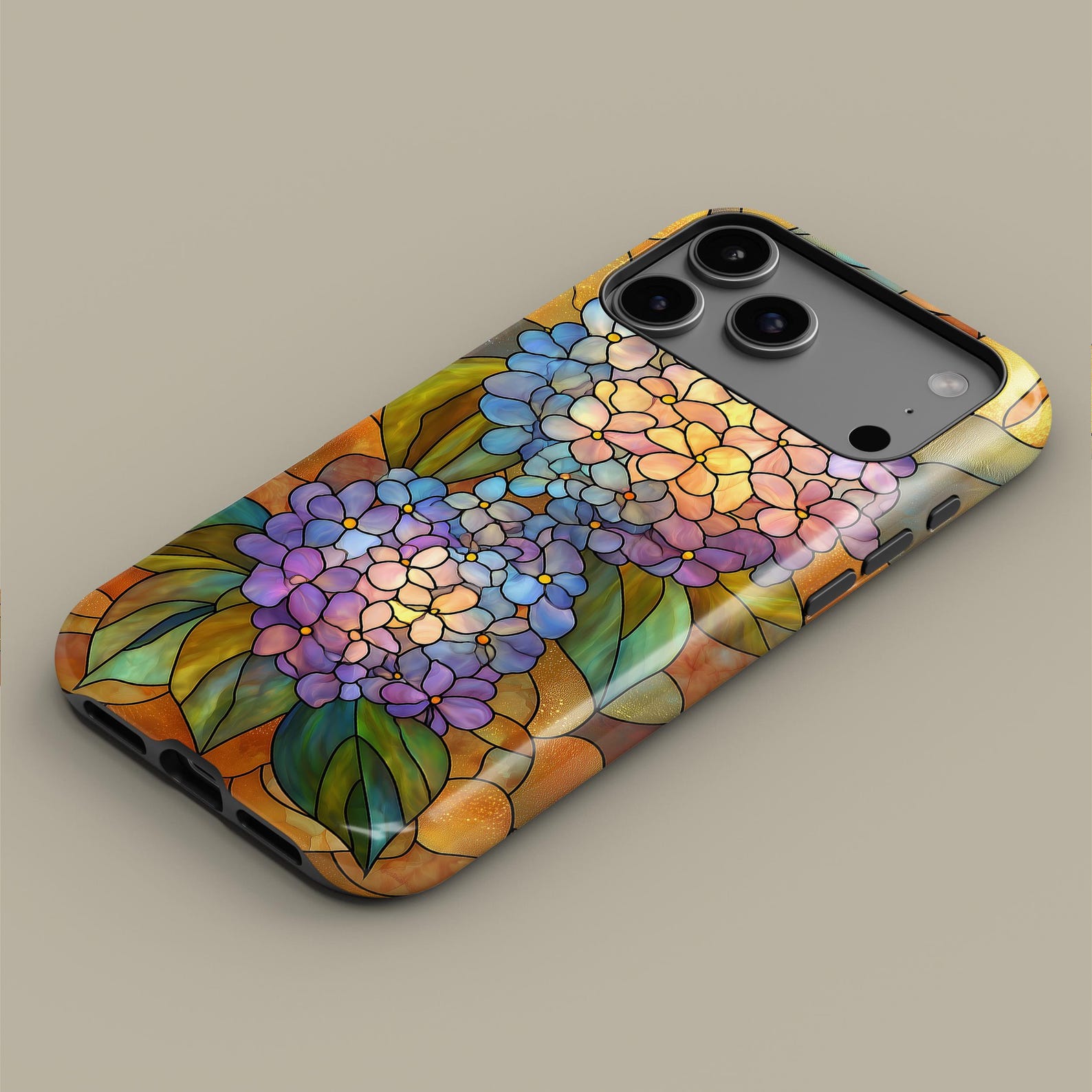 Embrace the beauty of nature with this stunning stained glass floral design. Featuring vibrant shades of blue, purple, and soft pastels, this case brings a touch of elegance to your daily accessories. The durable material ensures your phone is well-protected while the glossy finish adds a modern flair. Perfect for those who appreciate artistic and stylish accessories, this case combines functionality with artistic expression.