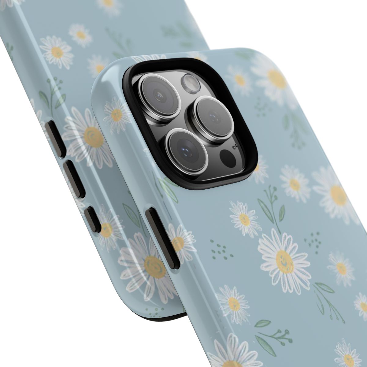 Transform your phone into a canvas of elegance with our Charming Daisy Floral Phone Case. Featuring a delightful array of hand-drawn daisies set against a serene blue background, this case blends style and functionality seamlessly. Made from durable materials, it provides reliable protection against drops and scratches while showcasing your love for nature and beauty. Ideal for individuals who appreciate floral designs, this phone case not only keeps your device safe but also serves as a fashionable statement piece. Elevate your tech accessory collection today!