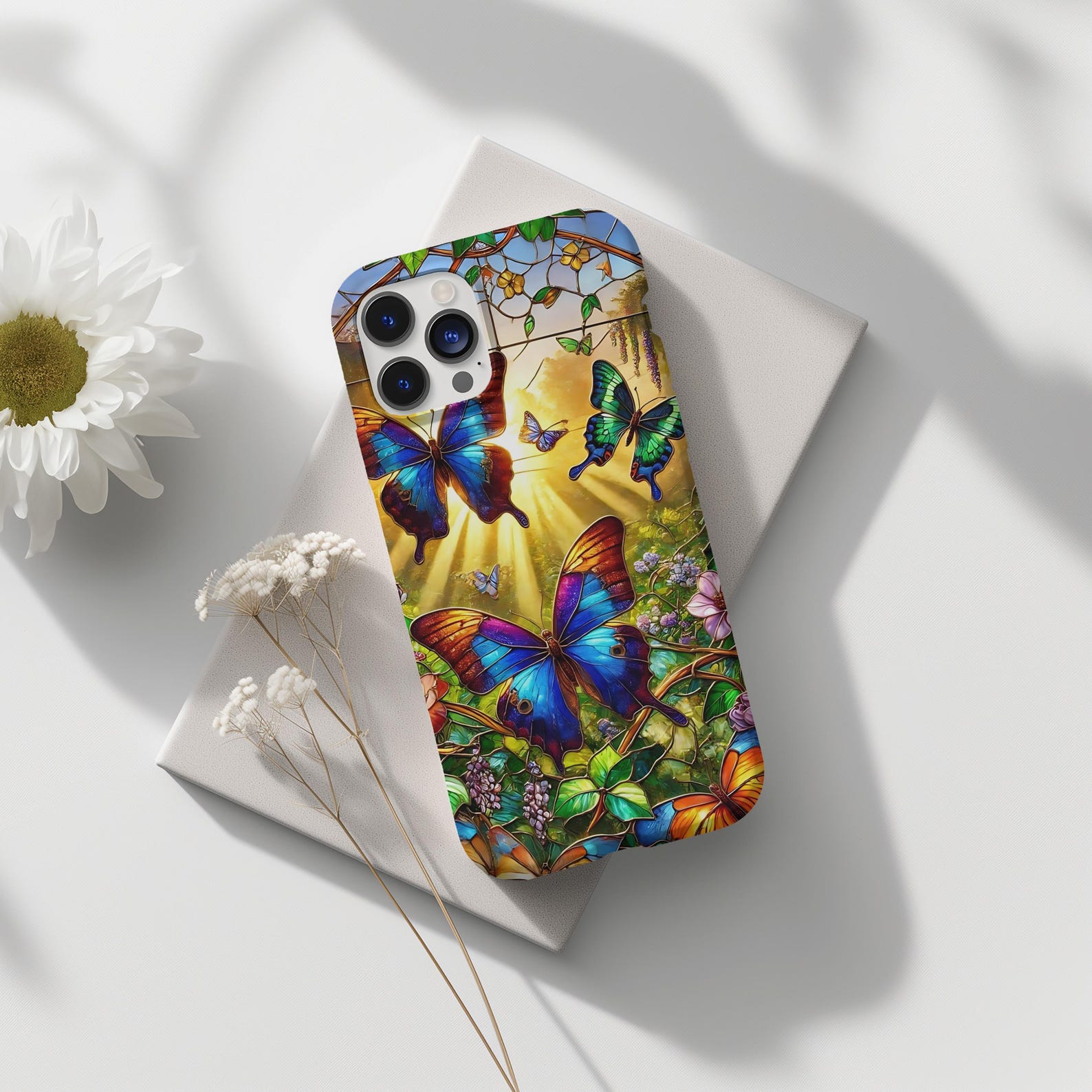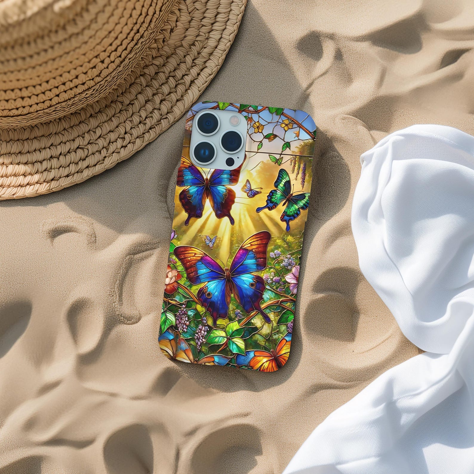 This stunning phone case features a vivid butterfly design set against a radiant garden backdrop. Bursting with a palette of bright blues, greens, and soft florals, it captures the essence of nature’s beauty. Crafted from durable materials, it offers protection without compromising on style, boasting a glossy finish that enhances the vibrant colors. Perfect for those who appreciate modern and playful aesthetics, this case brings a refreshing touch to your everyday essentials.