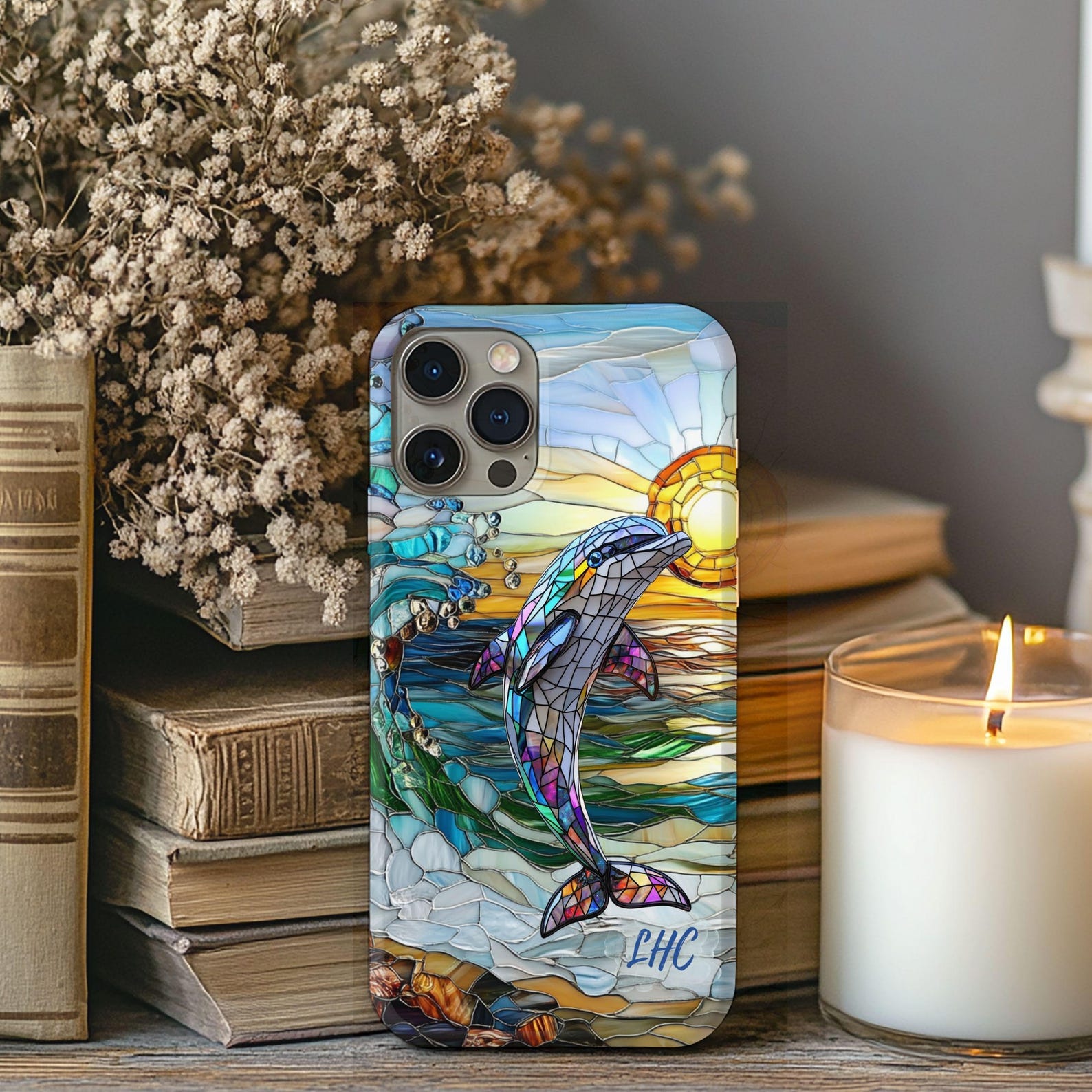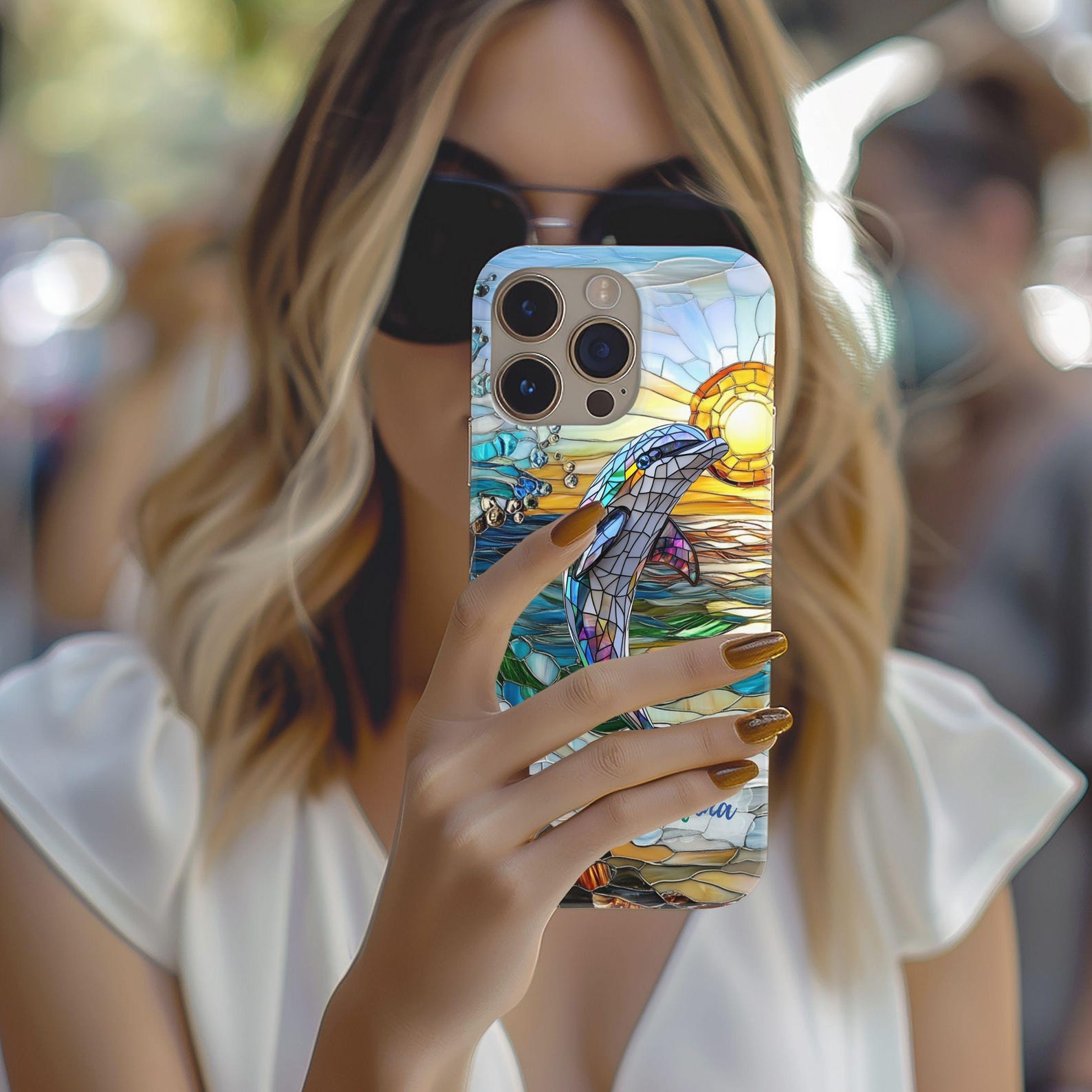 Dive into the oceanic beauty with this stunning dolphin mosaic design. Featuring a vibrant palette of blues, yellows, and purples, this case evokes a sense of playful elegance. Made from durable materials, it ensures excellent protection while adding a touch of artistic flair. The glossy finish adds a modern twist, making it an eye-catching accessory for any ocean lover.