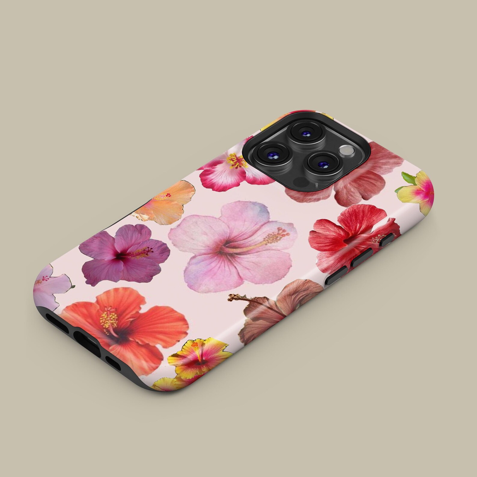 Embrace the beauty of nature with this vibrant floral phone case featuring a stunning array of hibiscus flowers. The design showcases a blend of soft pinks, deep reds, and cheerful yellows, creating a lively yet elegant aesthetic. Made from durable material, this case is both shockproof and stylish, ensuring your phone stays protected while looking chic. Its glossy finish adds a touch of sophistication, making it perfect for anyone who loves to express their personal style. Elevate your phone’s look with this playful and artistic accessory.