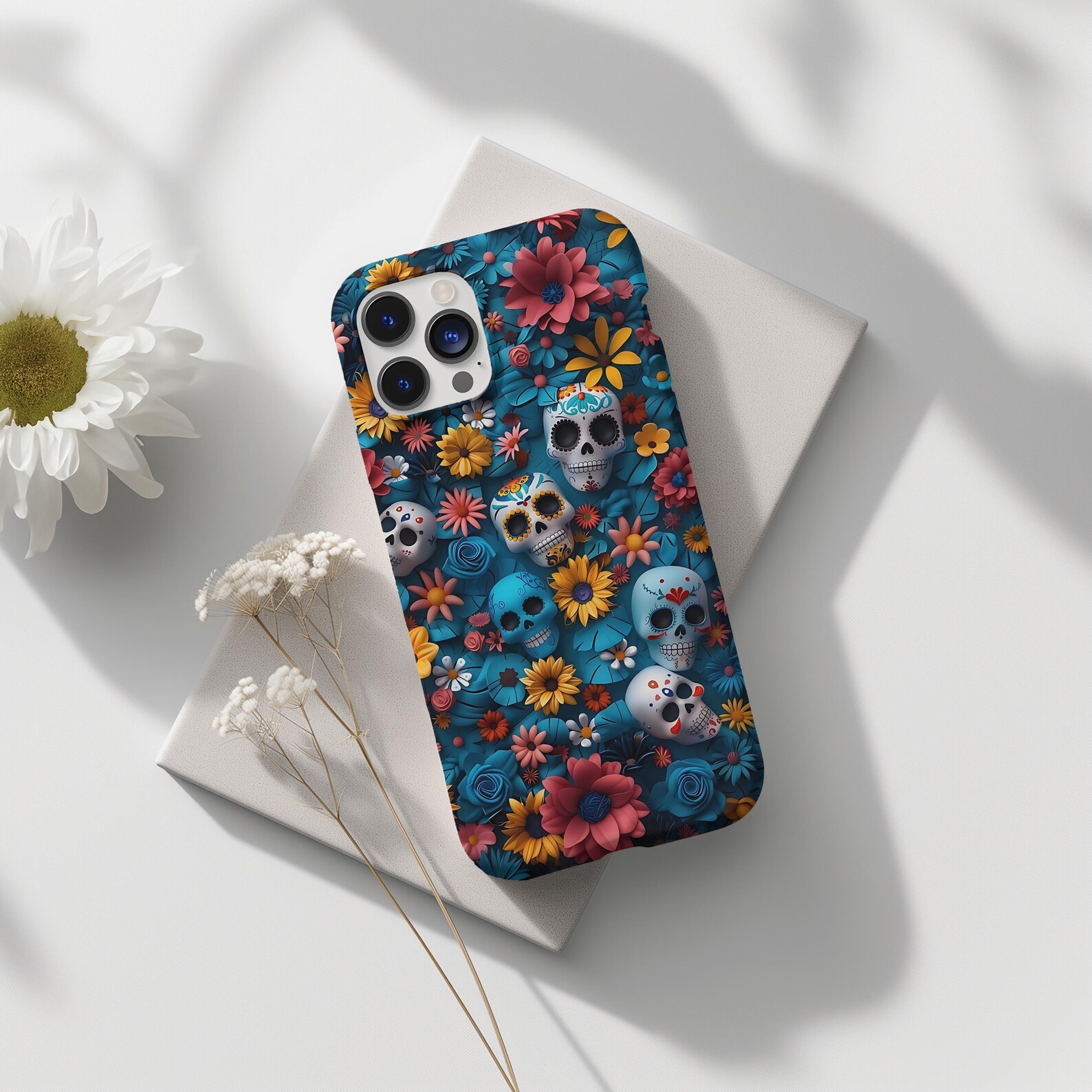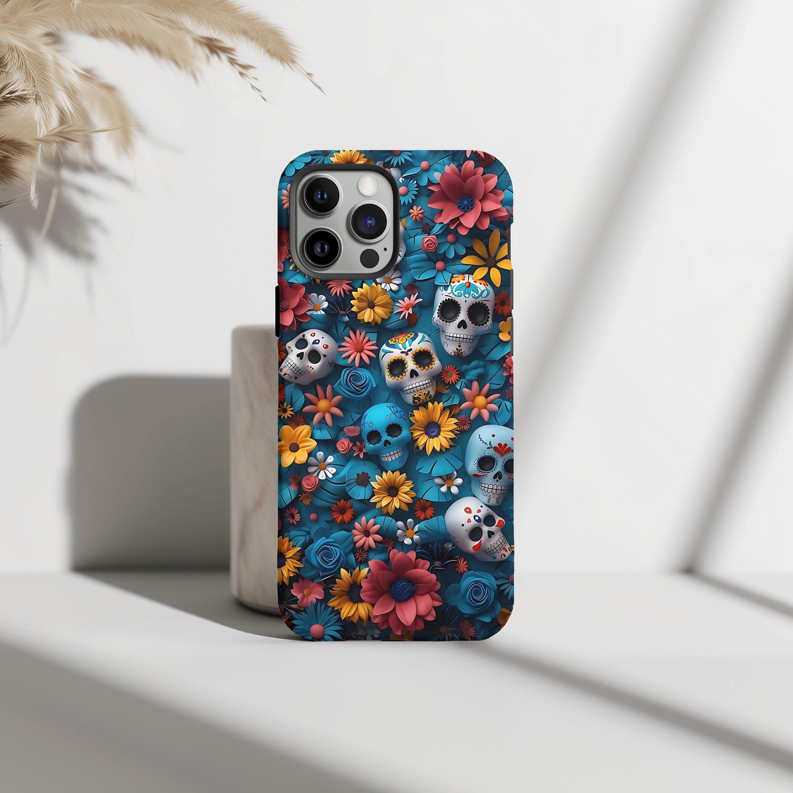 Embrace a unique blend of culture and style with this vibrant floral sugar skull design. Featuring a rich palette of blues, yellows, and pinks, the intricate floral patterns seamlessly intertwine with playful skull motifs, creating an eye-catching look. Made from durable materials, this case offers excellent shockproof protection while maintaining a sleek, glossy finish. Ideal for those who appreciate bold designs, this phone case adds a modern and artistic flair to your everyday essentials.