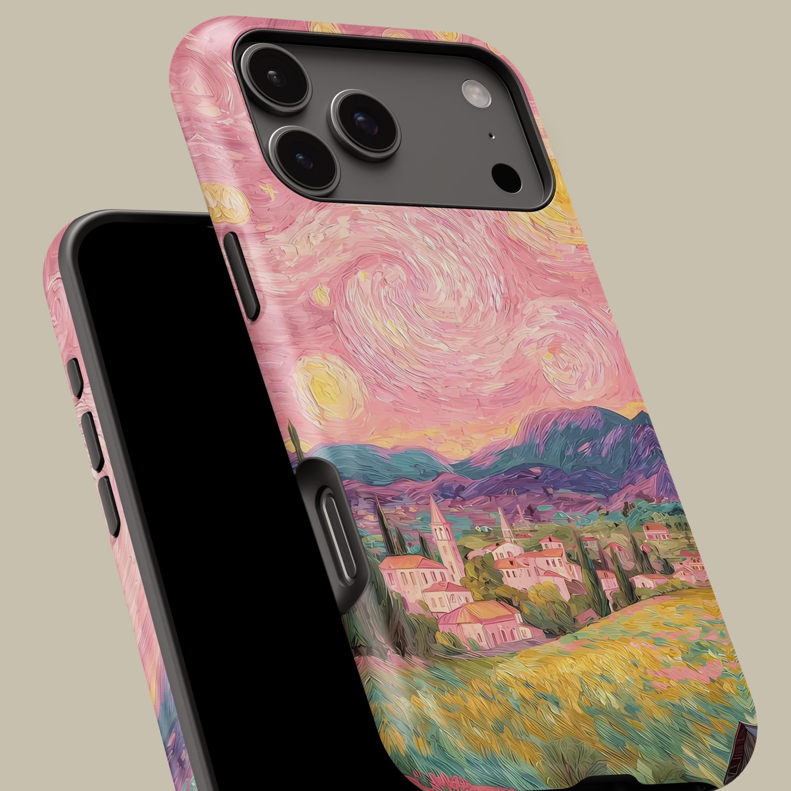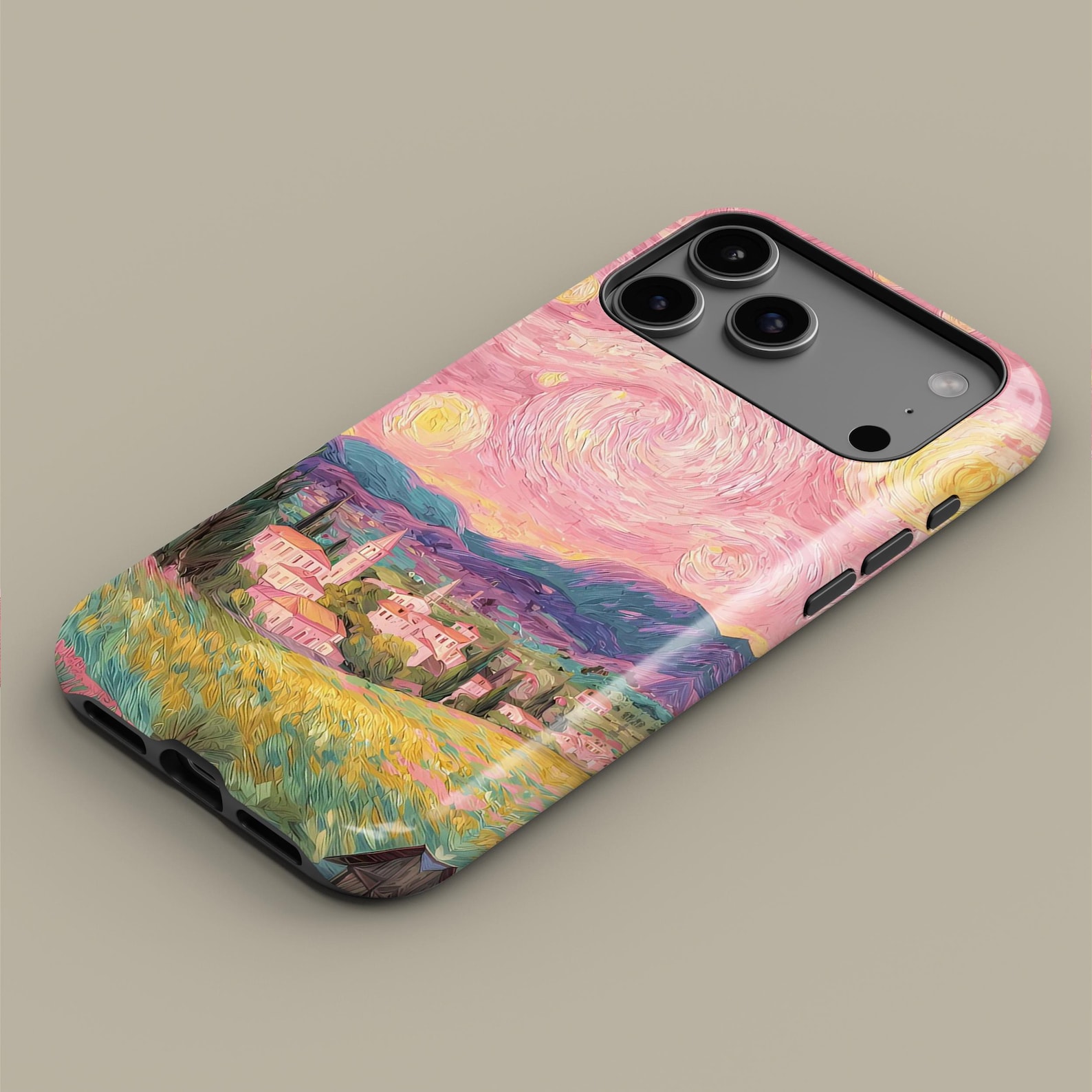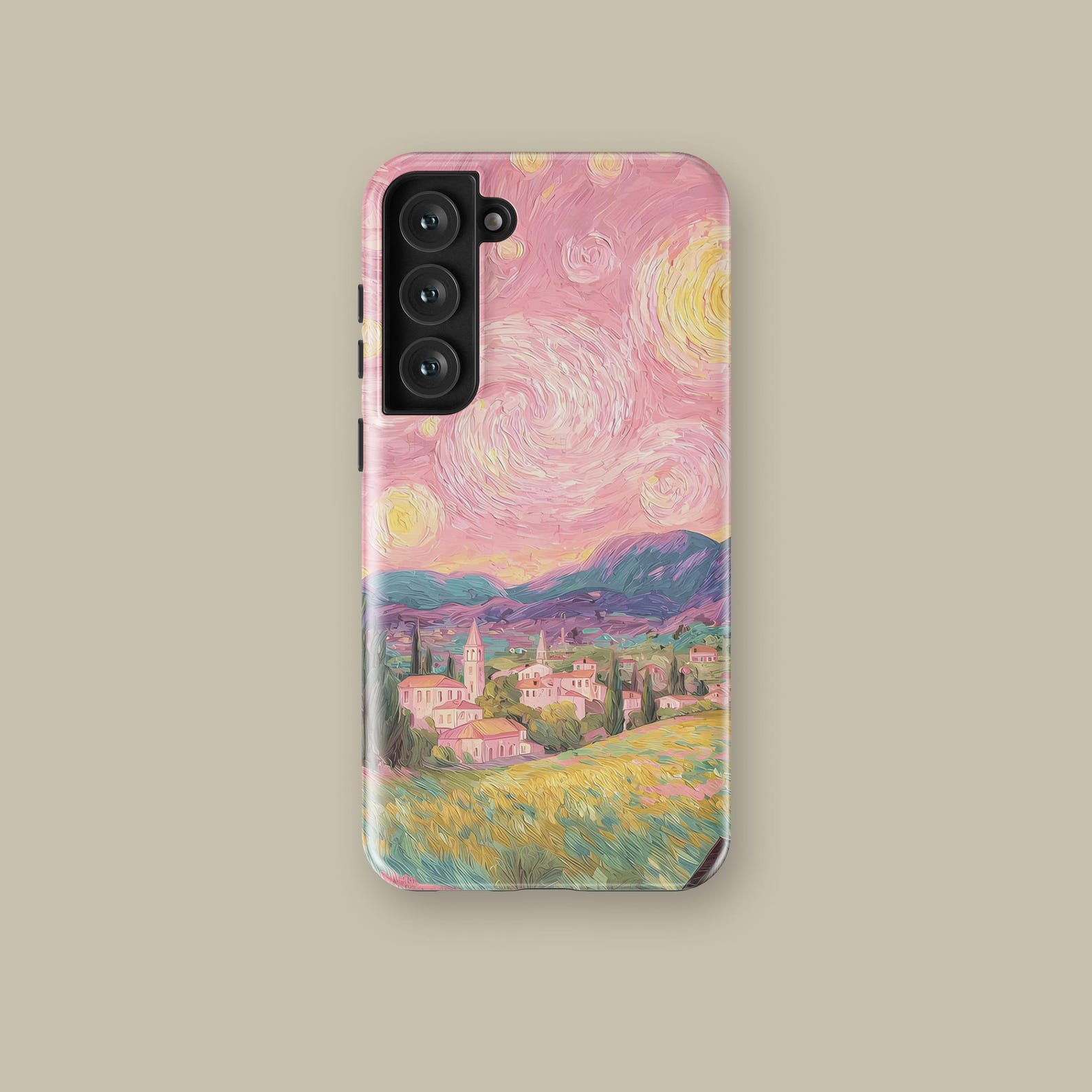 This stunning phone case features a vibrant impressionist landscape that brings a touch of artistry to your everyday accessories. With its enchanting blend of pinks, greens, and yellows, it captures a dreamlike scenery that’s both whimsical and captivating. Made from durable materials, this case offers robust protection while maintaining a sleek, lightweight feel. The glossy finish enhances the colors, giving it an eye-catching presence that’s perfect for art lovers and free spirits alike.