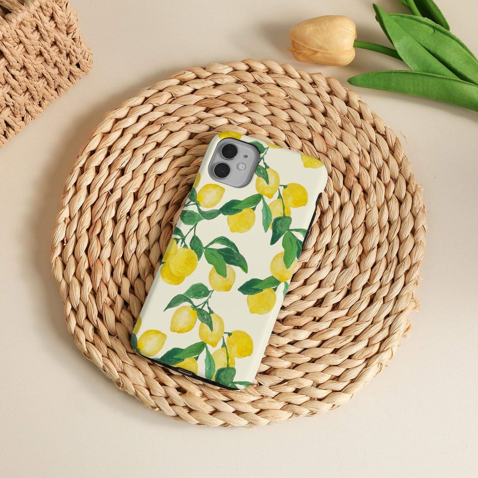 Embrace a fresh and cheerful vibe with this delightful phone case adorned with vibrant lemons and lush green leaves. The hand-painted design features a soft, creamy background that enhances the bright, sunny colors, making it a perfect accessory for those who love a playful touch. Crafted from durable materials, this case ensures excellent protection while maintaining a lightweight feel. Its smooth matte finish adds a touch of modern elegance, making it an ideal choice for stylish individuals.