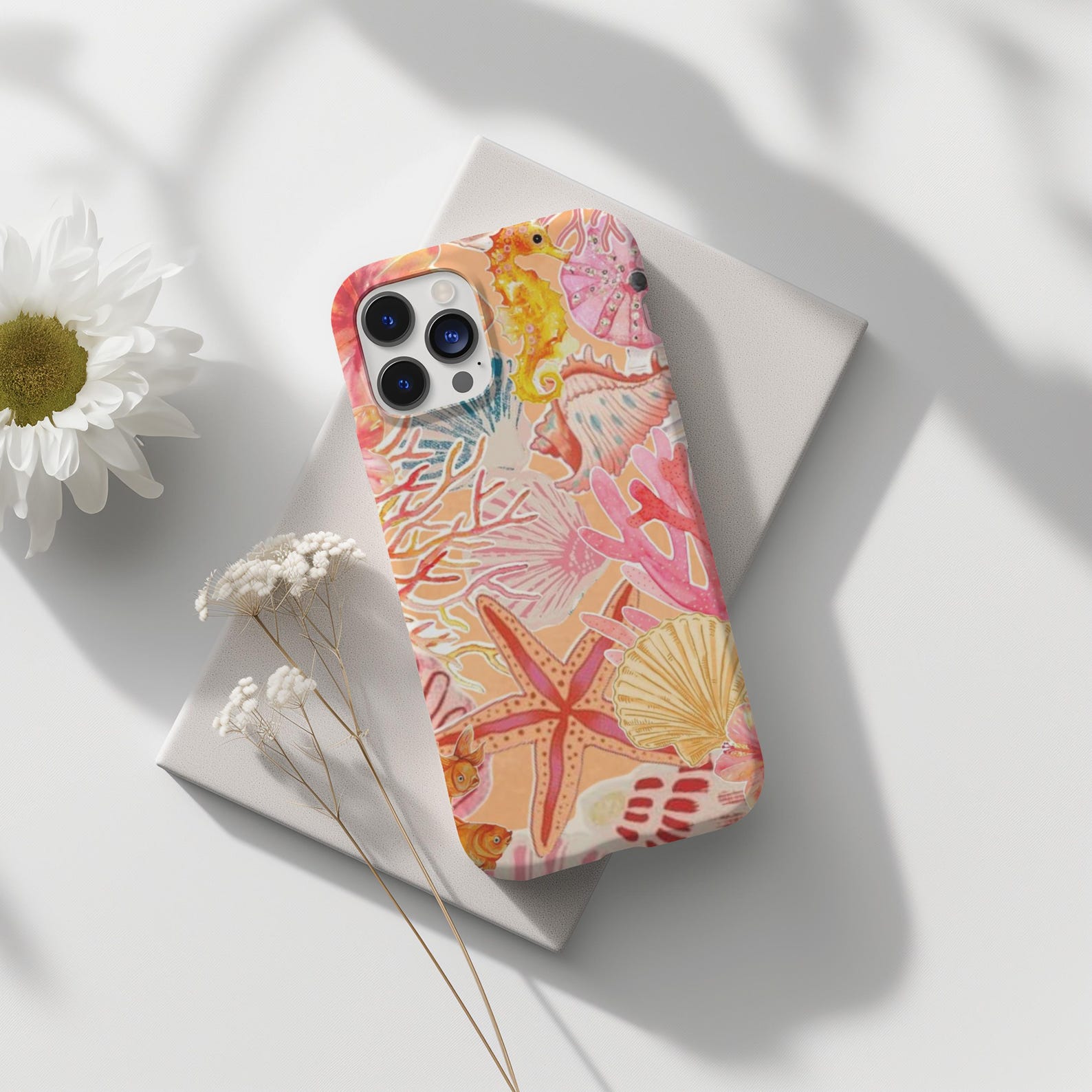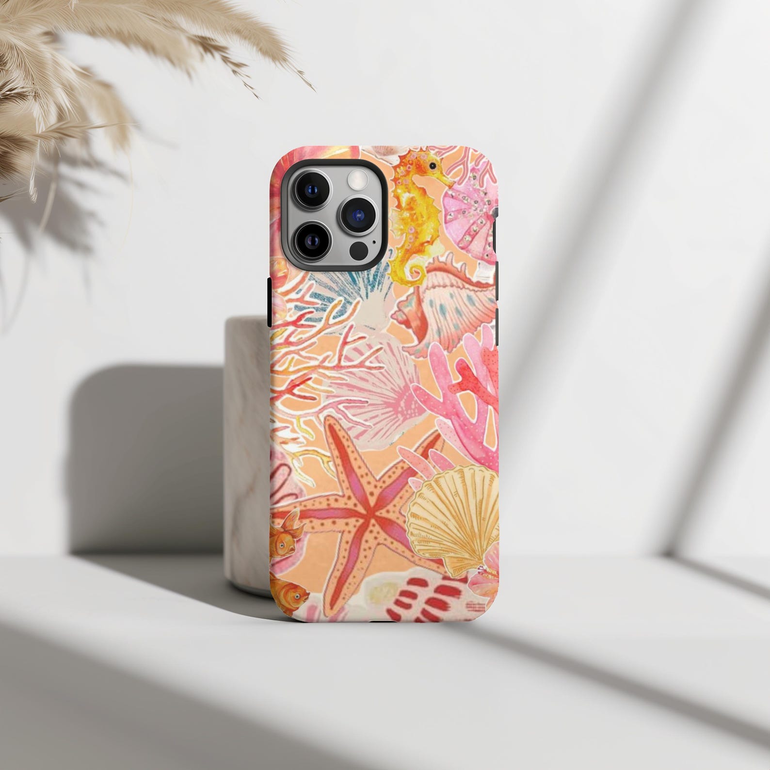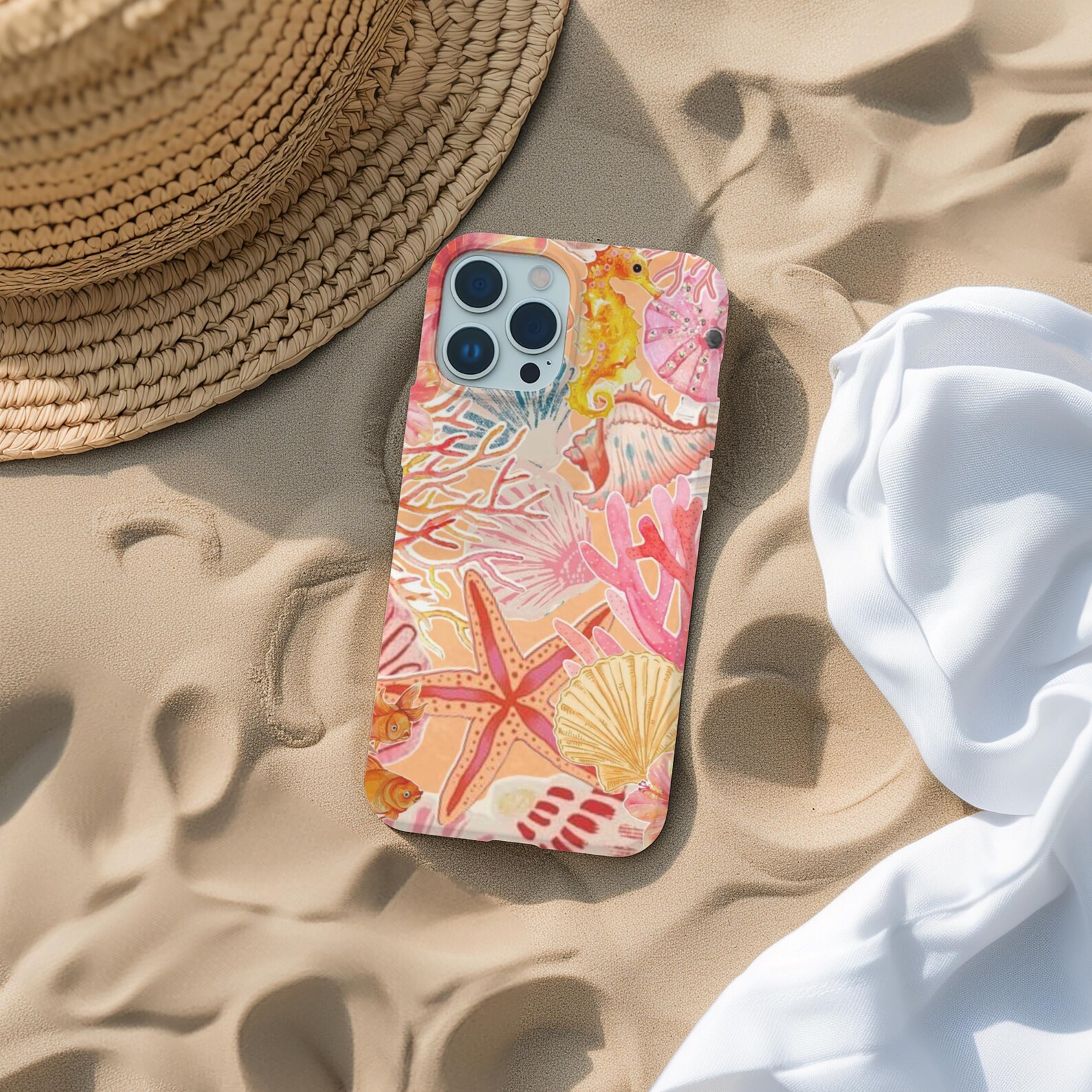 Dive into the vibrant world of marine life with this beautifully designed phone case. Featuring a collage of colorful sea creatures like seahorses, starfish, and coral, this design evokes a playful underwater vibe. Crafted from durable materials, it provides excellent shock protection while maintaining a glossy finish that enhances the colors. Ideal for those who love all things aquatic and want to showcase their unique style.